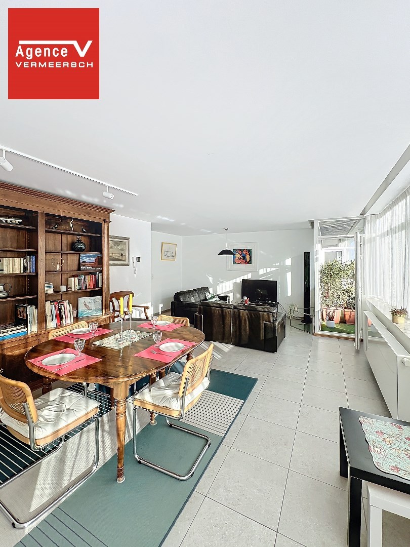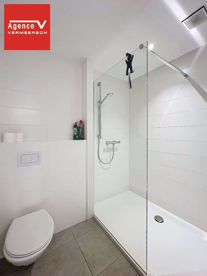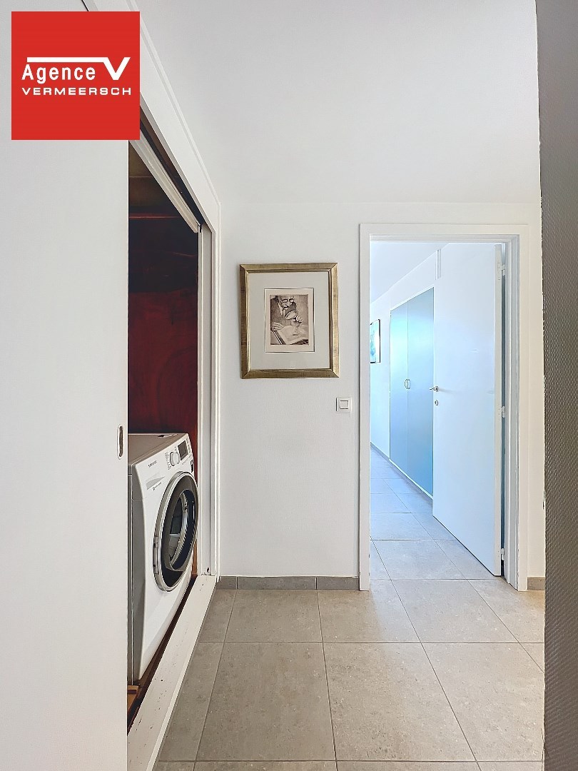 De indeling is als volgt: inkomhall met gastentoilet - ruime woonkamer met kamerbrede ramen - terras - zithoek - eetkamer met open ingerichte keuken voorzien van alle toestellen - ruime badkamer met inloopdouche en dubbele lavabo, toilet - slaapkamer - (extra ruime bergingskamer)