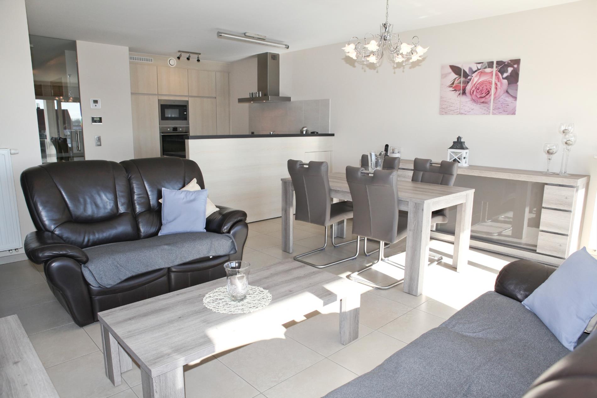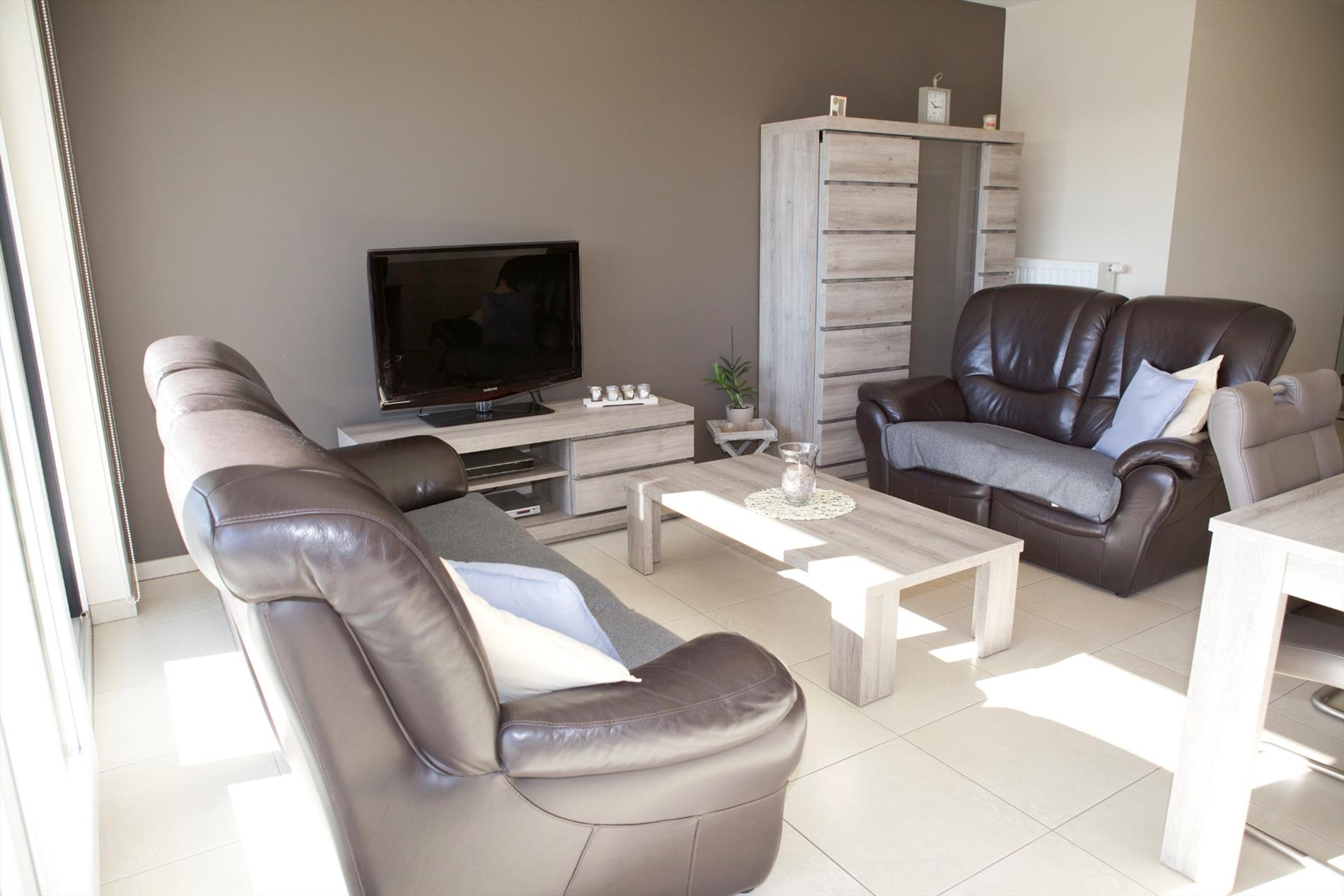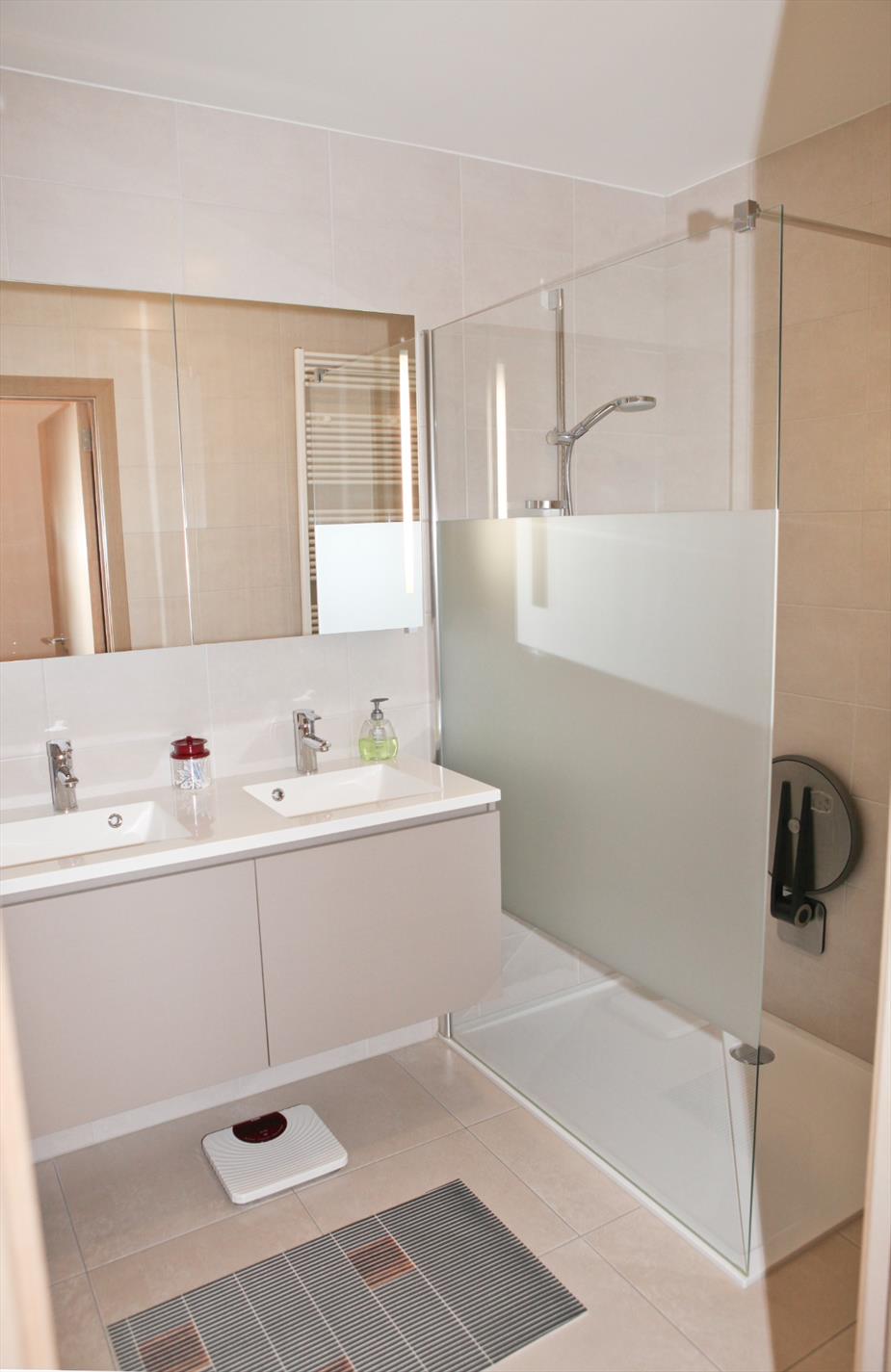 Dit luxueus & nagelnieuw appartement ligt op de 1ste verdieping en is zo goed als ‘in-stap-klaar’. Het heeft een oppervlakte van 86 m² (+ voorterras van 9 m² en achterterras van 28 m²) en een bruikbare vloeroppervlakte van 65,19 m². Berekende energiescore: 126.675 (kWh/m²jaar). Het beschikt over een ruime, luchtige én zonnige living (met terrasschuiframen) + open keuken (prachtig & comfortabel ingericht). Het overdekt terras aan de straatkant is toegankelijk via de living en is voorzien van een berging. De afwerking mag zonder schroom bestempeld worden als luxueus en chique, met onder meer prachtige ceramieke tegelvloeren (in alle vertrekken), mooie faience in de badkamer en toilet. Sierlijke binnendeuren. Voorzien van stadswater, elektriciteit (dag- en nachttarief), teledistributie, internet, videofoon en individuele centrale verwarming (d.m.v. wand-condensatie-generator op aardgas).