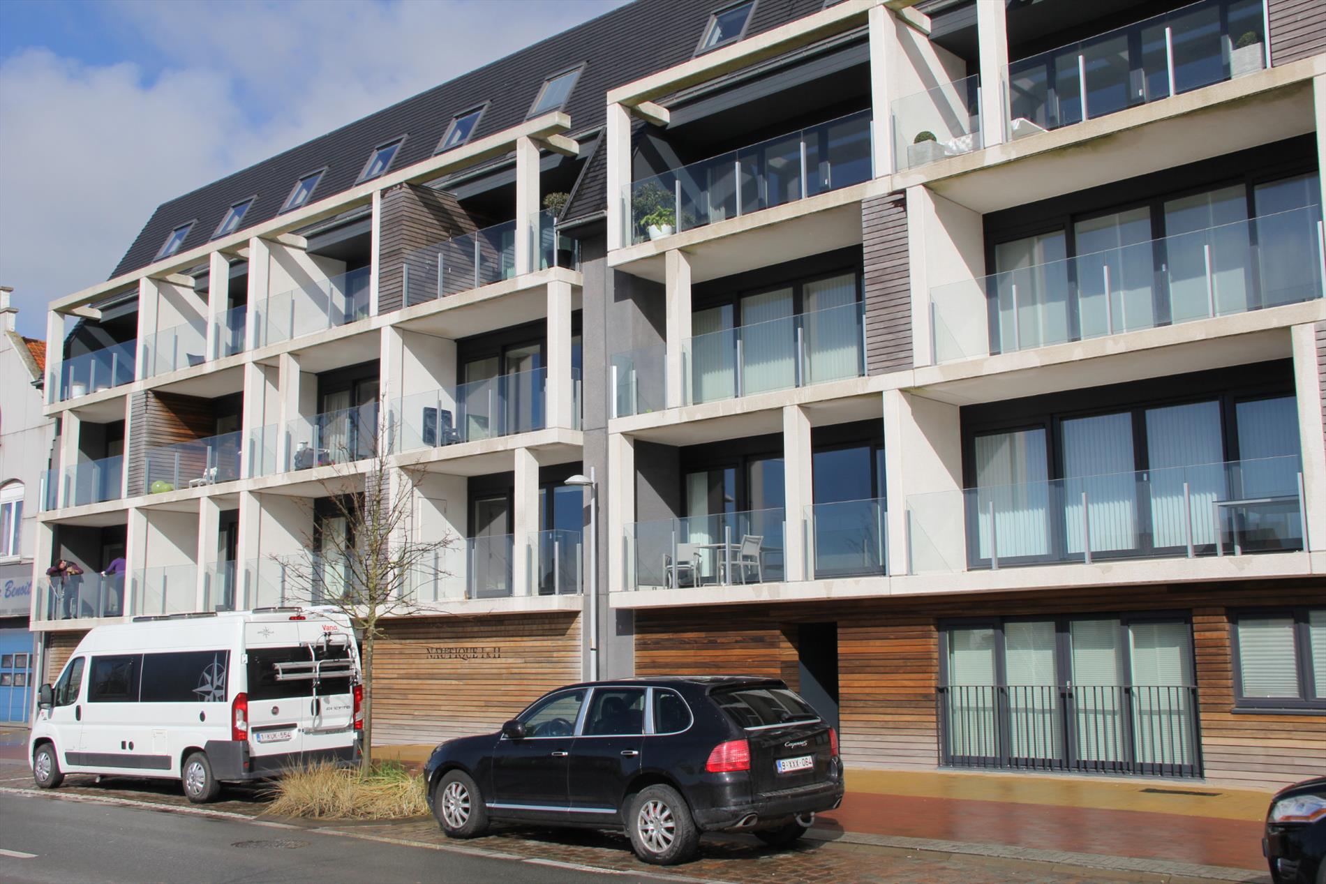 De residentie ‘NAUTIQUE’ is een prachtig en zonnig georiënteerd appartementsgebouw in hedendaagse stijl, uniek gelegen langs het Kanaal ‘Oostende-Brugge’, met een prachtig open zicht op het water en voorzien van grote zonneterrassen (zowel voor- als achteraan). Het gebouw werd stevig en op traditionele wijze gebouwd in 2014, en werd luxueus afgewerkt (zowel de gemeenschappelijke delen als de privatieven). Verzorgde voorgevel, tot aan de verdieping bekleedt met cederhout en tot aan het dak in witte gladde beton. Achtergevel in bruin genuanceerde gevelsteen. Deur- en vensterdorpels in blauwsteen. Verzorgd buitenschrijnwerk in kunststof (witte PVC), voorzien van super-isolerende, dubbele beglazing. Verzorgd hellend harddak, belegd met zwarte platte tegelpannen (in gebakken aarde), voorzien van onderdak (in menuiserithplaat) en perfect geïsoleerd. Zinken hangdakgoten en dito afleidingen. Ieder appartement beschikt over een deftig voorterras en een groot achterterras (over gans de breedte van het appartement). De residentie Nautique is onderverdeeld in 2 aparte secties, met elk : * gelijkvloers: chique inkom & tussenhal (+ doorgang naar garagecomplex), luxueuze lift, trap & traphal ; * 1ste & 2de verdieping: met elk 2 appartementen ; * 3de & dakverdieping: met elk 2 duplex-appartementen. Achteraan op het gelijkvloers zijn er 12 gesloten garages met een gemeenschappelijke geautomatiseerde sectionale inrijpoort en (brede) oprit. Naast de inrijpoort is er een gemeenschappelijke fietsenbergplaats, een bergplaats (voor huisafval) en 3 tellerplaatsen (aardgas, elektriciteit en aardgas). De algemene onkosten van het gebouw bedragen € 84 per maand.