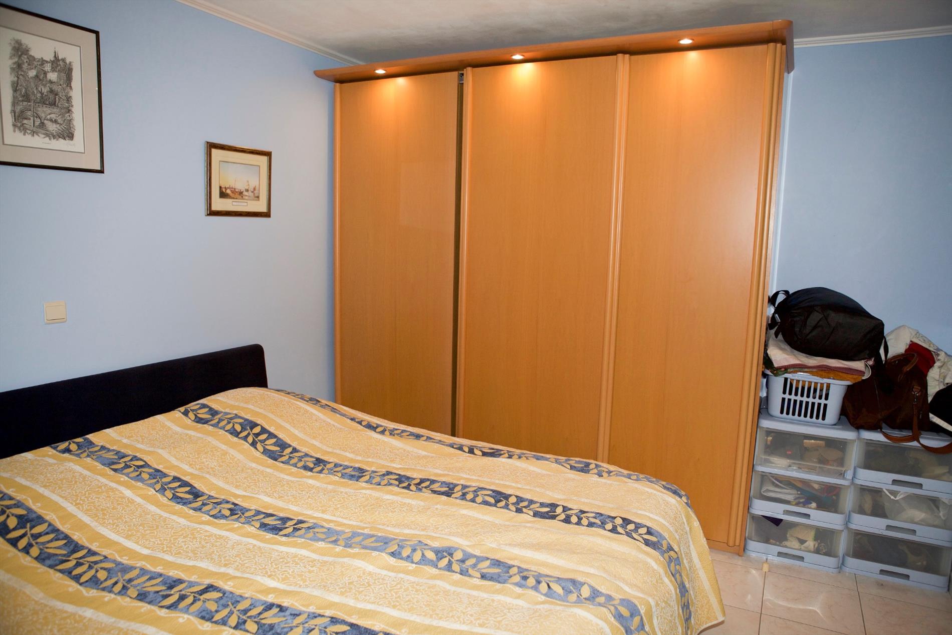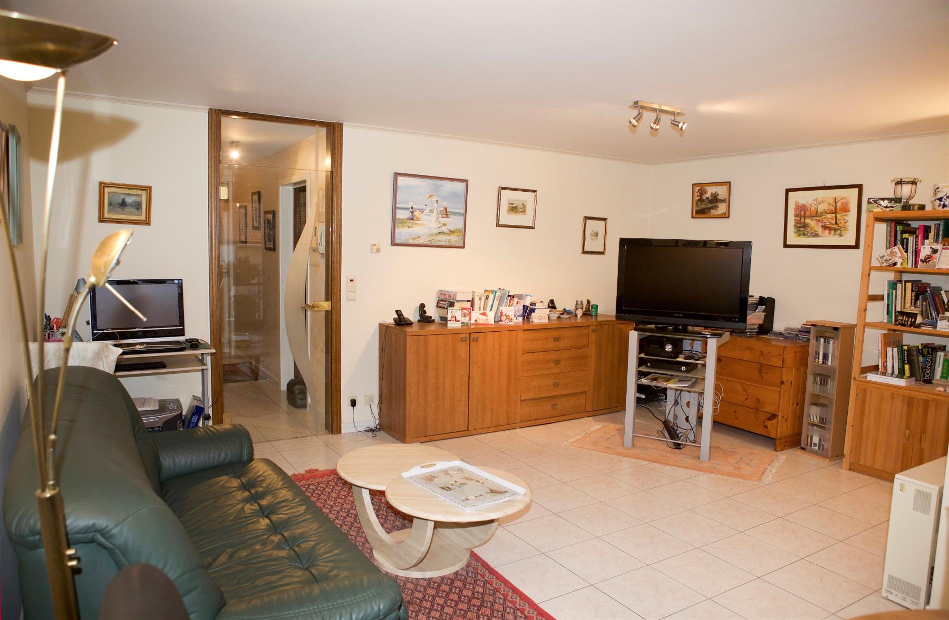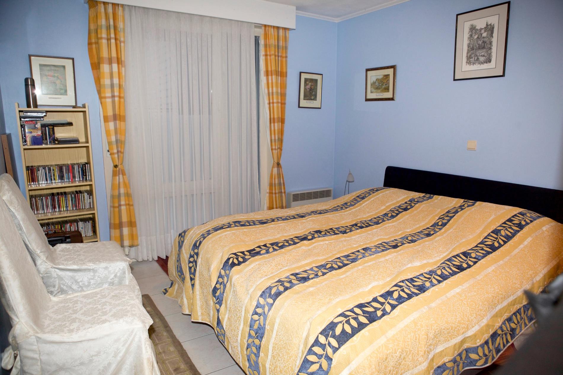Inkomhal + videofoon (nieuwe voordeur PVC + glaswerk),- toilet met wc + elektrische boiler,- berging + zekeringskast,- prachtige badkamer (1,75 x 1,42 ) met douche en toiletmeubel + ingebouwde lavabo (granieten tablet),- living (27m²) + glazen deur,- zonneterras (3,10 x 1,65),- mooie keuken (2,90 x 2,13) met L-vormige keukenblok (onder- en bovenkasten) + ingebouwde dubbele inox afwasbak, ceramische kookplaat, microgolfoven, dampkap, frigo, vaatwasautomaat, wasmachine, diepvriezer, en droogkast (laminaat-plafond),- en slaapkamer (3,86 x 3,11 * nieuw PVC-raam) ;