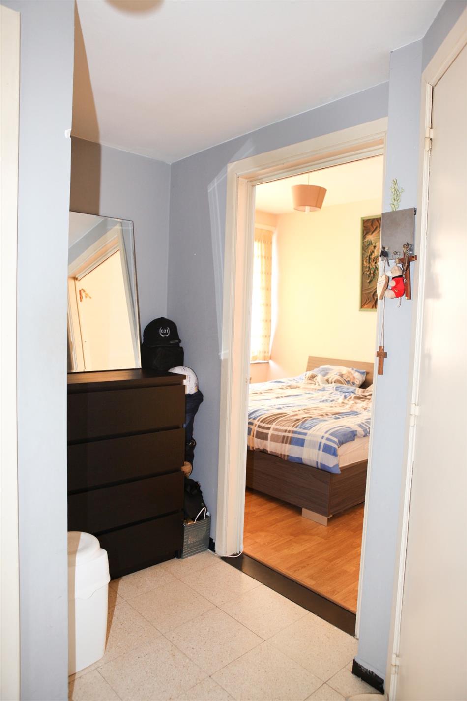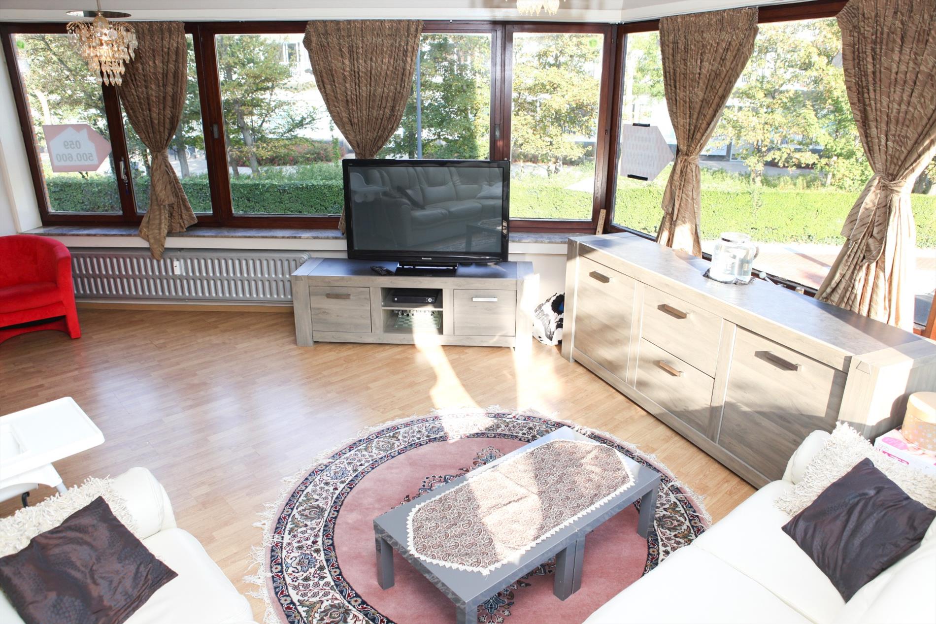 Het betreft een aangenaam en luchtig hoek appartement op de eerste verdieping: