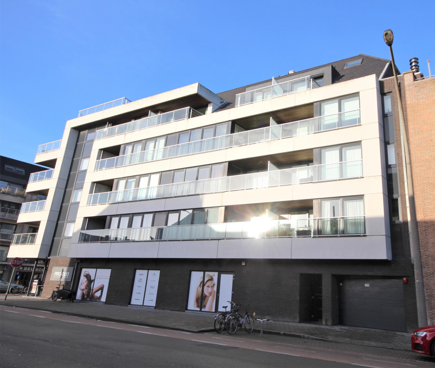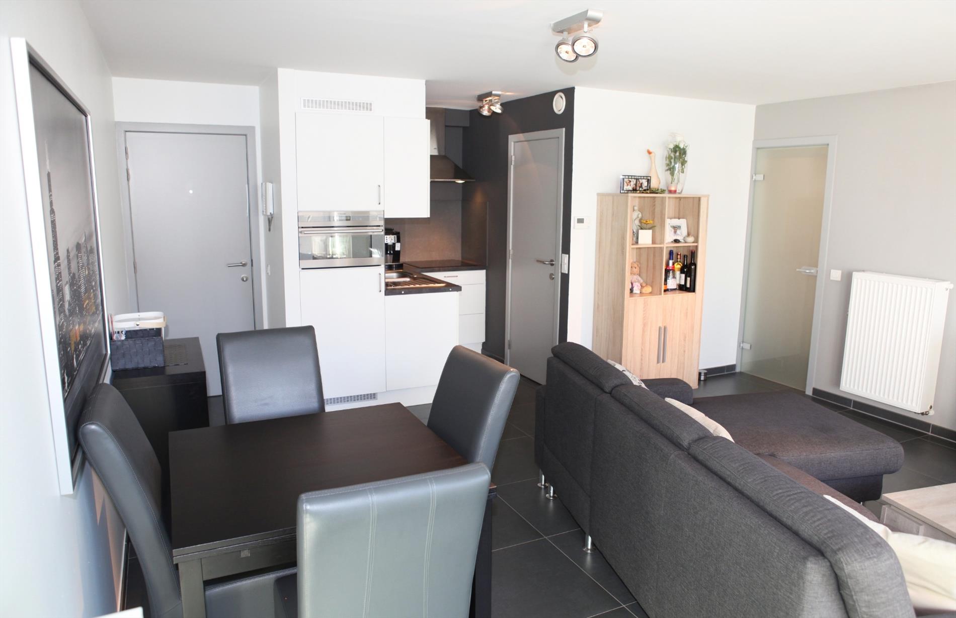 De residentie ‘Beluga’ is een keurig appartementsgebouw, stevig en op traditionele wijze opgetrokken. Het omvat een kelderverdieping: met oprit, fietsenberging, vuilniskelder, tellerkelder, 13 autostandplaatsen en 22 private provisiekelders, de gelijkvloers met inkom- & tussenhal, lift, traphal en 1 winkel, 3 verdiepingen met telkens 4 appartementen, duplexverdieping met 3 duplex appartementen en 2 appartementen. Verzorgde voorgevel met thermische isolatie (houtwolcementplaten). Alle scheidingsmuren zijn ontdubbeld en zijn uitgevuld met polystyreenplaten. Alle vloeren zijn voorzien van een geluidsabsorberende en thermische isolerende laag schuimbeton + akoestische vilt. Deur- en vensterdorpels in harde blauwsteen. Deels zadeldak met dakpannen + 15 cm rockwol, deels plat dak + isolatiepanelen in polyurethaan. De bewoonbare oppervlakte van het appartement bedraagt 67,78 m². Buitenschrijnwerk in PVC voorzien van hoog-rendementsbeglazing. Keramische tegelvloeren in alle woonruimtes. Het appartement is voorzien van videofoon, stadswater, elektriciteit, internet, distributie, digitale tv, telefoon, aardgas, individuele verwarming : condensatieketel ‘Vaillant‘ op aardgas en ventilatiesysteem type C. Dit perfect geïsoleerde appartement is zeer energiezuinig en zon-gericht. De algemene maandelijkse kosten bedragen: 75 €/maand.