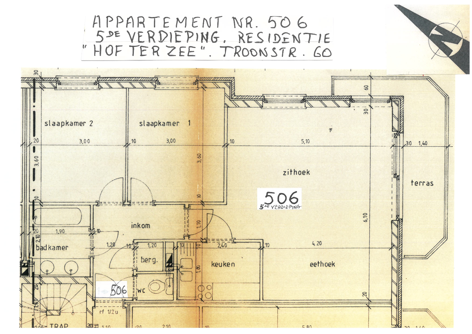 Het betreft het hoek-appartement nr. 506, op de 5de verdieping (oost-zuid gericht) en verder begrijpende: