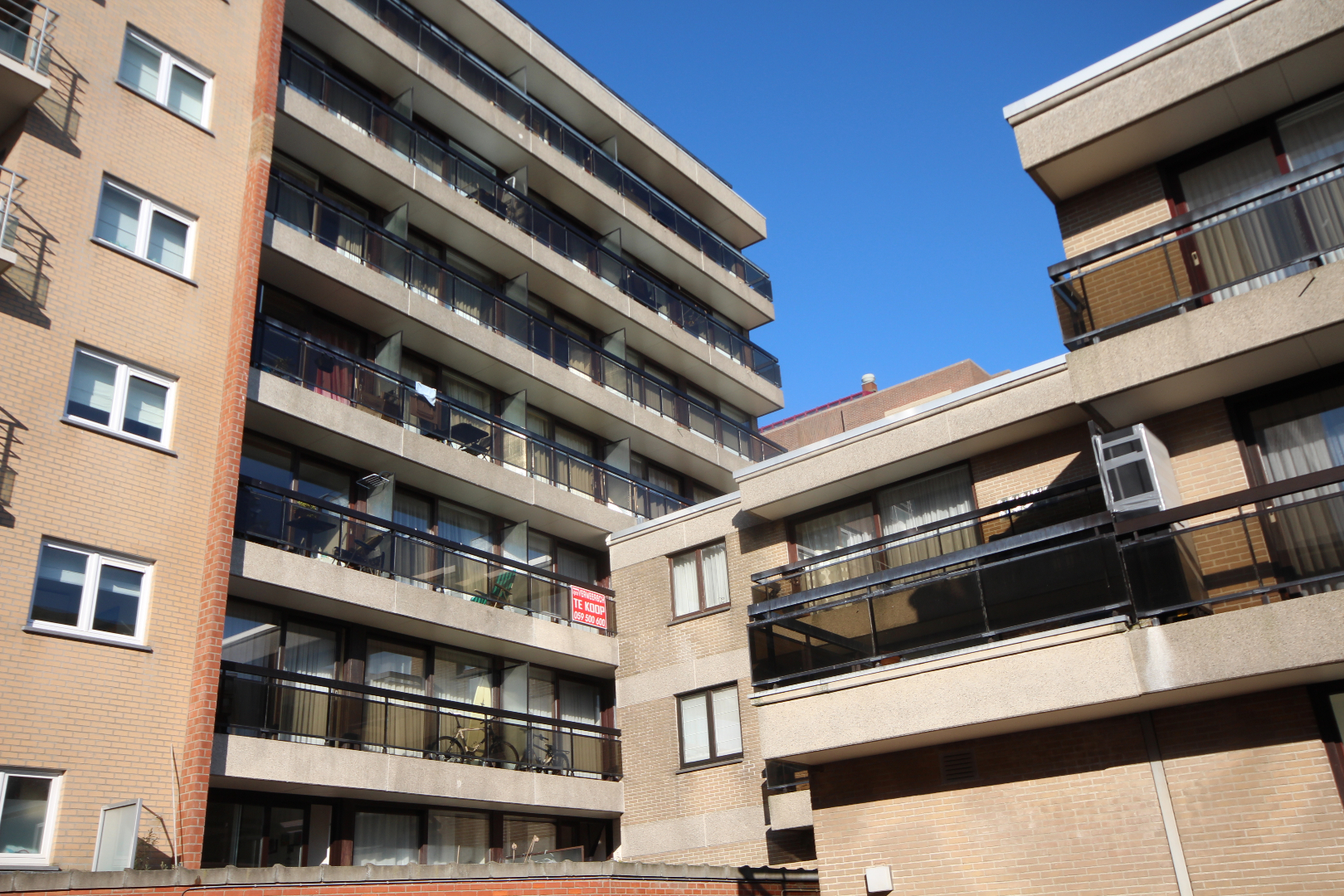 De residentie ‘Golden Sand’ is een keurig flatgebouw, stevig en op traditionele wijze opgetrokken in 1980, op een perceel grond van 1.065 m², palende a/d Zeedijk met een breedte van 21 m. en 45 m. a/d Marie-Joséstraat. Fietsenbergplaats + aparte ruimte voor vuilnis. Buitenschrijnwerk in dark red Meranti hout + dubbele beglazing. De gevels & terrassen a/d Zeedijk werden recentelijk gerenoveerd. De lift is aangepast aan de normen van vandaag. De daken werden geïsoleerd en gerenoveerd.