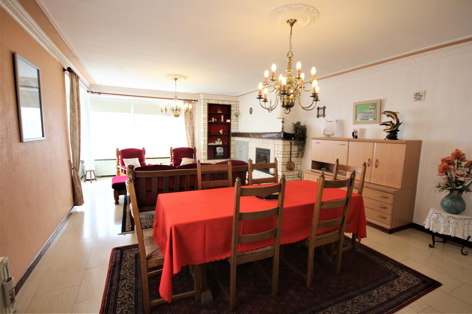 Meergezinswoning gekend onder de naam “Residentie Strandvisser”, stevig en op traditionele wijze gebouwd in 1978, op een perceel bouwgrond met een lengte van 11,45 m. a/d Middenlaan en 19 m. a/d Duinenstraat. Bestaande uit : * a) een kelderverdieping met garage + inrit, en bergplaats; * b) een gelijkvloers met woonstudio, 2 garages, en gemeenschappelijke berging ; * c) en een eerste verdieping met 2 appartementen. Stevige funderingen en vloerplaat in gewapend beton. Beide bouwlagen zijn voorzien van betonnen gewelven + chappe & tegelvloeren. Buitengevels in een paramentmetselwerk van wit-geglazuurde brieken + spouw. Plat dak met roofingbedekking (summier geïsoleerd). De hoekliving is voorzien van een loggia. Deur- & vensterdorpels in harde blauwsteen. Gemeenschappelijke inkom- en traphal (marmeren vloer en dito trap). Het appartement heeft een benutbare vloeroppervlakte van 90 m², een beschermd volume van 268 m³, en wordt gemeubeld verkocht (vrij bij akte). Vernieuwd buitenschrijnwerk in witte kunststof met drie-dubbele-beglazing. Mooie & duurzame ceramieke tegelvloeren in alle vertrekken (Jurasteentegels in de living). Marmeren venstertabletten. Mooi-afgewerkte binnendeuren (bekleed met sierlijk kunststof). Individuele centrale verwarming d.m.v. aardgas-atmosferische wandketel “Viessmann” (Vitopend 100). Voorzien van stadswater, elektriciteit, teledistributie, telefoon, centrale verwarming op aardgas, en riolering. Er is geen syndicus, waardoor de algemene kosten beperkt zijn (enkel het elektriciteitsverbruik in de gemene delen, en de collectieve verzekeringspremie).
