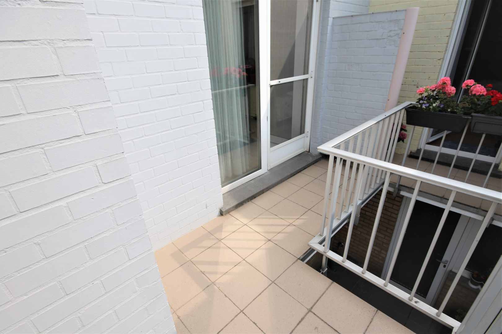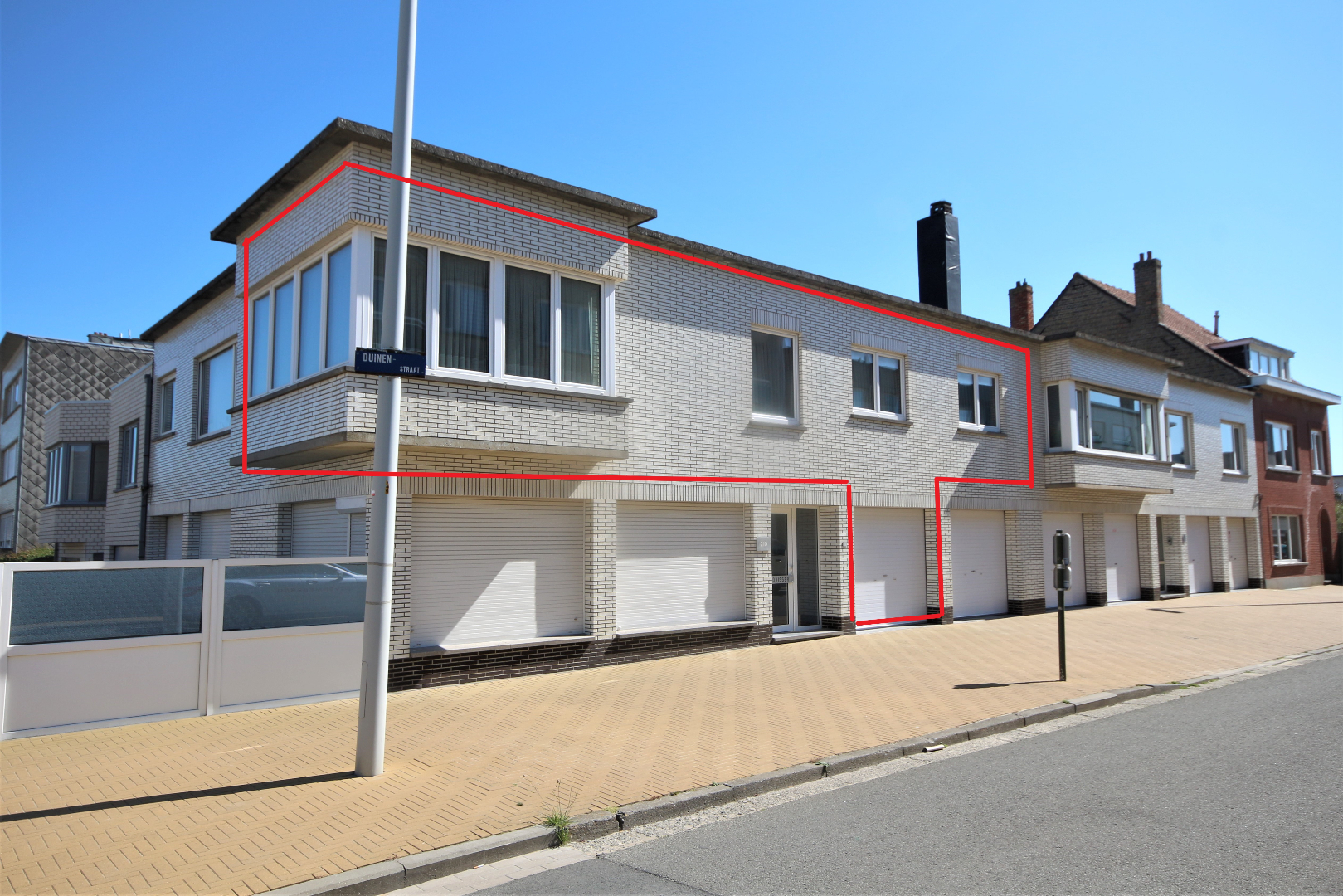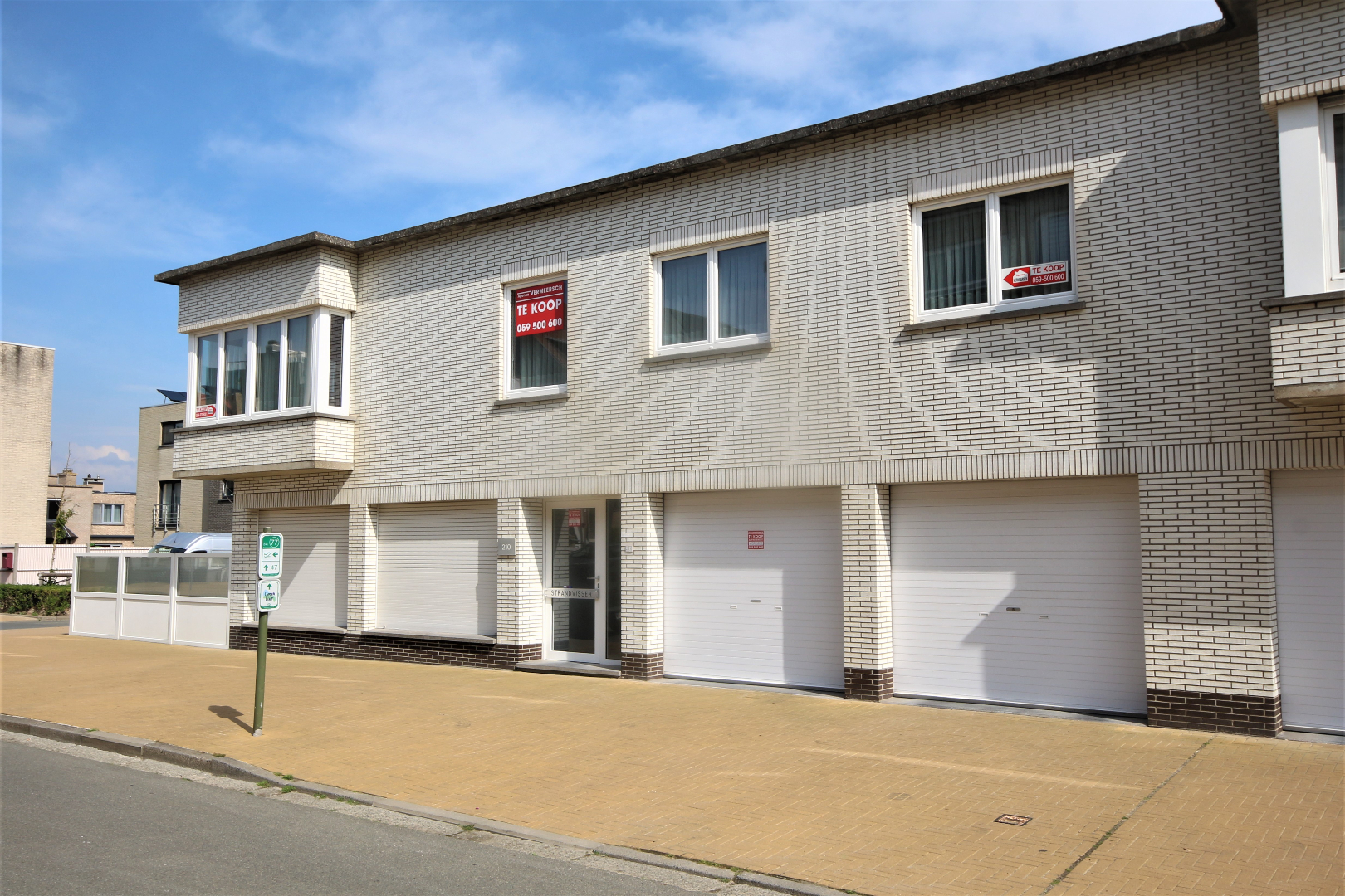 Meergezinswoning gekend onder de naam “Residentie Strandvisser”, stevig en op traditionele wijze gebouwd in 1978, op een perceel bouwgrond met een lengte van 11,45 m. a/d Middenlaan en 19 m. a/d Duinenstraat. Bestaande uit : * a) een kelderverdieping met garage + inrit, en bergplaats; * b) een gelijkvloers met woonstudio, 2 garages, en gemeenschappelijke berging ; * c) en een eerste verdieping met 2 appartementen. Stevige funderingen en vloerplaat in gewapend beton. Beide bouwlagen zijn voorzien van betonnen gewelven + chappe & tegelvloeren. Buitengevels in een paramentmetselwerk van wit-geglazuurde brieken + spouw. Plat dak met roofingbedekking (summier geïsoleerd). De hoekliving is voorzien van een loggia. Deur- & vensterdorpels in harde blauwsteen. Gemeenschappelijke inkom- en traphal (marmeren vloer en dito trap). Het appartement heeft een benutbare vloeroppervlakte van 90 m², een beschermd volume van 268 m³, en wordt gemeubeld verkocht (vrij bij akte). Vernieuwd buitenschrijnwerk in witte kunststof met drie-dubbele-beglazing. Mooie & duurzame ceramieke tegelvloeren in alle vertrekken (Jurasteentegels in de living). Marmeren venstertabletten. Mooi-afgewerkte binnendeuren (bekleed met sierlijk kunststof). Individuele centrale verwarming d.m.v. aardgas-atmosferische wandketel “Viessmann” (Vitopend 100). Voorzien van stadswater, elektriciteit, teledistributie, telefoon, centrale verwarming op aardgas, en riolering. Er is geen syndicus, waardoor de algemene kosten beperkt zijn (enkel het elektriciteitsverbruik in de gemene delen, en de collectieve verzekeringspremie).