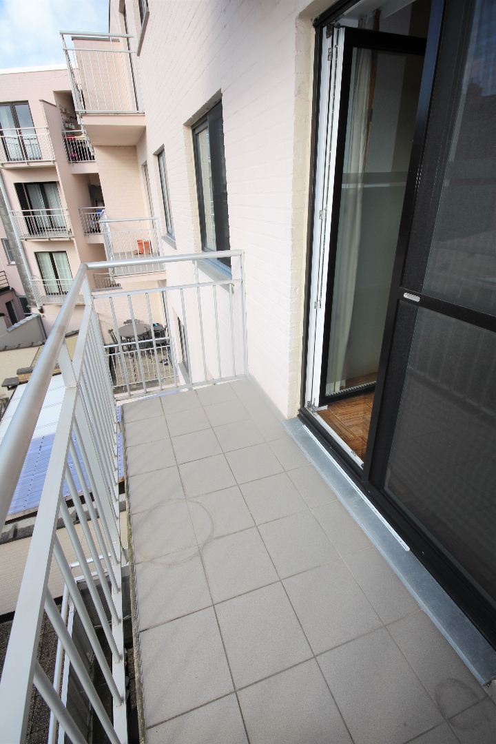 hall met videofoon + belinstallatie,- woonkamer (4 x 5,31),- aansluitende keuken (3,17 x 1,75) met keukenblok + ingebouwde ceramische kookplaat, inox dampkap, en inox afwasbak,- toilet,- berging met elektriciteitskast en verluchtingsventiel,- slaapkamer 1 (4 x 2,80) met terrasdeur,- zonneterras (3,25 x 1,11),- slaapkamer 2 (4 x 3),- badkamer met ligbad en toiletmeubel + ingebouwde lavabo,- ondergrondse autostaanplaats nummer 10.