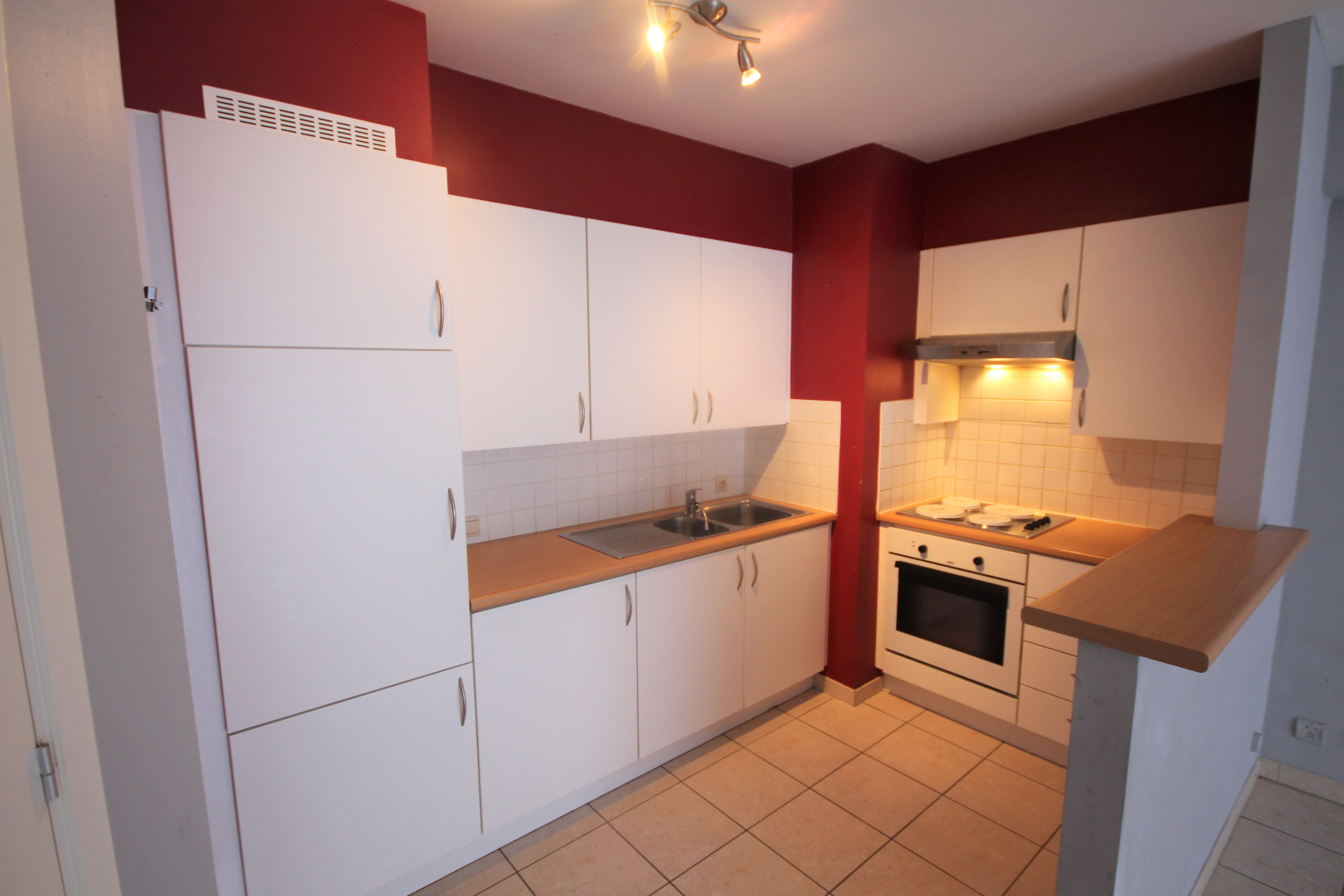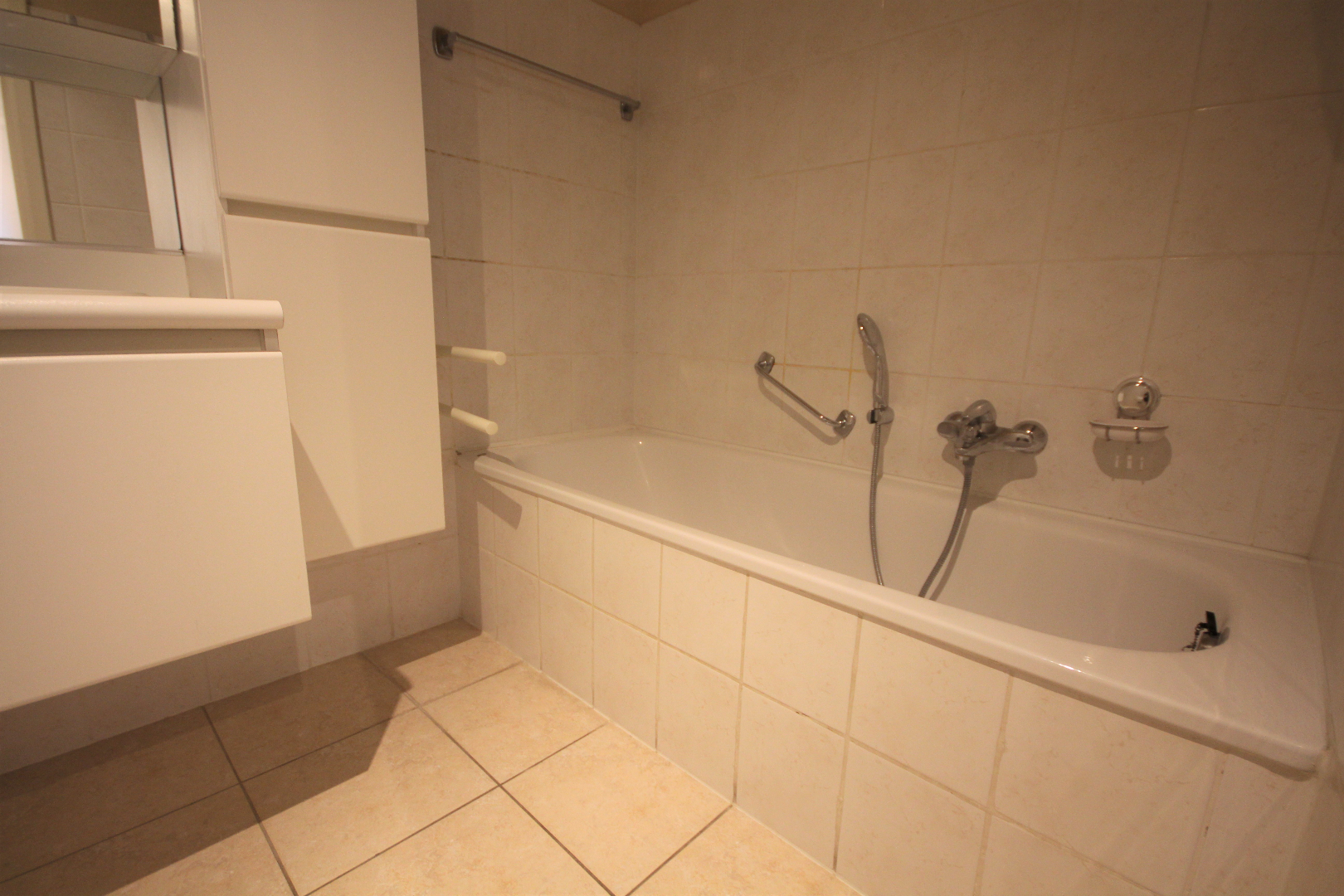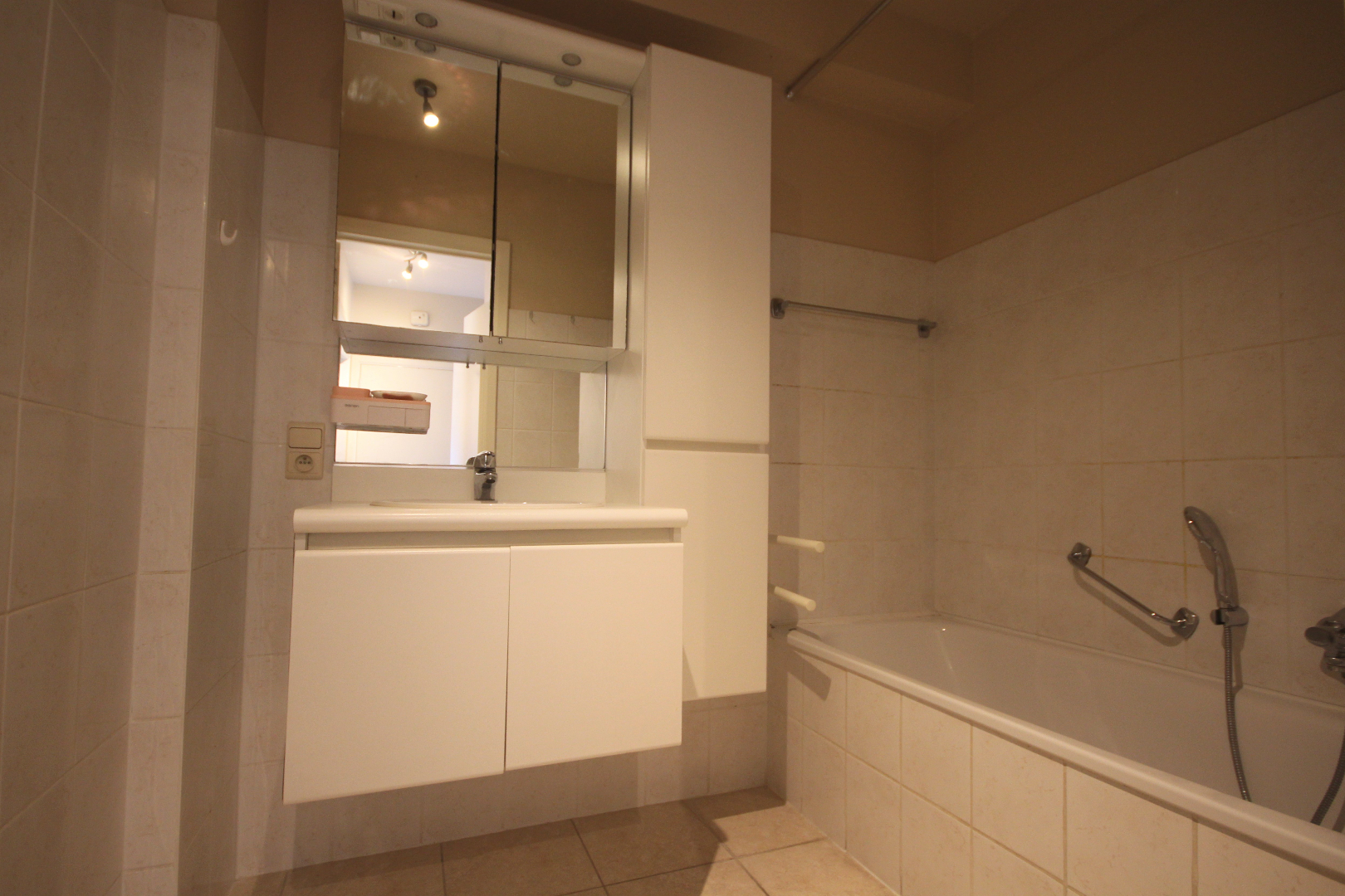 Het ongemeubeld appartement is onmiddellijk vrij van gebruik, en heeft een oppervlakte van ca 95 m², een bruikbare vloeroppervlakte van 79 m² en een beschermd volume van 222 m³. Het is voorzien van videofoon, stadswater, elektriciteit, teledistributie, telefoon, en van een individuele verwarmings- en warmwaterdistributie (elektrische spaarkachels & accumulatoren). Keramische tegelvloeren in alle woonvertrekken en laminaat-parket in de slaapkamers. Nieuwe elektrische boiler onder het keukenaanrecht en recente boiler in de berging. De gordijnen en verlichting in de living zijn inbegrepen in de prijs. Algemene kosten + reservefonds : € 75/m. Verhuurbaar à € 725,00/m.