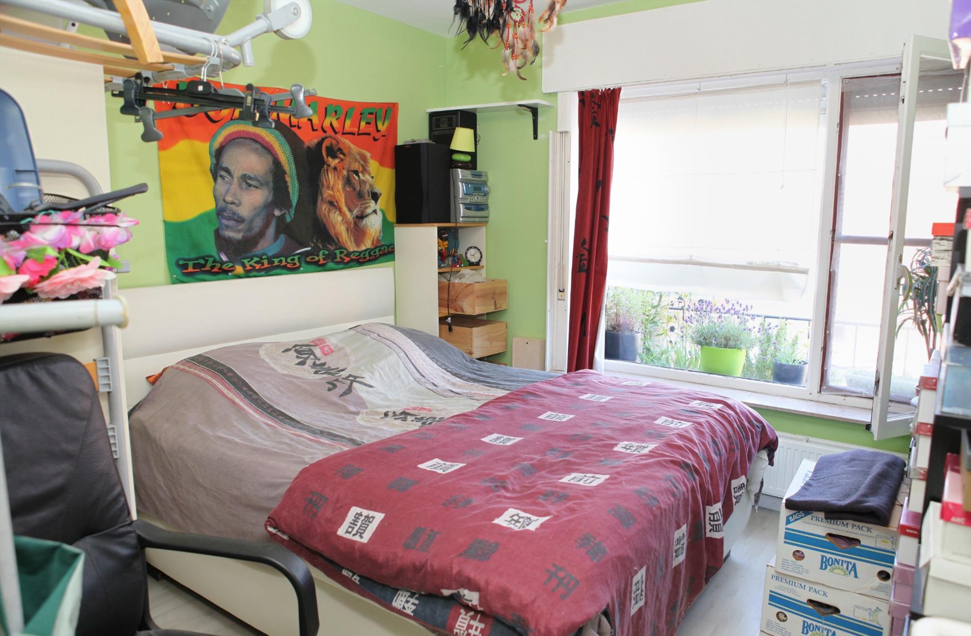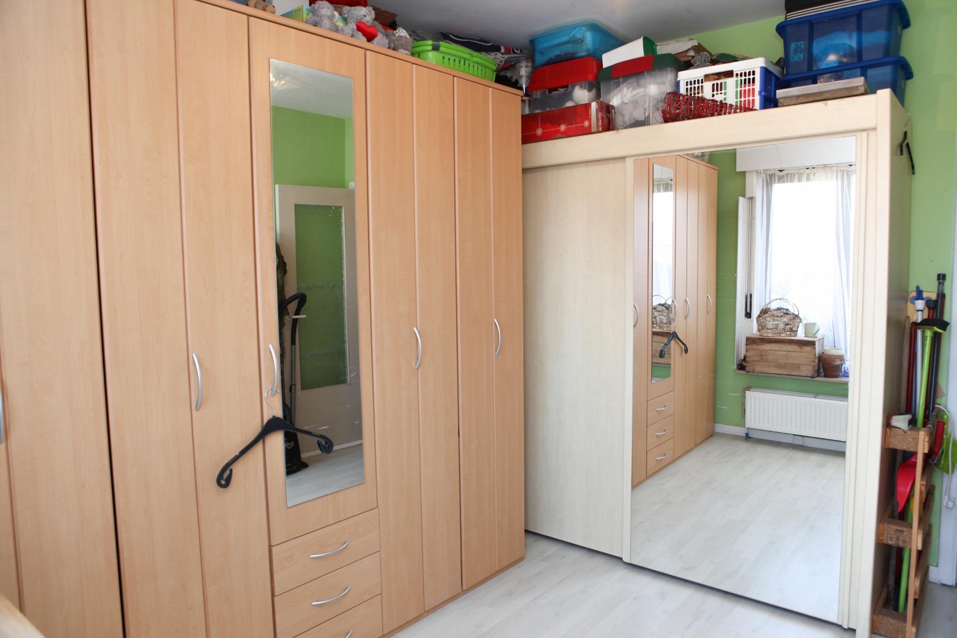 Hall met inbouwkast),- toilet,- living (6,90 x 4,15) met sierschouw),- keuken met kasten, werkblad in kunststof, spoelbak, elektrische kookplaat, oven, dampkap en nis voor wasautomaat en droogkast),- berging),- badkamer met wastafel, zitbad en elektrische boiler (50 L.),- bergkast, slaapkamer 1 (3,25 x 3,15),- slaapkamer 2 (3,45 x 3,15) met terrasdeur),- zongericht terras van (11:00 tot 20:00) (0,90 x 6,30).