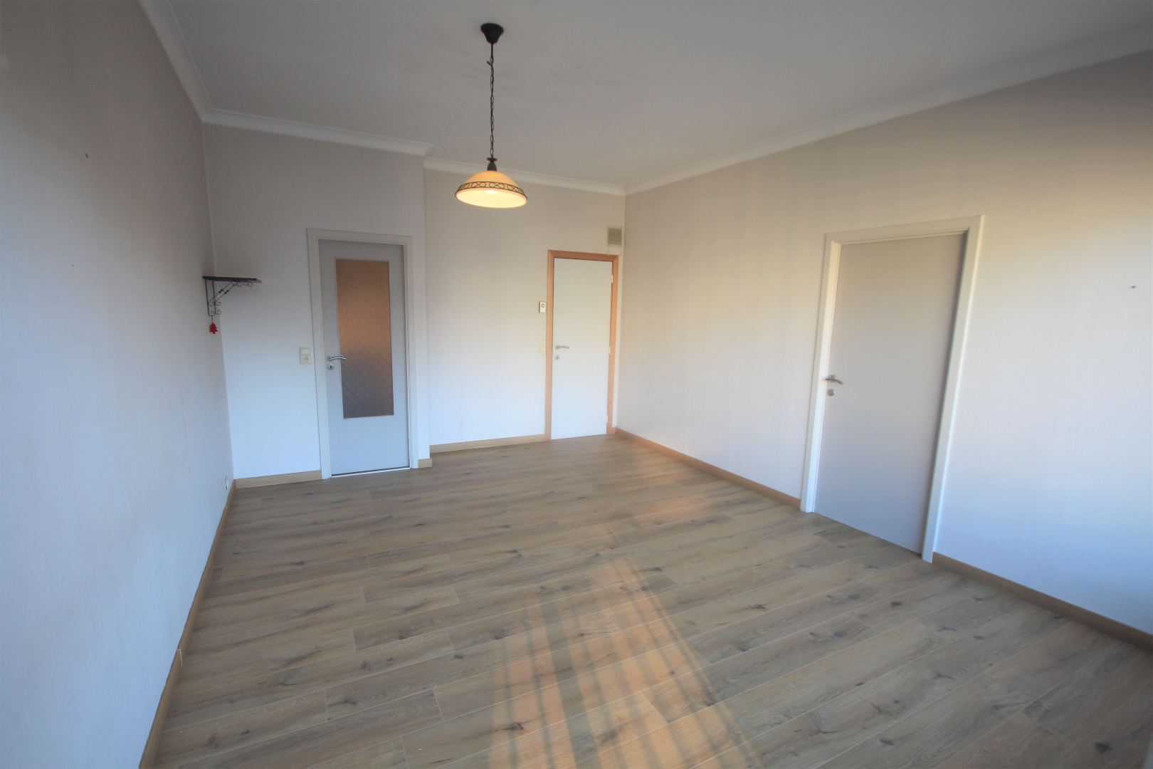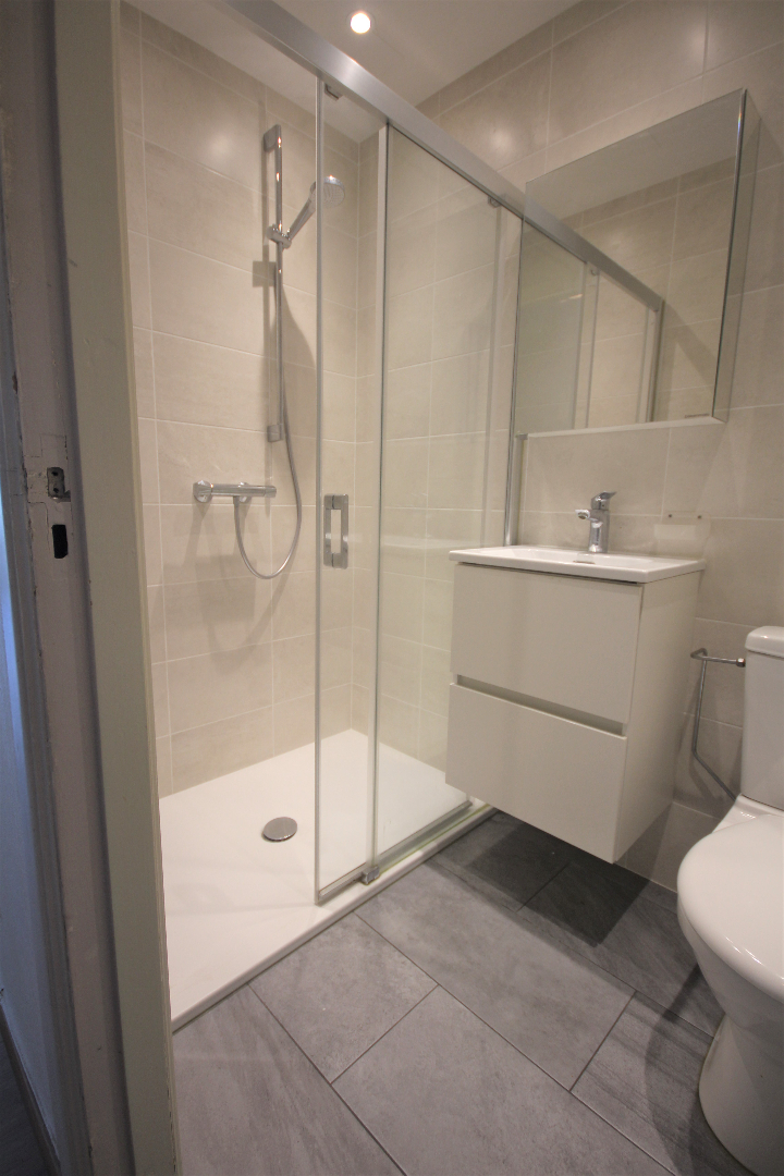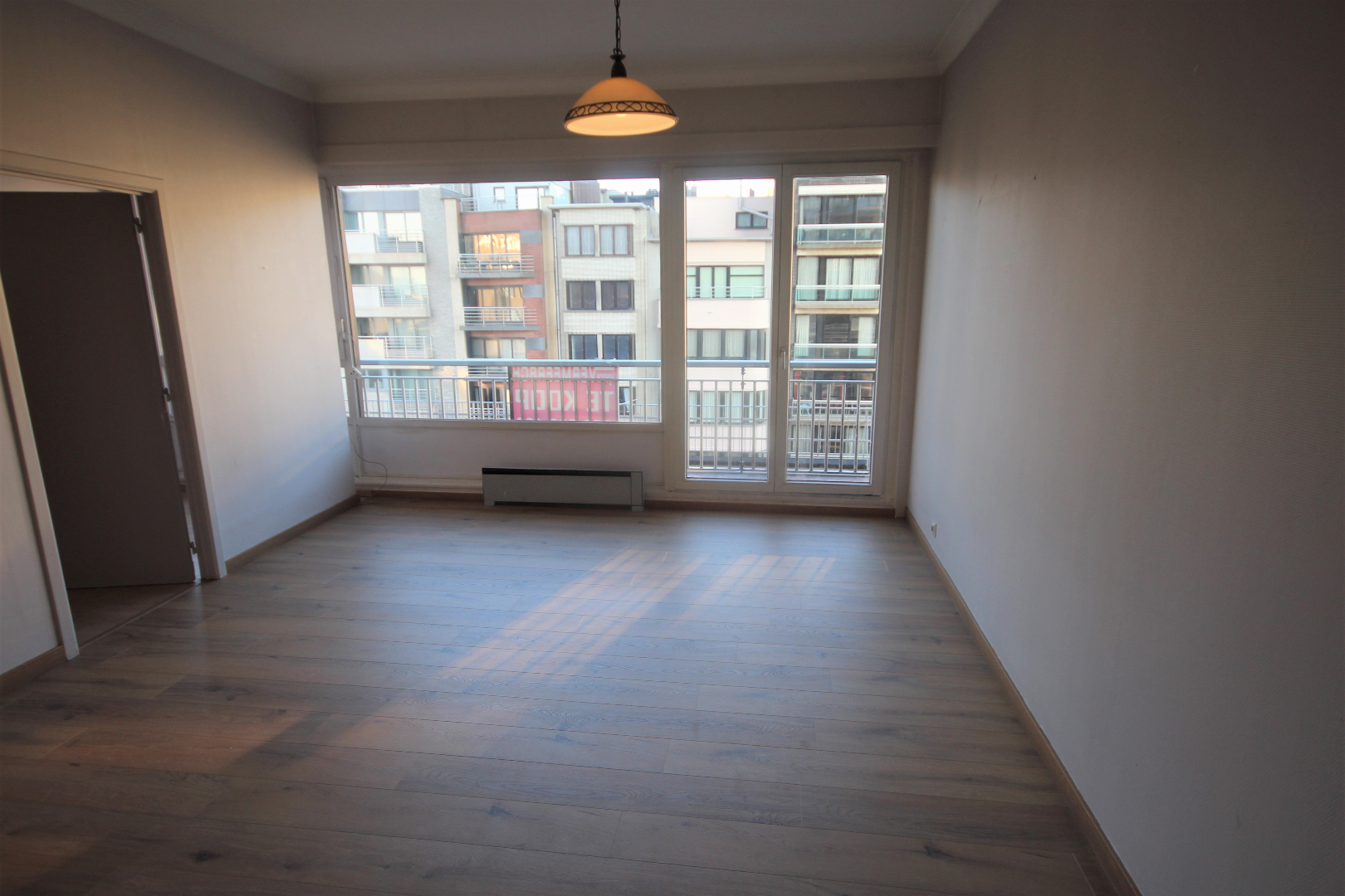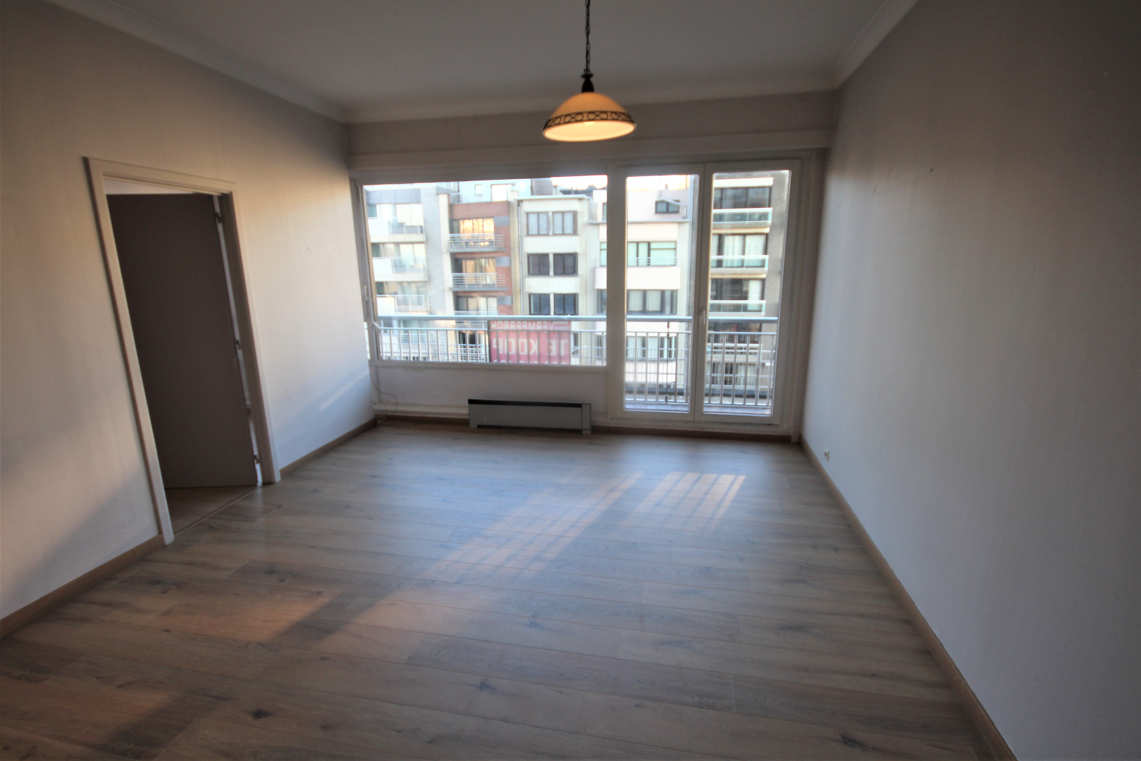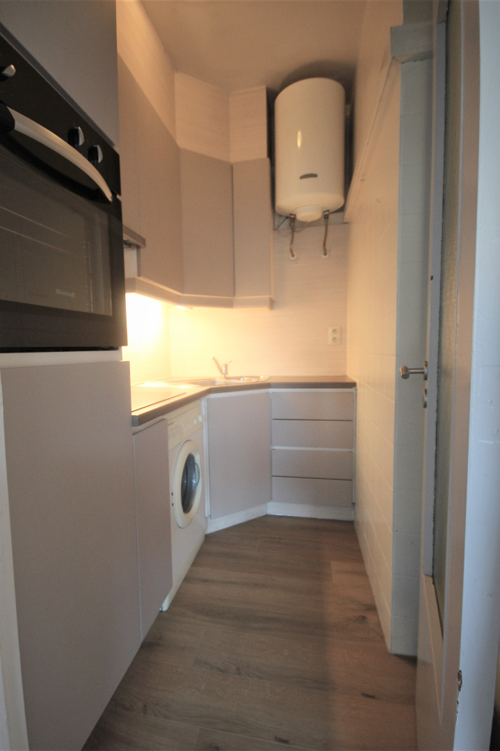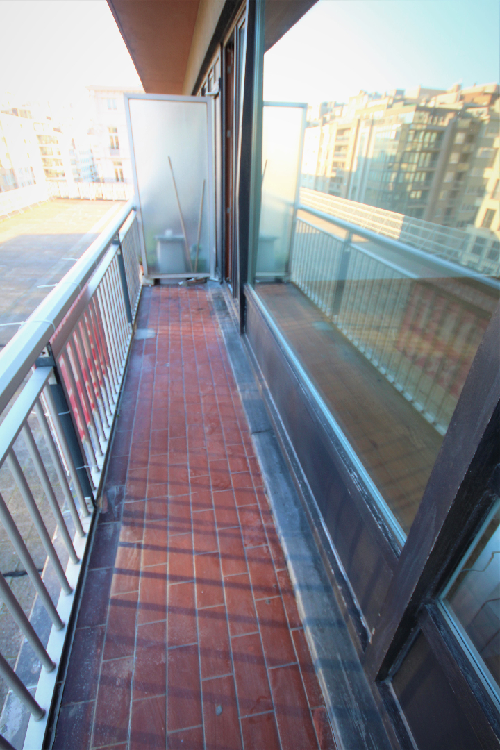 Van deze studio werd een appartement gemaakt met één slaapkamer. Met weinig kosten kan hiervan weer een grote studio gemaakt worden met een living van 31 m². De keuken en de badkamer werden enkele jaren geleden vernieuwd. Nieuw laminaat-parket in de living, slaapkamer, en keuken. Benutbare vloeroppervlakte: 47 m² * beschermd volume: 149 m³. Verhuurbaar à € 550/m. Onmiddellijk vrij. Voorzien van videofoon, stadswater, elektriciteit, teledistributie, telefoon en van elektrische verwarmings- en warmwaterdistributie.