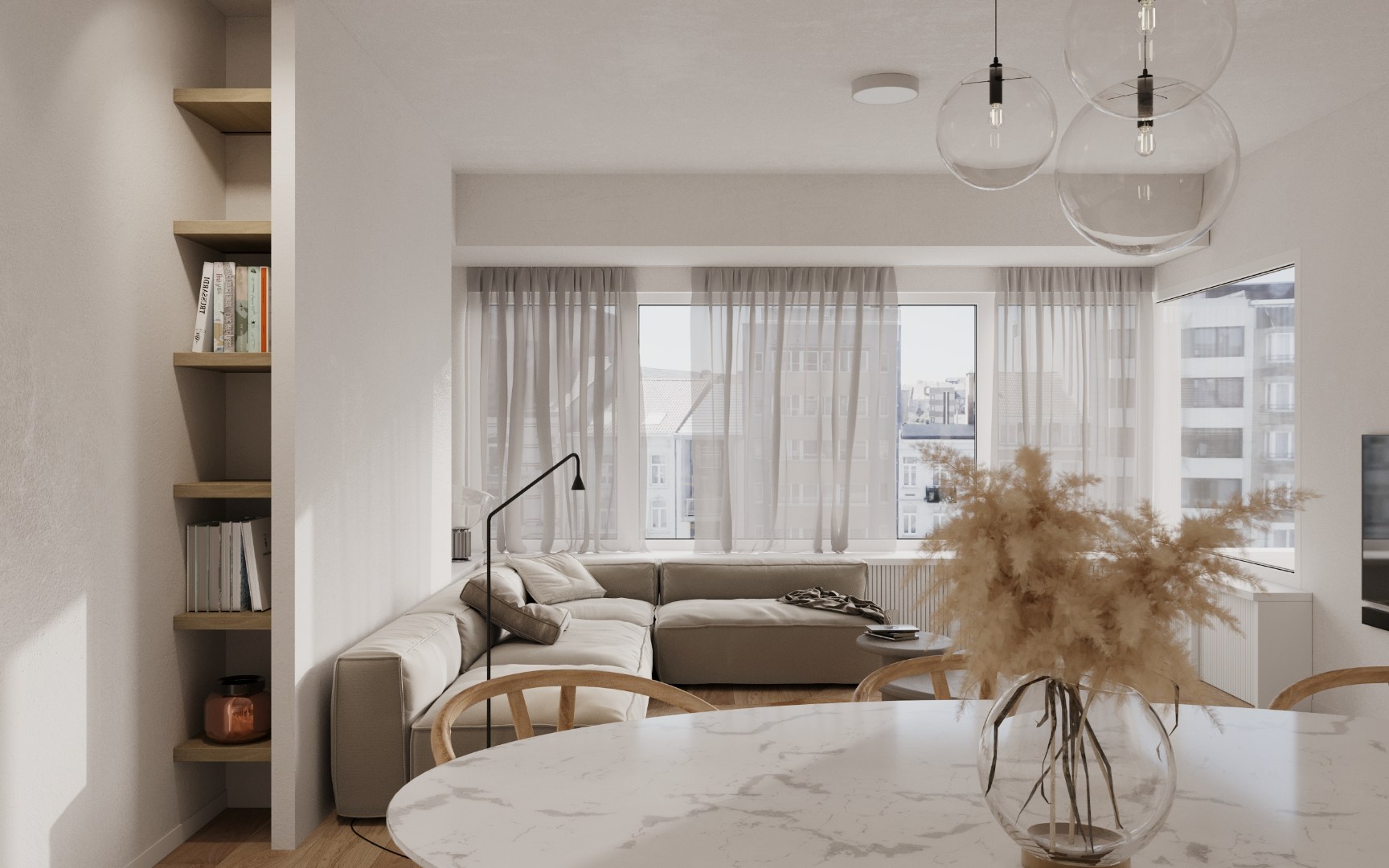 Het appartement bevindt zich op de 4de verdieping dat tevens ook het hoogste verdiep is van een kleinschalige residentie, het appartement werd volledig gestript en opnieuw opgebouwd in 2023 met enkel het gebruik van hoogwaardige materialen: