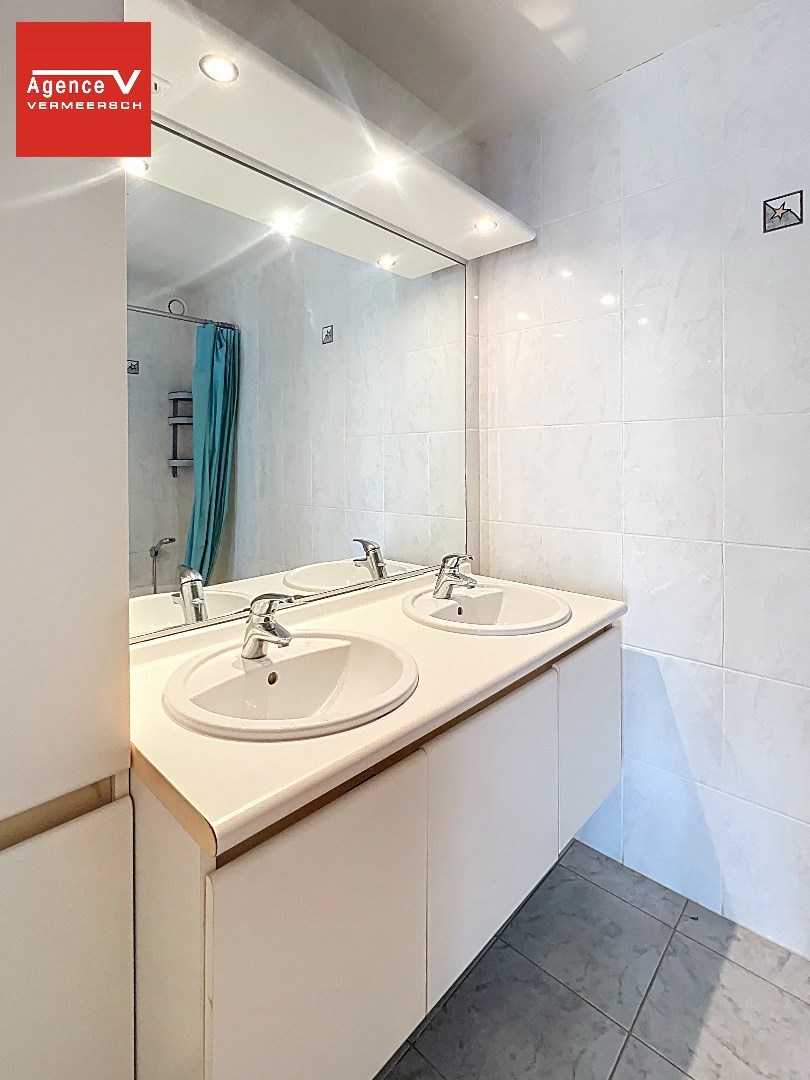 Achteraan bevinden zich 2 uiterst ruime slaapkamers met beide toegang tot een zonneterras (7.5m²) vanwaar u in de middag tot in de avond kan genieten van zon – badkamer met dubbele lavabo en bad.