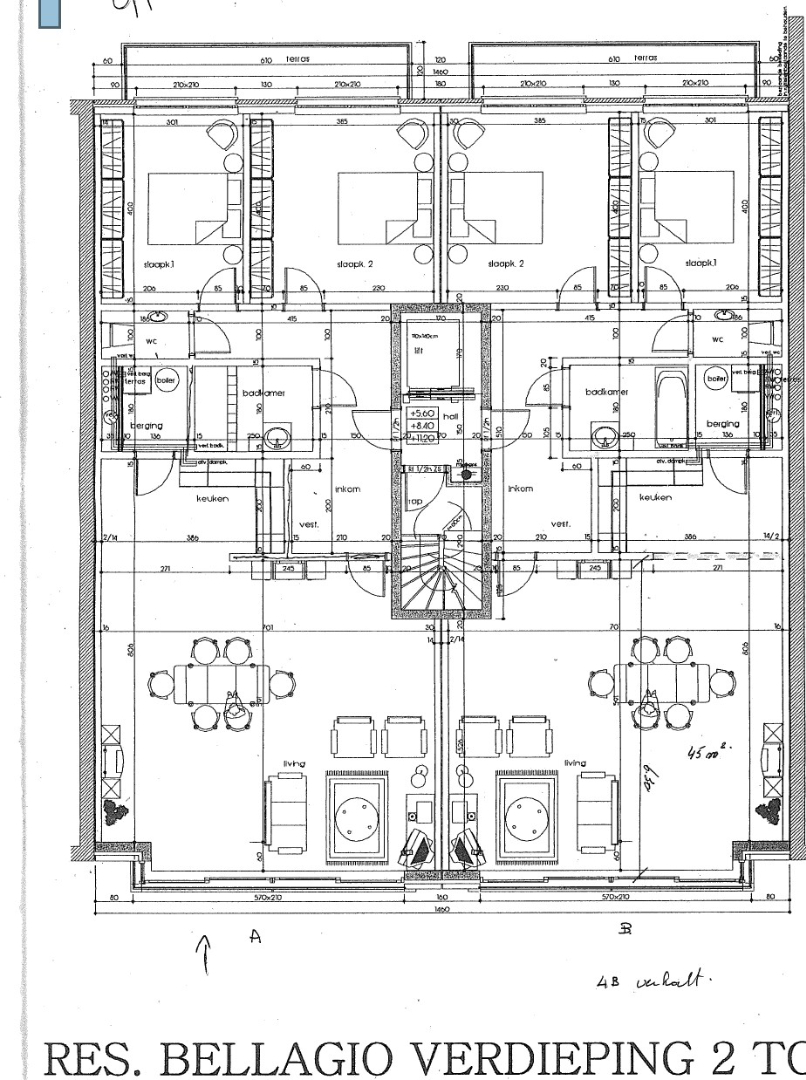 | Sanitair: | Badkamer met bad en dubbele lavabo |
