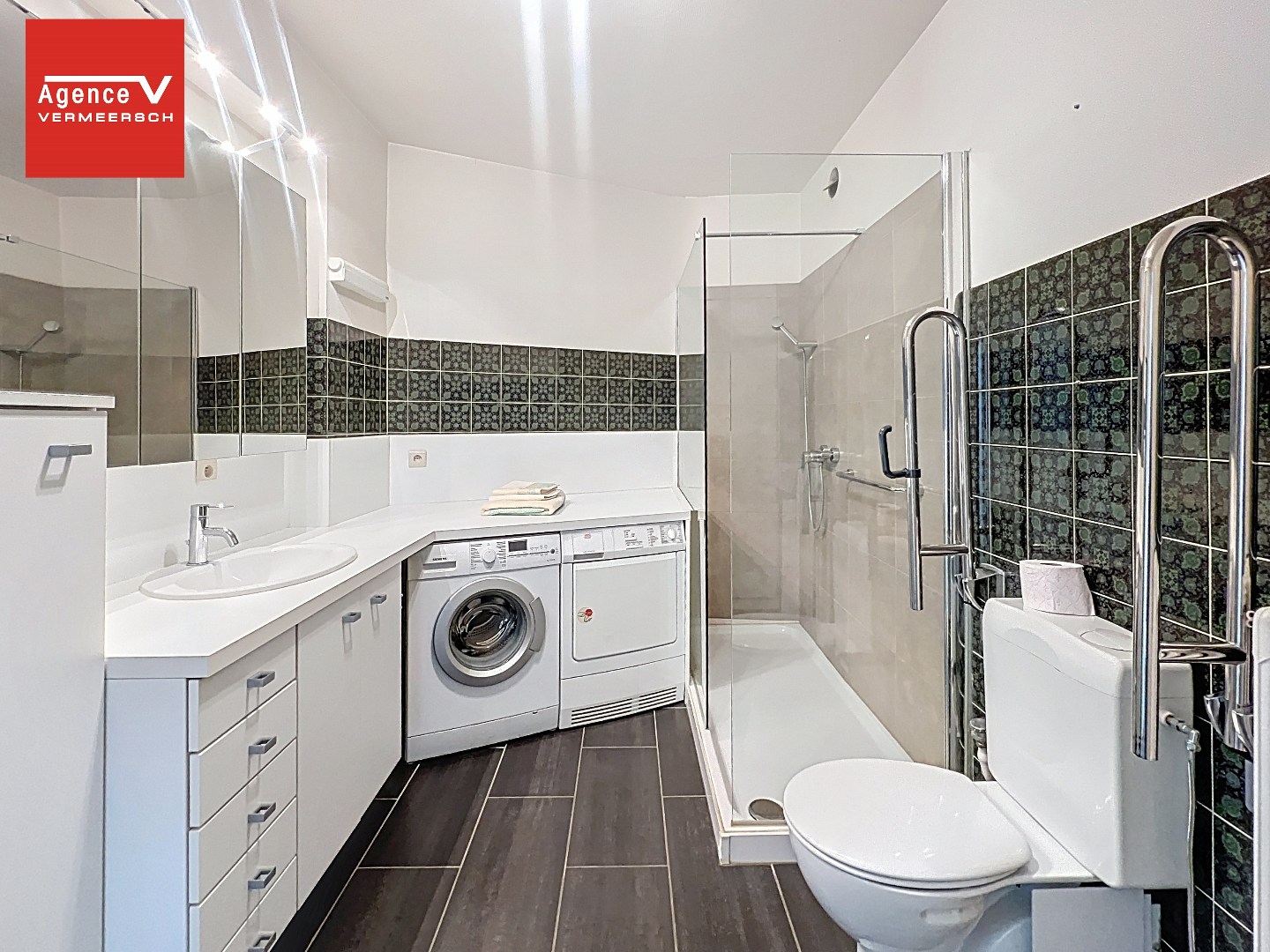 Ruime badkamer met inloopdouche, voorzien van voldoende opbergmogelijkheden, aansluiting voor was /droogkast.