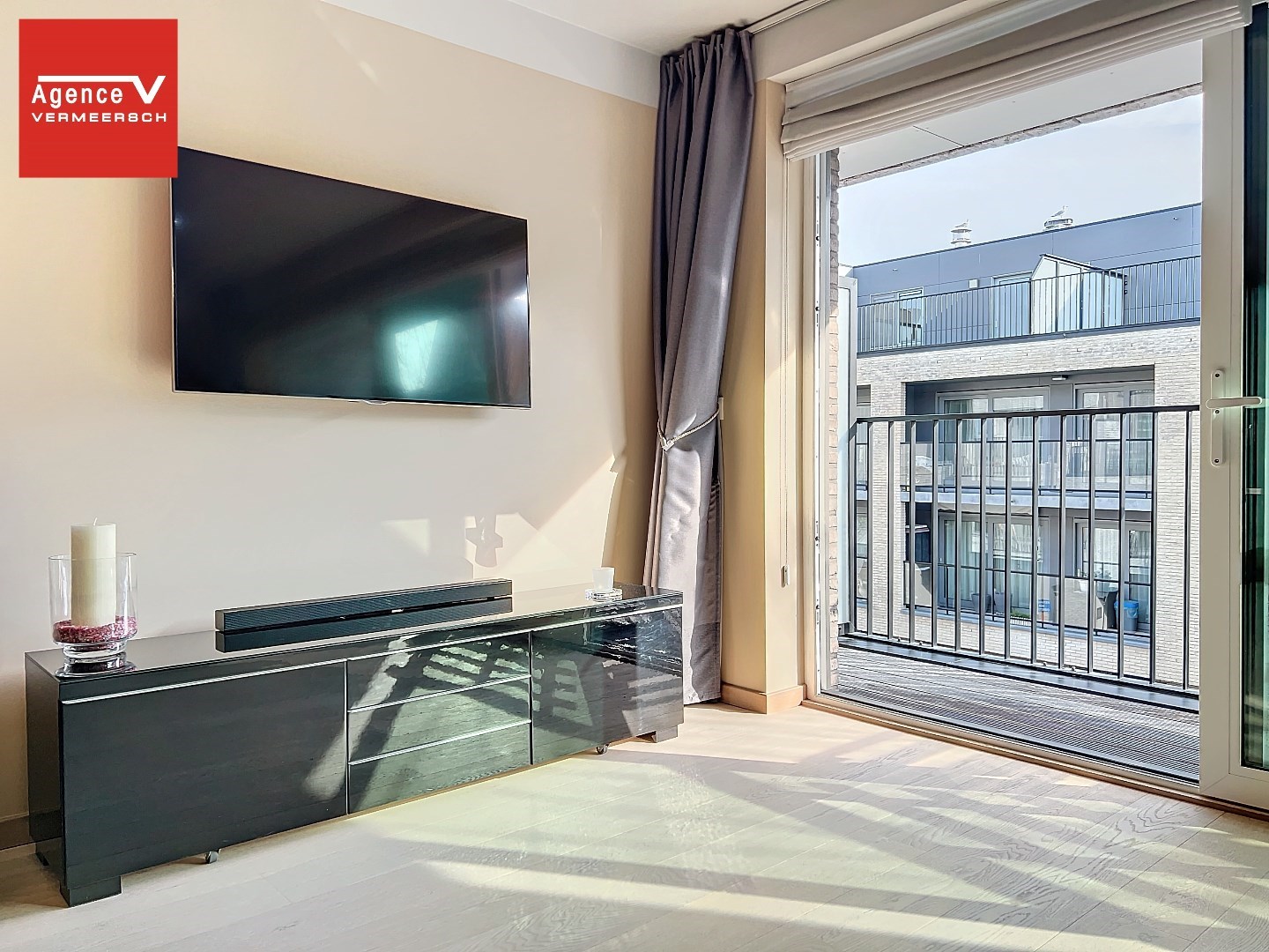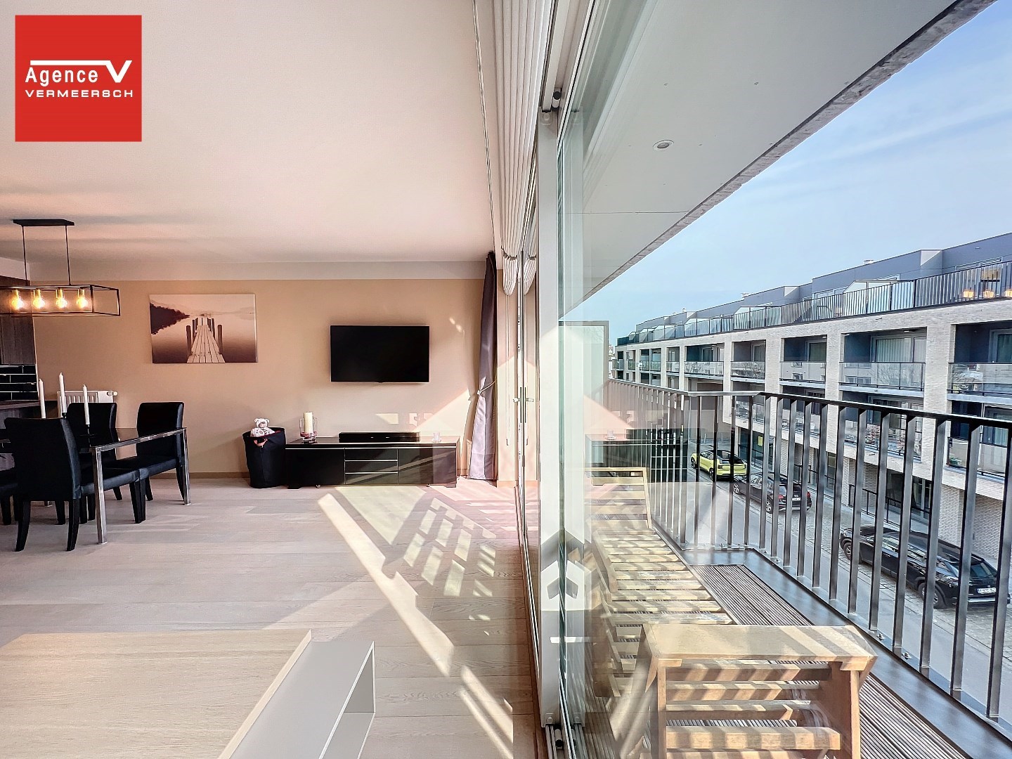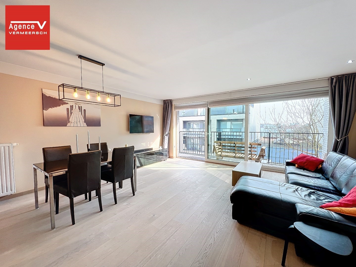 Het appartement is opgebouwd uit hoogwaardige materialen en is ingedeeld als volgt: inkomhal – lichtrijke eetkamer met aansluitend de zithoek met kamerbrede schuiframen vanwaar u toegang krijgt tot een aangenaam terras. Mooie hoogwaardige keuken met eetbar ontworpen door Diapal, de keuken is volledig ingericht met toestellen - vaatwas – combi-oven – frigo. Woonkamer is voorzien van massief parket.