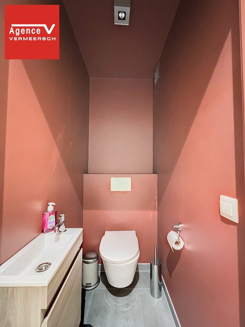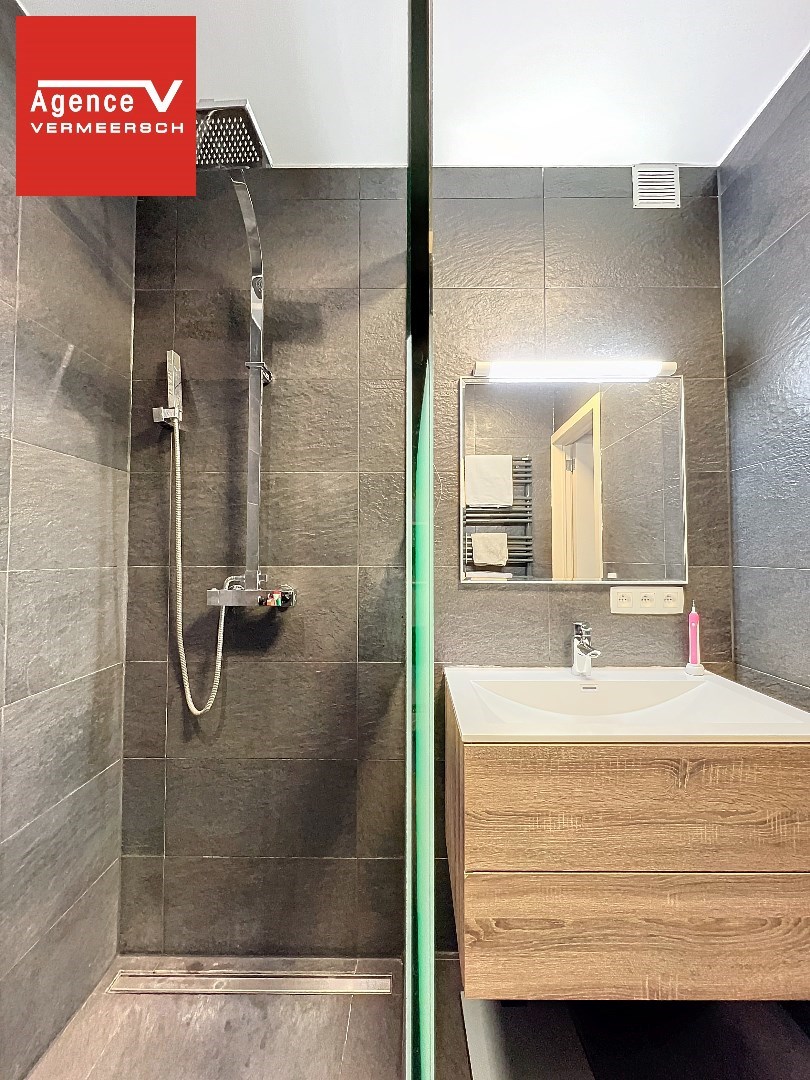 Via de gang komen we in de berging waar de technische ruimte zich ook bevindt, hier is er ook een aansluiting voorzien voor een wasmachine. Apart toilet – mooie luxueuze badkamer ingericht met ruime inloopdouche.