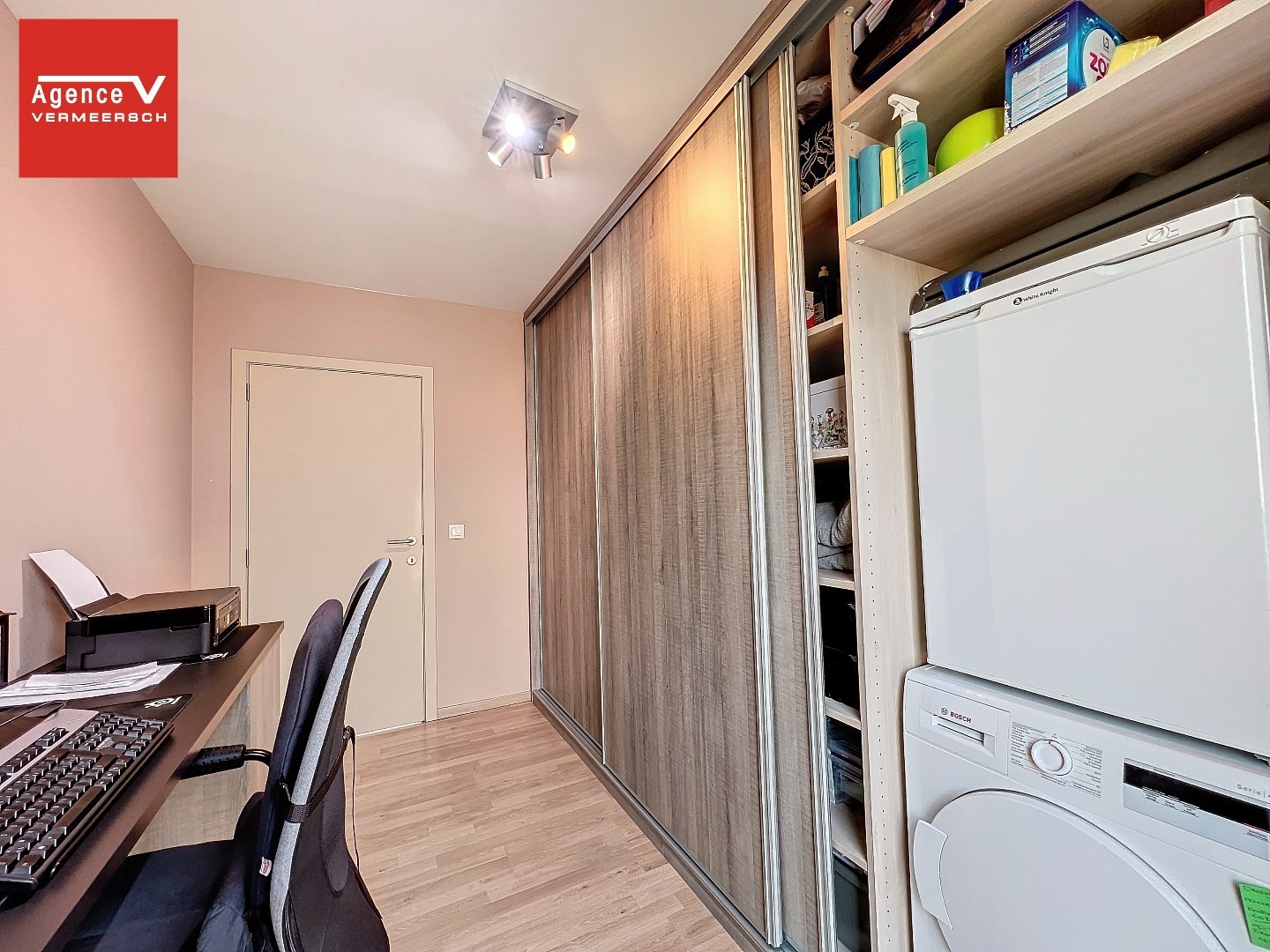 Eén slaapkamer is momenteel ingericht als bureau en dressing, beide slaapkamers hebben toegang tot een leuk balkon aan de Zuidzijde van het gebouw. Bij dit appartement hoort een privatieve berging in het gebouw.