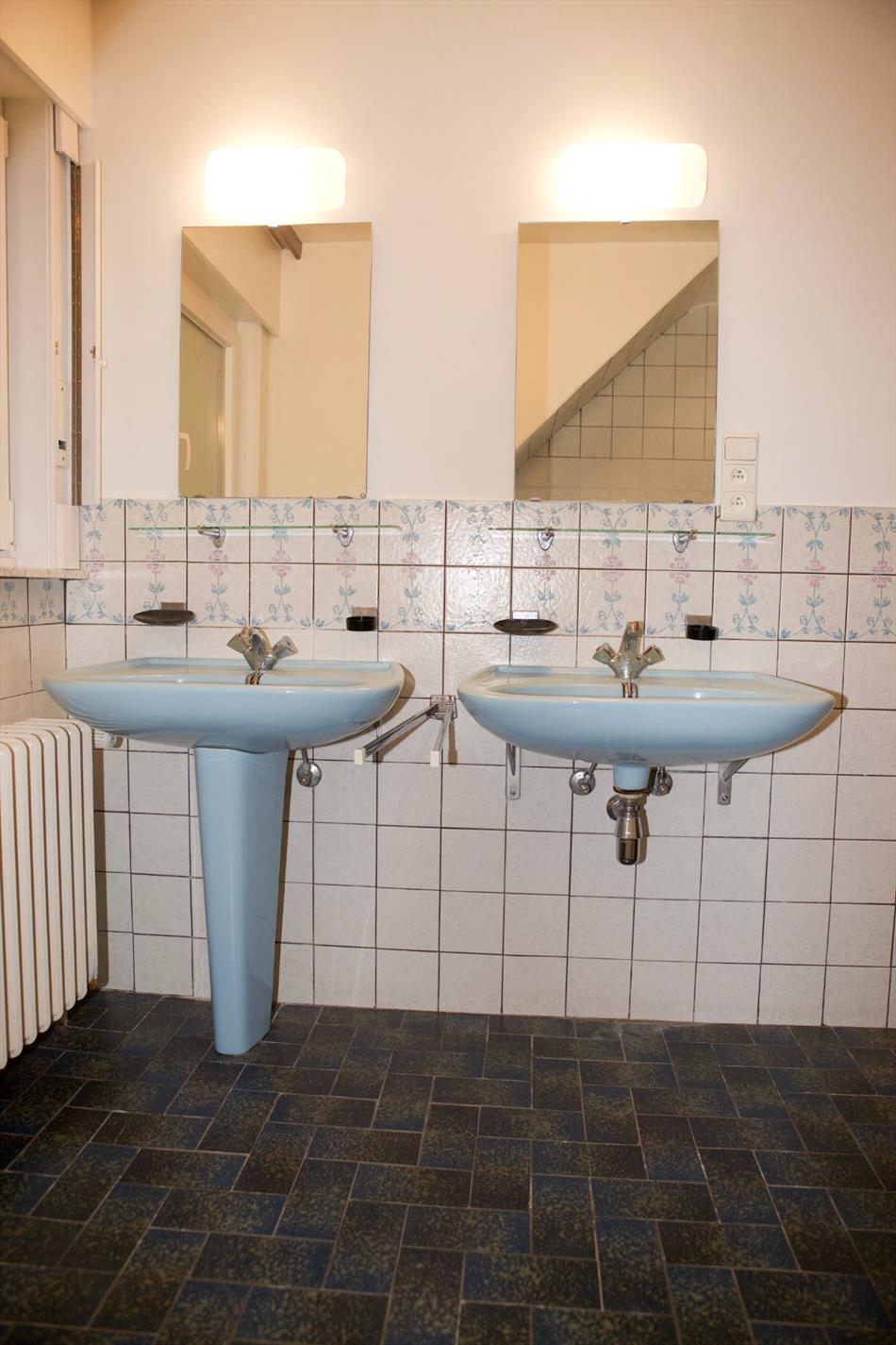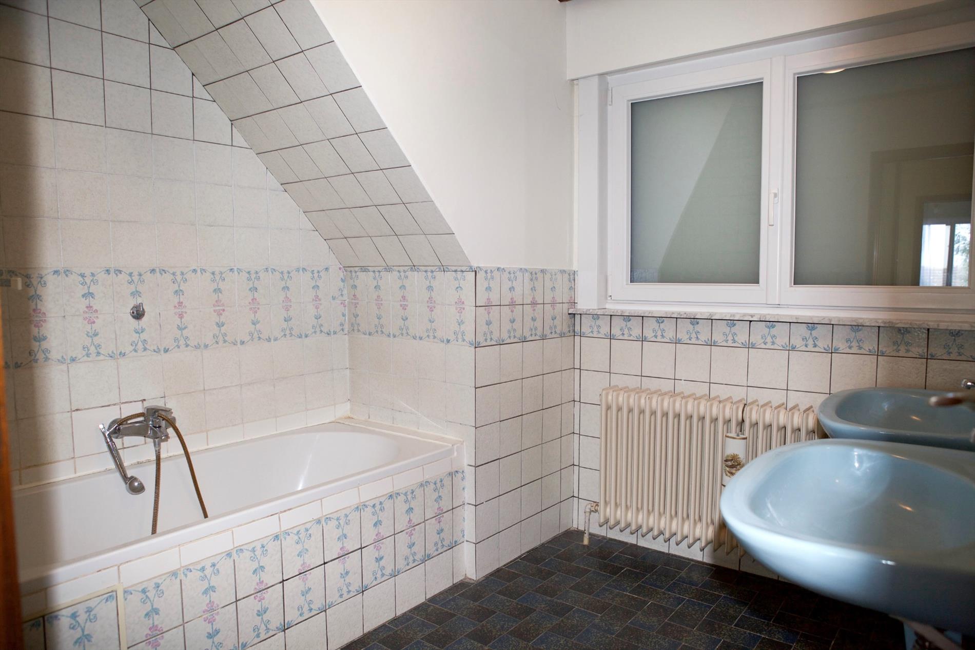 Tweede verdieping: overloop + zolderluik (metalen vouwtrap), en parlofoon,- toilet,- badkamer met ligbad, bidet, en 2 lavabo’s,- achter-slaapkamer (3,50 x 3,20),- kinderkamer (3 x 2,50),- en voor-slaapkamer (4,80 x 3,20) met vol-eiken parket;