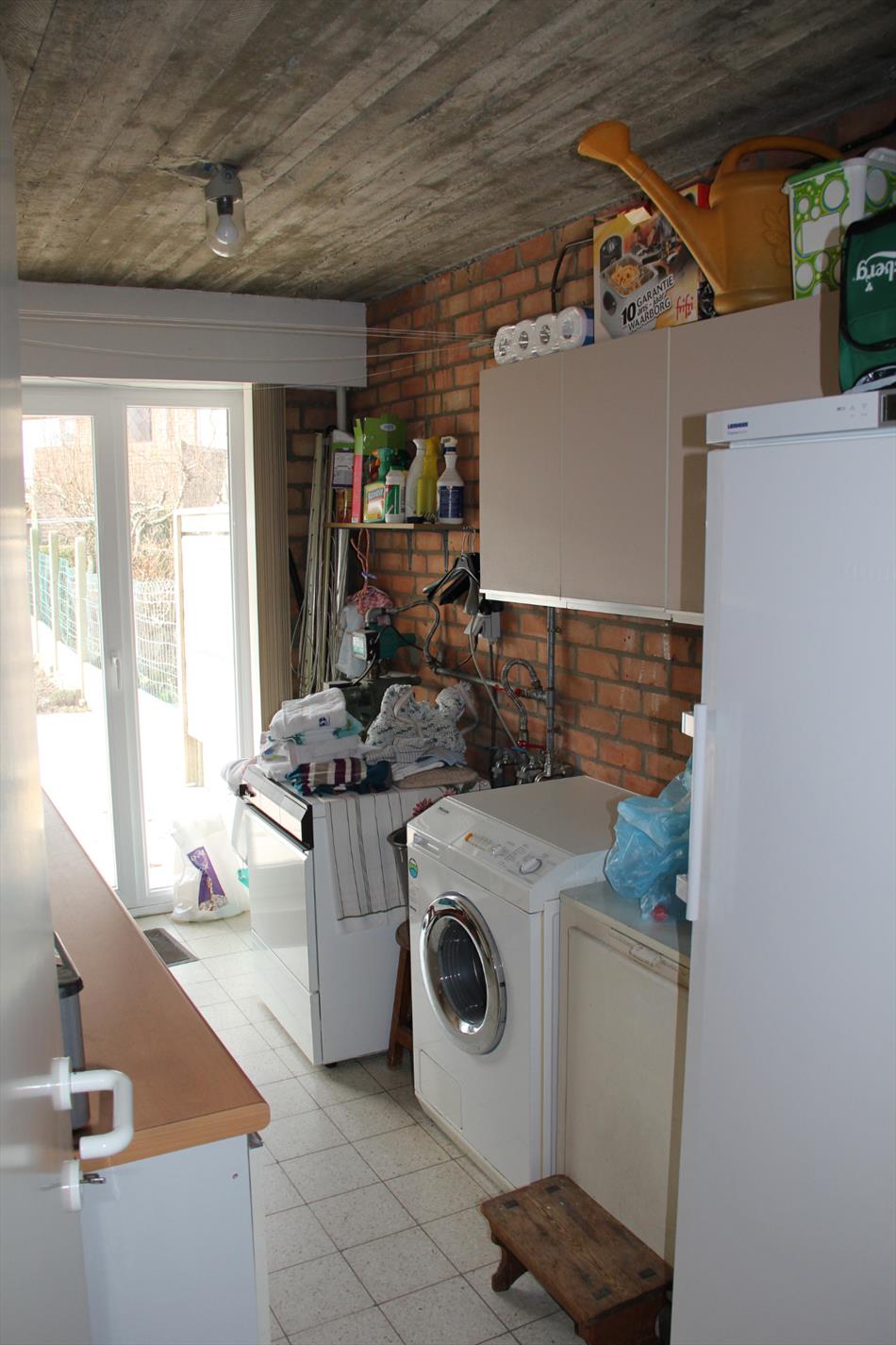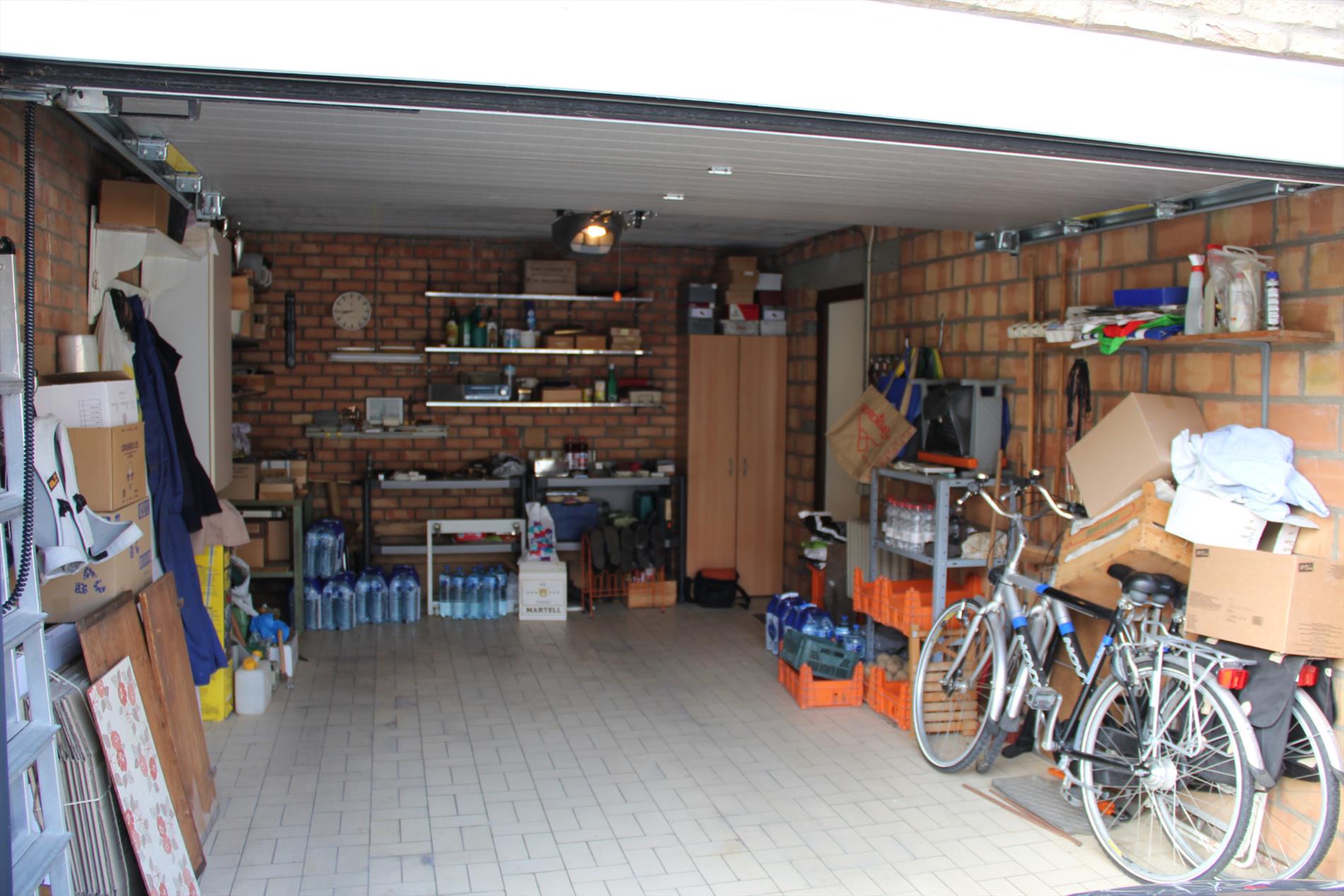 - Gelijkvloers: oprit-parking (blauwsteen),- hall,- gang & traphall + aanbouw-vestiairekasten (marmeren trap * berging onder de trap),- toilet met w.c. & toiletmeubel + lavabo,- garage (5,60 x 3,80) + elektrische sectionale poort,- slaapkamer (3,82 x 3,60 * nu bureau),- stookplaats met c.v.-gasgenerator en w.w.-gasgeiser,- wasplaats (3,50 x 2,70) + hydrofoor (regenwater) en aansluiting was- & droogautomaat,- betegelde koer-terras,- en zonnig tuintje ;