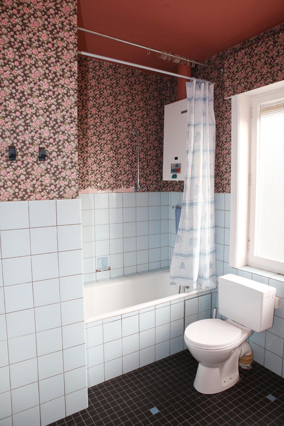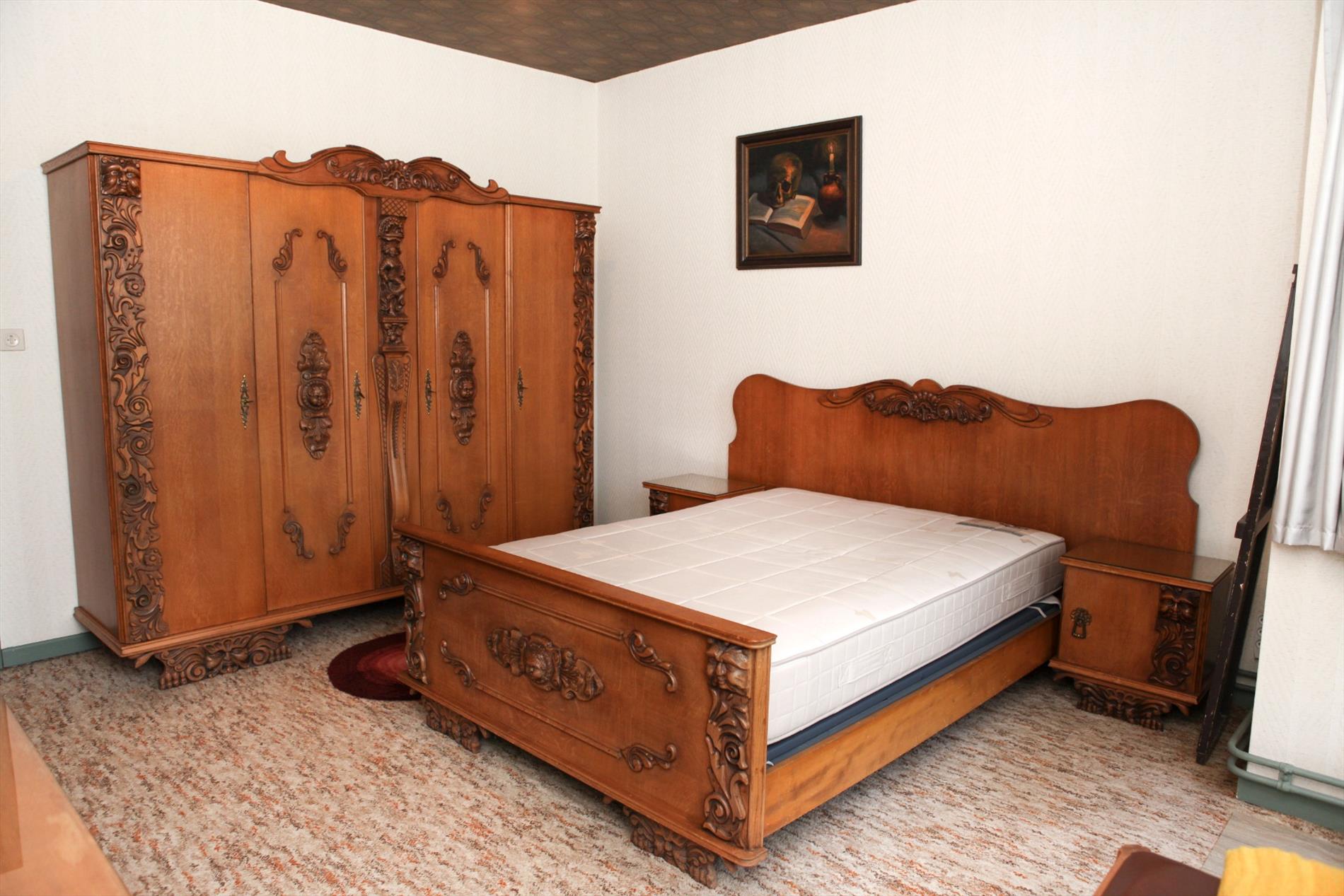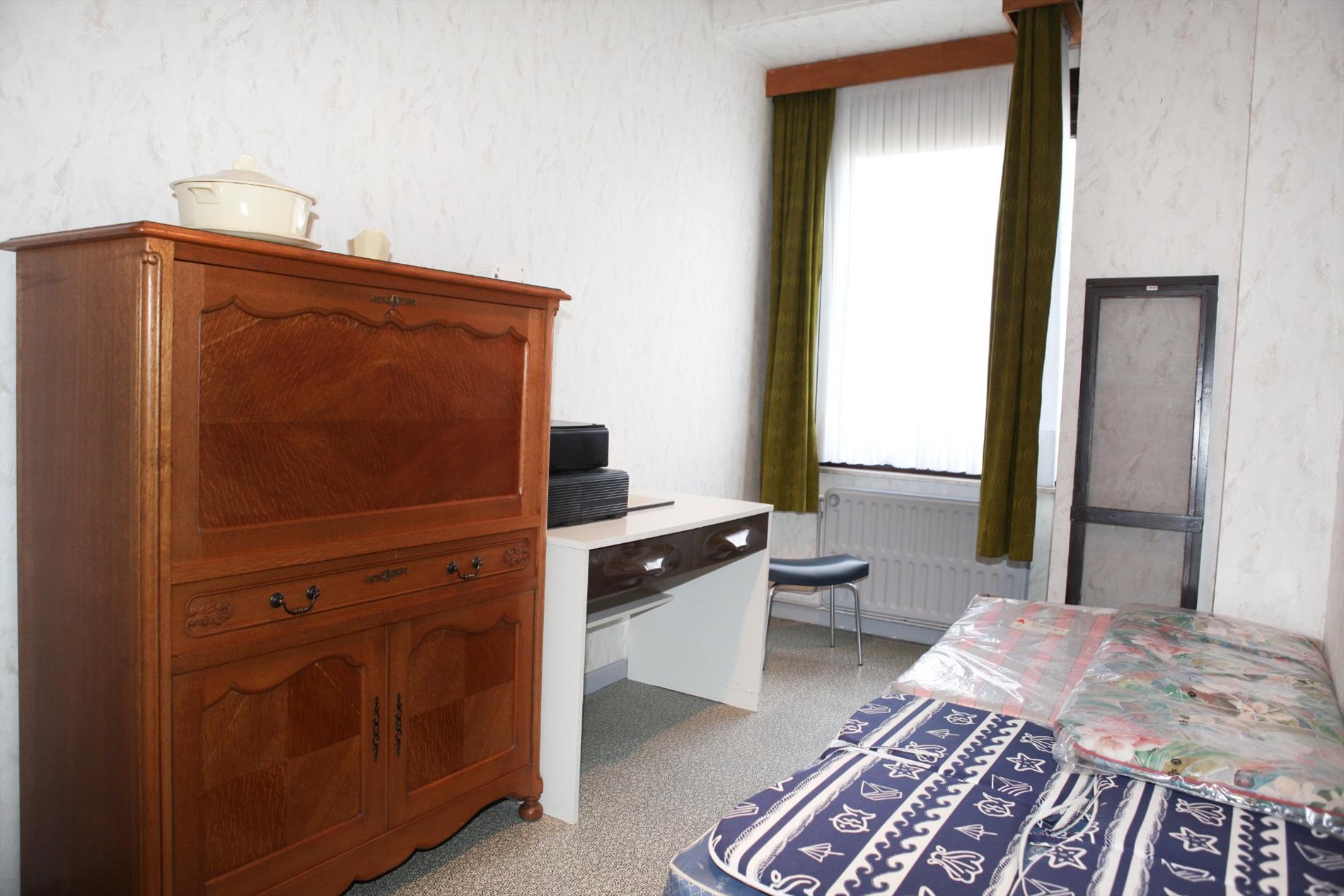 c) 2de + zolderverdiep: overloop + ingemaakte kasten,- 2 voor-slaapkamers + loggia (resp.: 16 m² & 9 m²),- achter-slaapkamer (4 x 3,05) + lavabo,- badkamer met w.c., lavabo, ligbad, en gasgeiser,- en bergplaats (2,80 x 1,55) + zoldertrap & luik, * en grote zolderplaats (mogelijkheid om er een kamer van te maken );