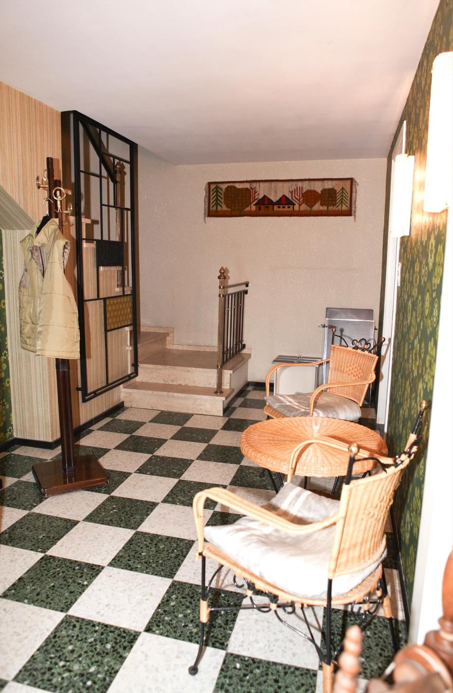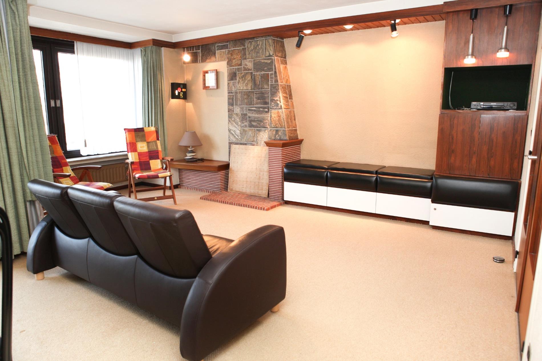 Perfect-onderhouden ‘bel-etagewoning’, rustig gelegen op één van de mooiste plekjes van de badplaats, stevig en op traditionele wijze gebouwd in 1963, op een perceel bouwgrond met een breedte van 6,50 m. op een diepte van 25 m. Bebouwde oppervlakte: 65 m², * bruikbare vloeroppervlakte: 198 m², * beschermd volume: 545 m³. Verzorgde façade + loggia, uitgevoerd in witte geglazuurde brieken (onderaan in natuursteen) + gevelplint in arduin. Betegelde terrassen a/d voor- en achtergevel. Deur- en vensterdorpels in harde blauwsteen. Verzorgd buitenschrijnwerk vooraan in Meranti + dubbele beglazing, en achteraan in geschilderd hout (+ rolluiken). Zadeldak, belegd met rode dakpannen (in gebakken aarde). Oprit-parking (6,50 x 4) in nieuwe dallen. Zonnige tuin + koer. Marmeren venstertabletten. Tegelvloeren in de inkom- en tussenhall, overlopen, keuken, toilet, en badkamer. Vasttapijt in de living en slaapkamers. Sapoli binnendeuren. Uniek mooi open-zicht op tennis en kerk. Voorzien van stads- en regenwater, elektriciteit, aardgas, teledistributie, telefoon, parlofoon, riolering, en centrale verwarming (aardgas). Vrij bij akte.