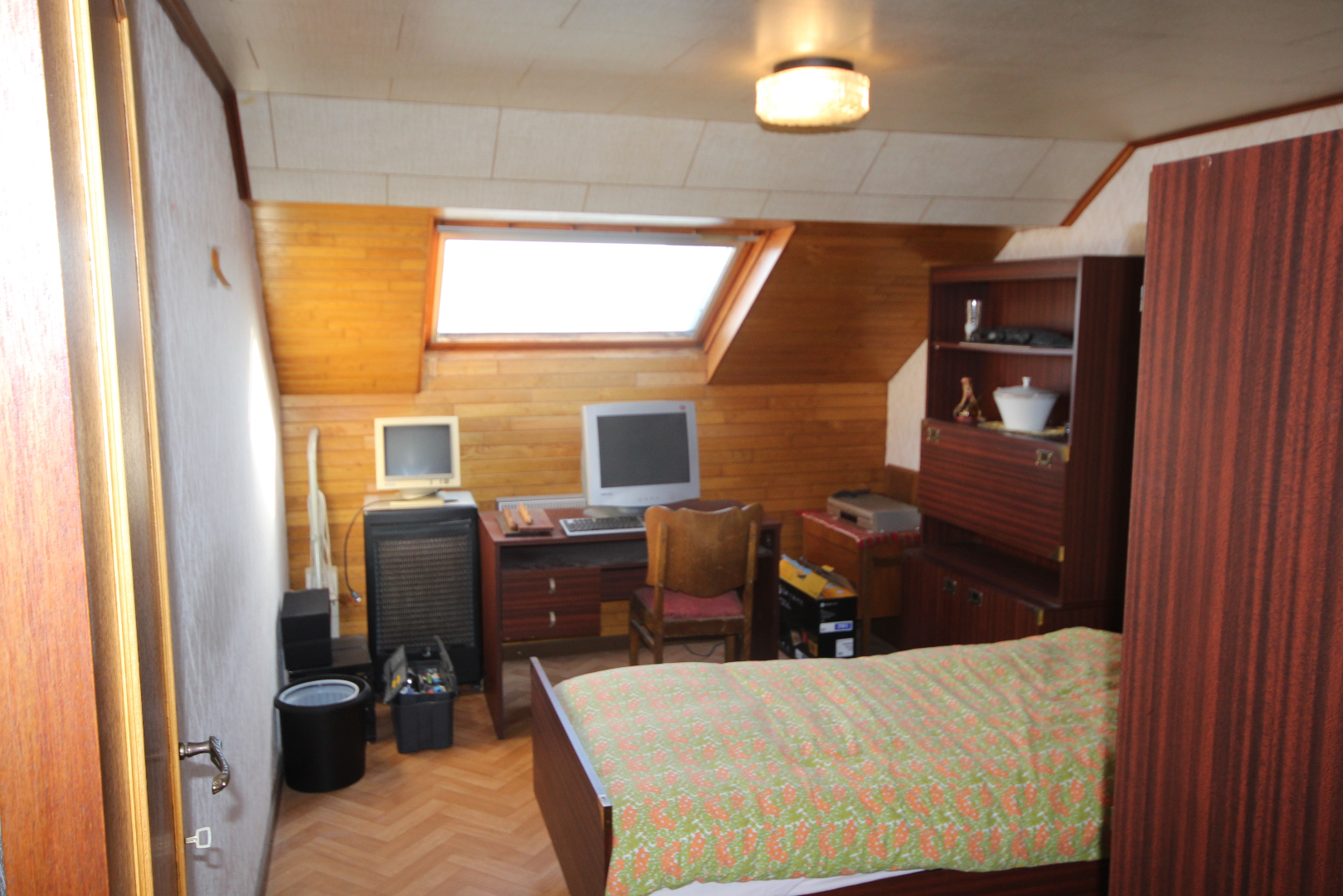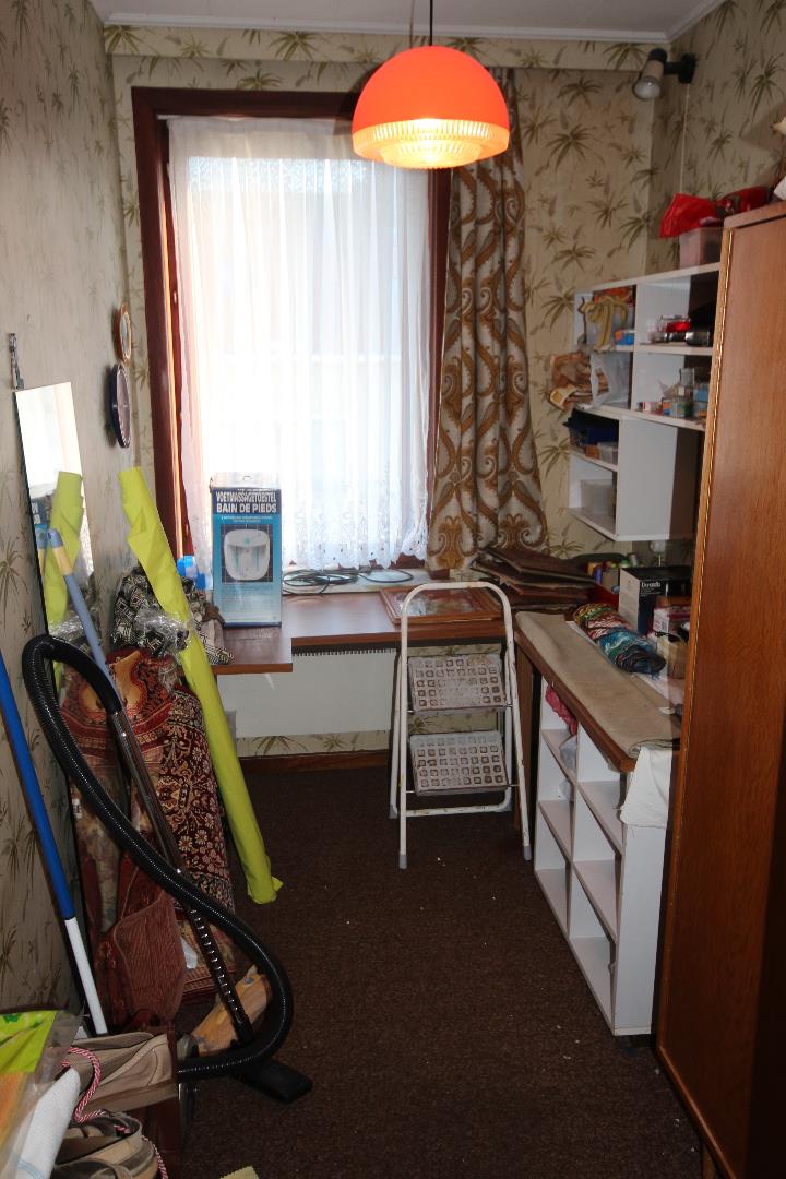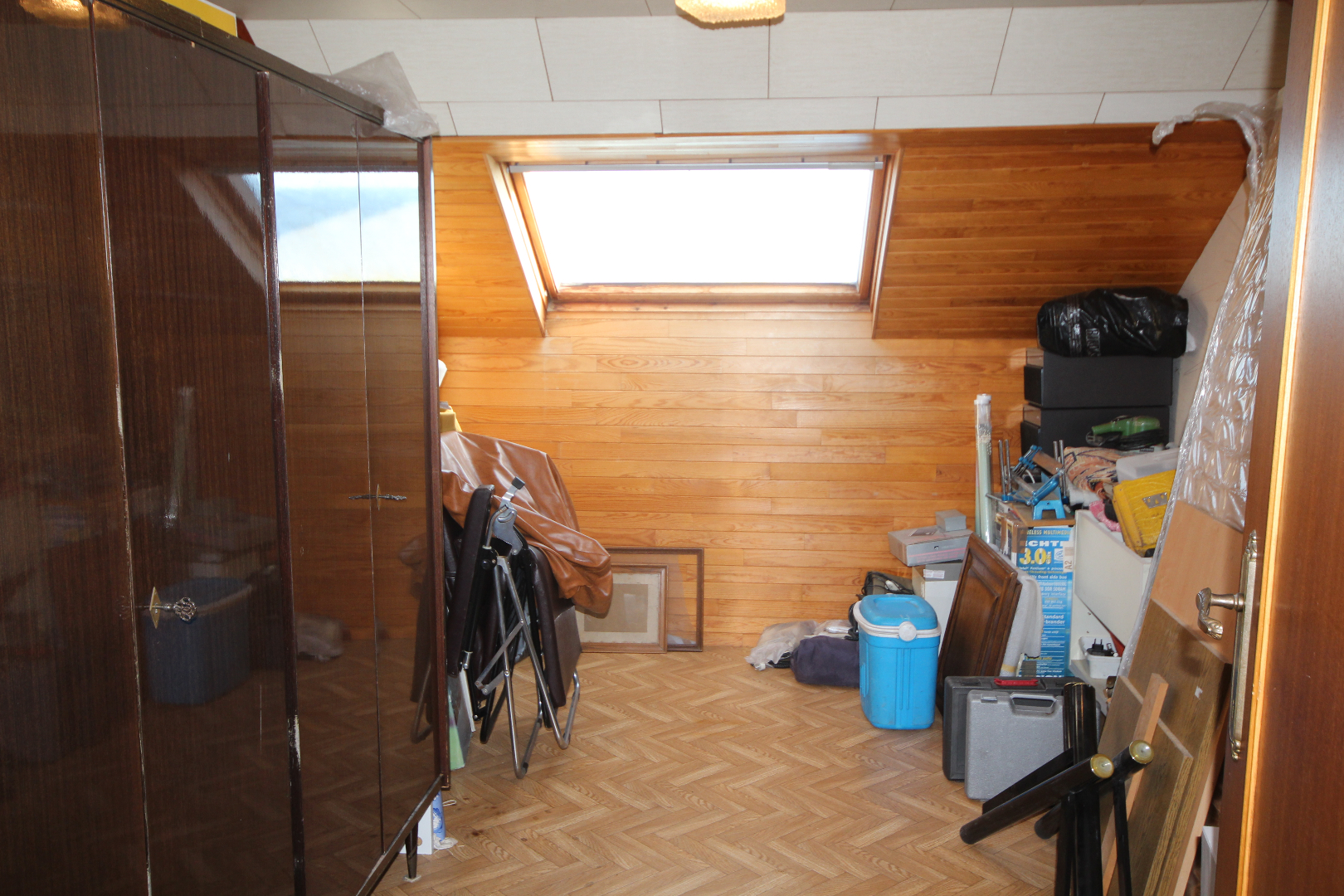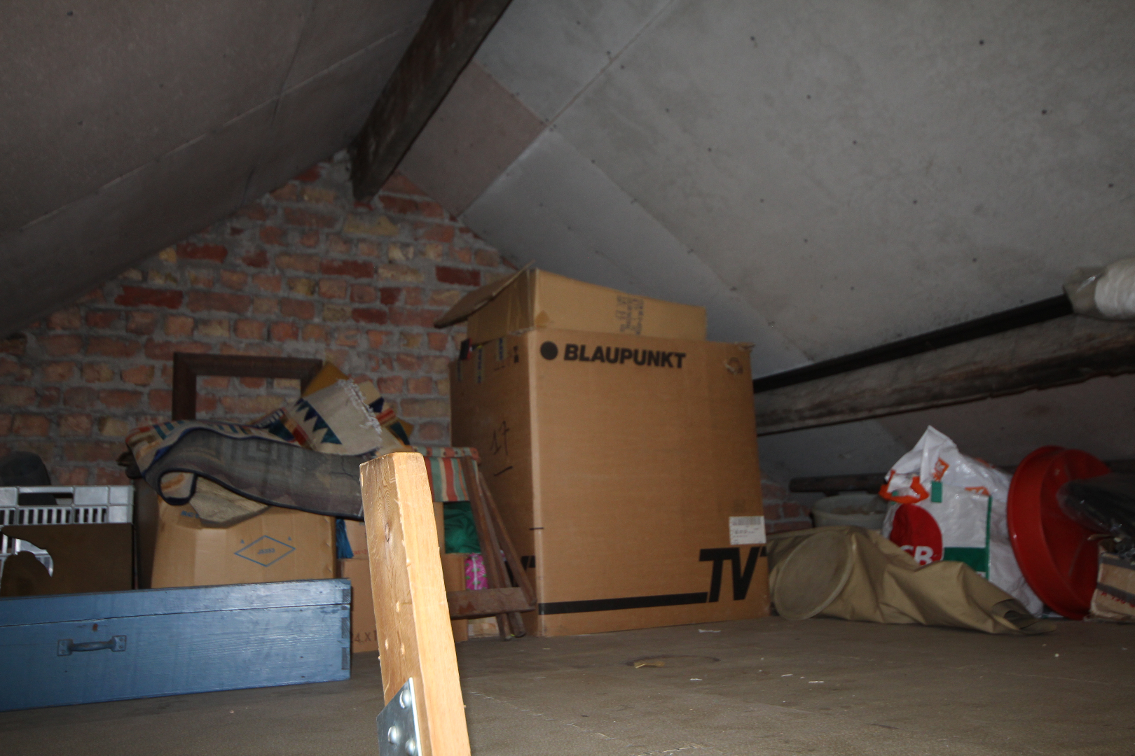 d) zolderverdiep: overloop,- voor-slaapkamer (4,08 x 2,80),- 2de voor-slaapkamer (4,08 x 2,84),- achter-slaapkamer (4 x 4,10) met standvenster + ingemaakte kasten en zolderluik,- en opperzolder.