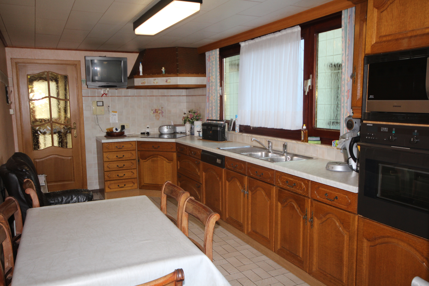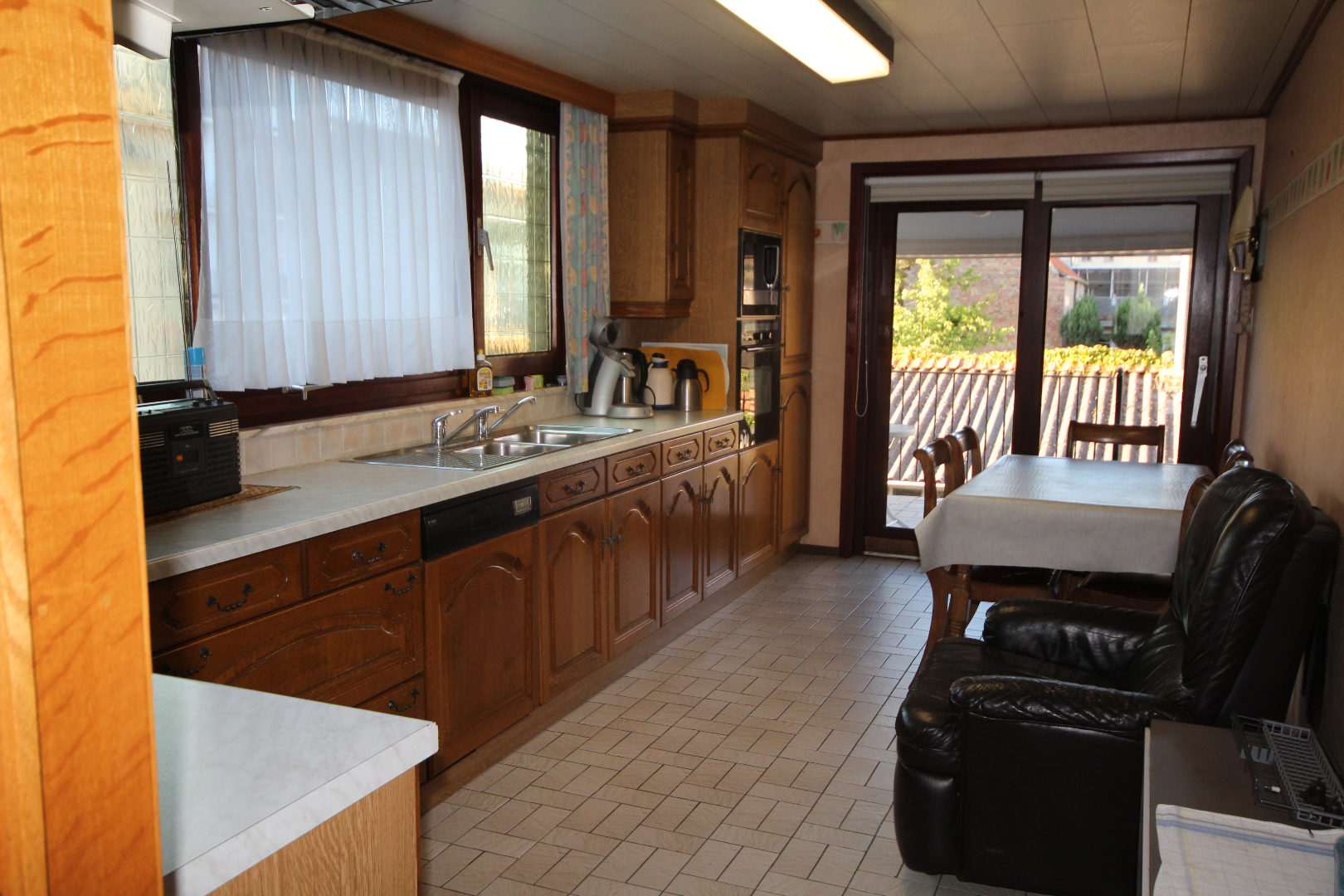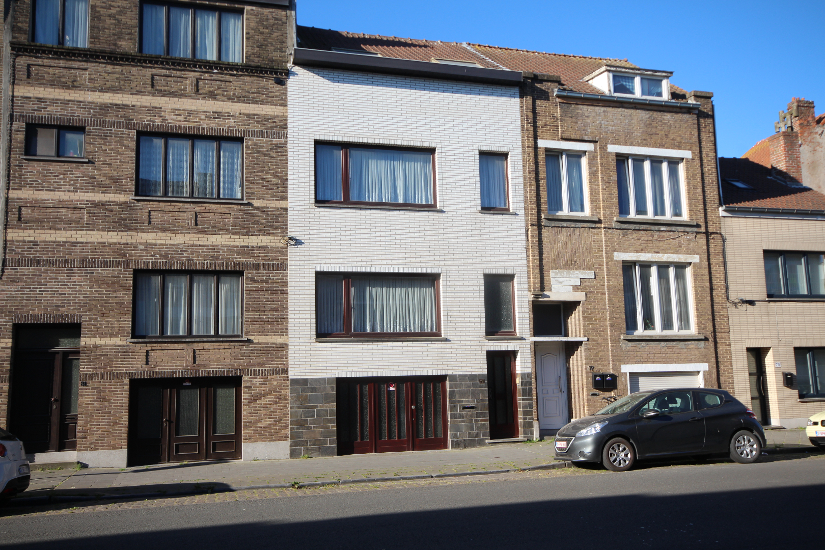 Groot en goed onderhouden rij-woonhuis, stevig en op traditionele wijze opgetrokken in 1930, op een perceel bouwgrond van 156 m² (breedte: 6 m. * diepte: 26 m). Bebouwde oppervlakte: 95 m², bewoonbare oppervlakte: 171 m², bruikbare vloeroppervlakte: 223 m², beschermd volume: 760 m³. Verzorgde voorgevel in een paramentmetselwerk van wit-geglazuurde brieken + onderste gedeelte in grijze leisteen. Uitgecementeerde achtergevels in baksteen. Deur- en vensterdorpels in harde blauwsteen. Draagvloeren: deels betongewelven, deels houten roostering. Verzorgd zadeldak + 2 dakvlakramen + standvenster, en onderdak in menuiserite + isolatie (rockwoll 6 cm.), belegd met platte rode Pottelbergse pannen (in gebakken aarde). Stevige kapconstructie in Oregon. Zinken dakgoten + bekleding in kunststof. Schuin pannendak boven de annexe. In de laatste decennia werd de woning grotendeels gerenoveerd. Verzorgd buitenschrijnwerk in Meranti + dubbele beglazing & PVC-rolluiken. Marmerachtige ceramieke tegelvloeren op de bel-étage en benedenverdieping. Laminaat-parket op de bovenste verdiepingen. Houten lambrisering in de hal, gang, en trapzaal. Beukenhouten trap. Vol-eiken binnendeuren op de bel-étage. Zonnig tuintje mogelijk, mits het slopen van de werkplaats a/d achterperceelgrens. Voorzien van stads- en regenwater (2 citernes), elektriciteit (dag-, nacht- en stiluurtarief), videofoon, teledistributie, telefoon, elektrische verwarming met accumulatiekachels & convectoren, en riolering.