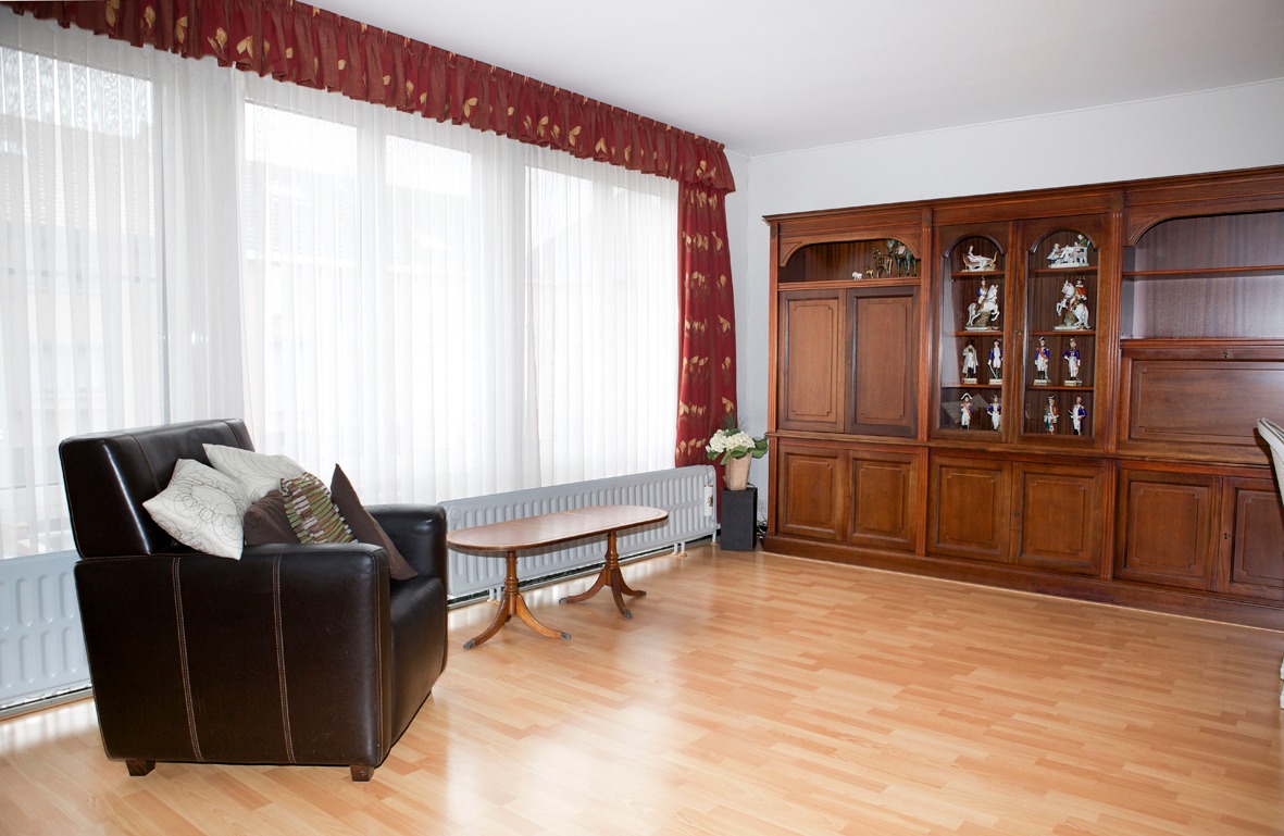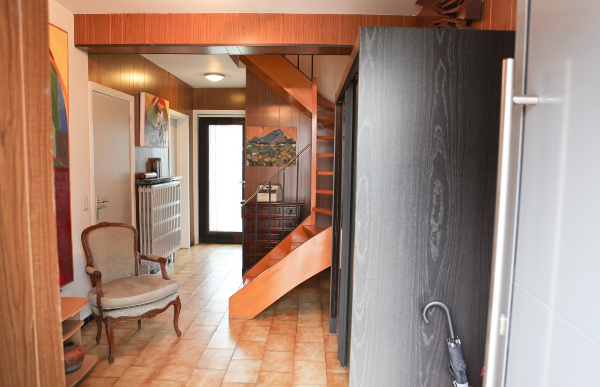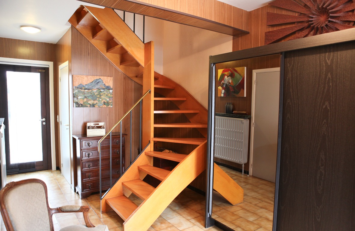 Verzorgde bel-etagewoning, stevig en op traditionele wijze gebouwd in 1970, op een perceel bouwgrond van 162 m². De woning heeft een benutbare oppervlakte van 142 m² en een volume van 431 m³. Verzorgde buitengevels, in een paramentsmetselwerk van lichtbruine genuanceerde gevelsteen. Deur- en vensterdorpels in harde blauwsteen. Nieuw buitenschrijnwerk in aluminium, voorzien van 3-voudige, geluidsdempende beglazing.Verzorgd zadeldak, belegd met grijze sneldakpannen (in gebakken aarde) met groot standvenster in het voordak en aan de achtergevel, het dak is geïsoleerd. Zinken hangdakgoten met PVC afgewerkt. Zonnige tuin met overdekt terras en tuinhuis. Tegelvloeren in de inkomhal, toilet en badkamer. Laminaat parket in de living en keuken. Vinylvloerbekleding in de slaapkamers. De woning zal vrij zijn bij het verlijden van de akte. Voorzien van stadswater, elektriciteit (enkel tarief), teledistributie, internet, telefoon, videofoon, riolering en centrale verwarming (mazout).