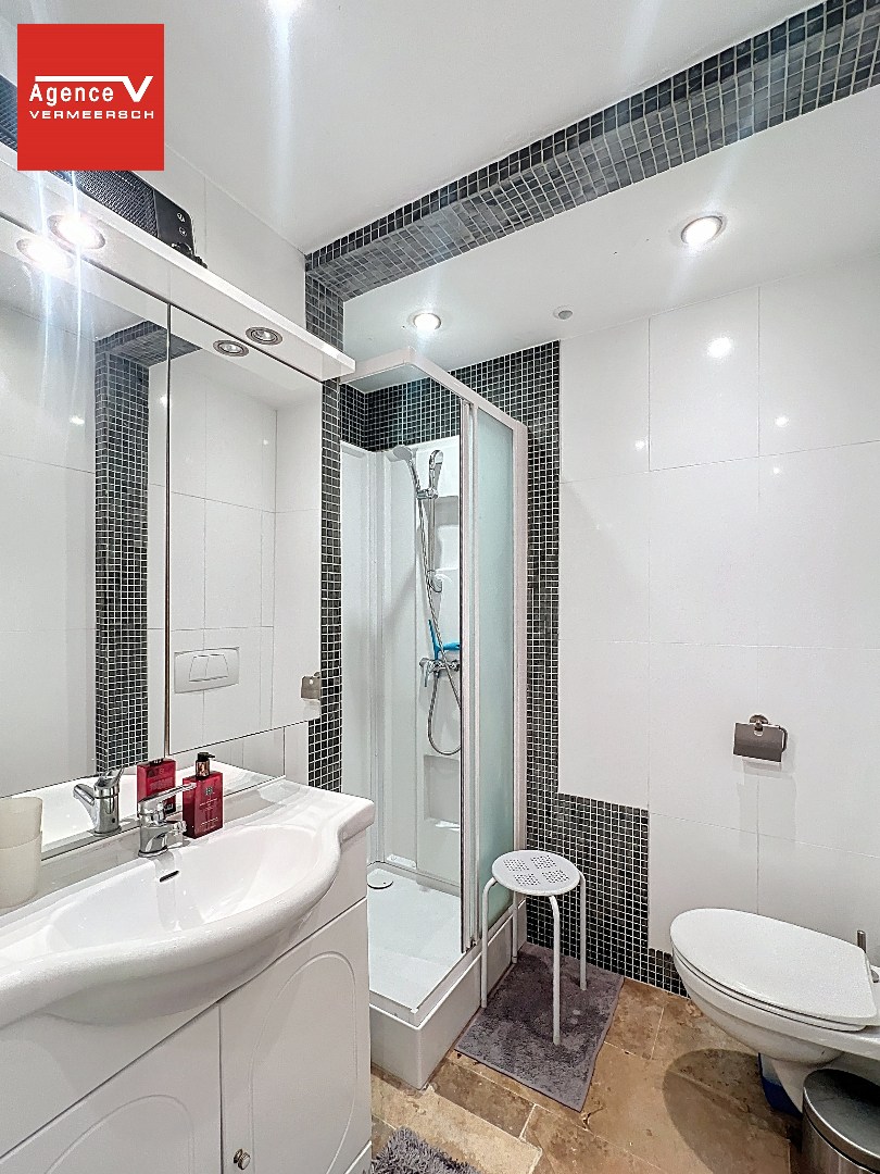 | Sanitair: | Badkamer met douche en lavabo en toilet, vernieuwd |