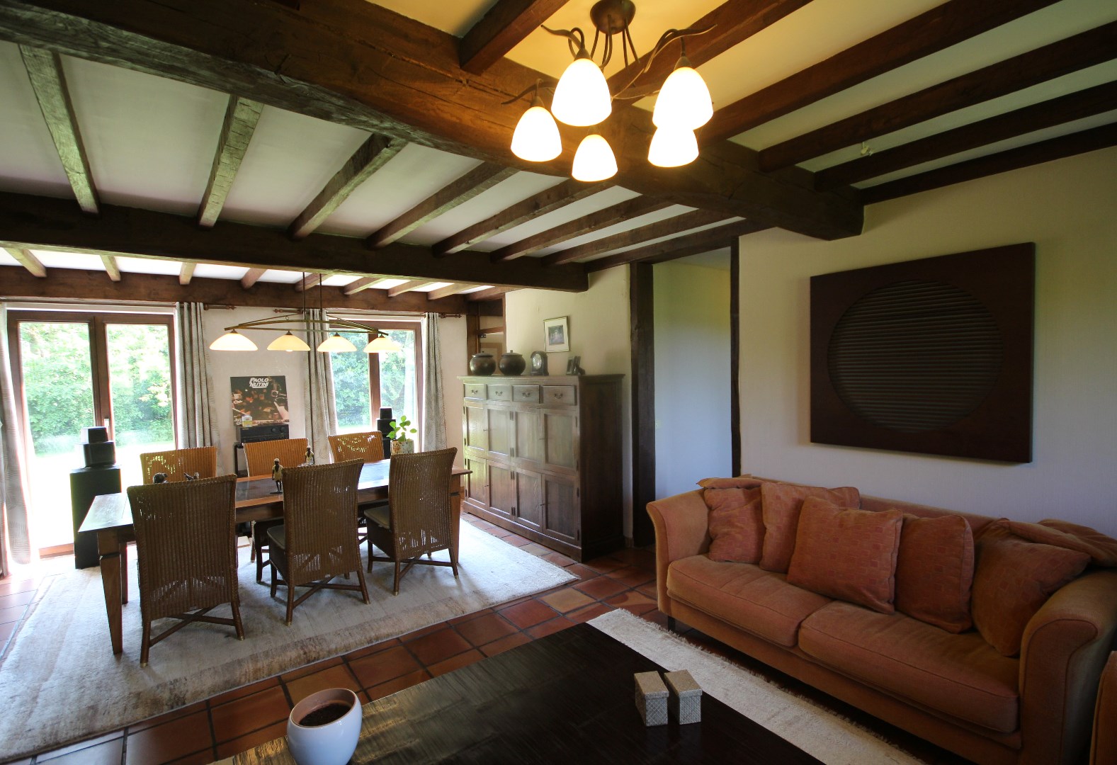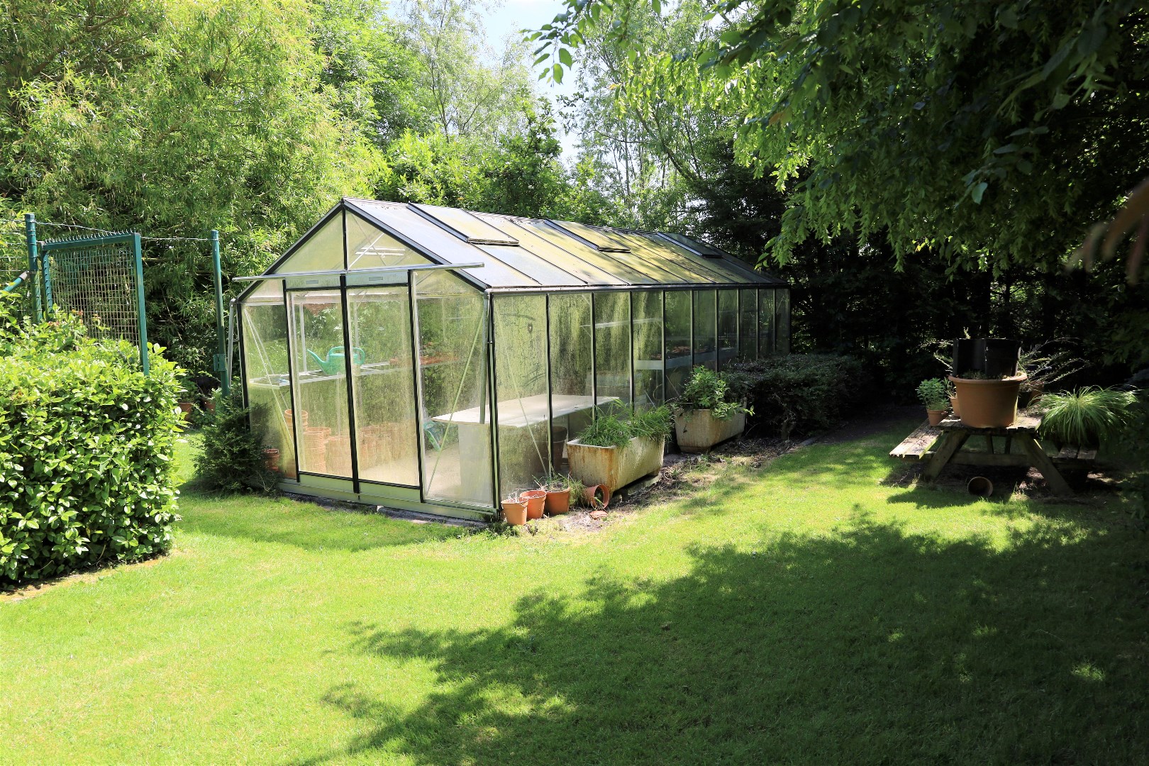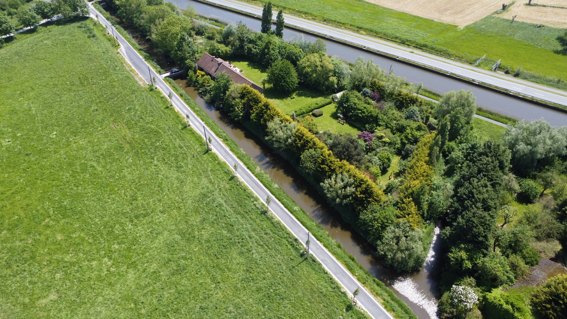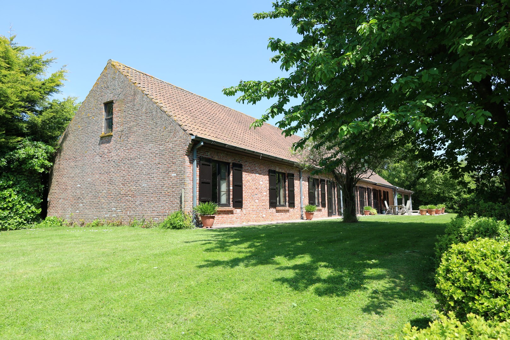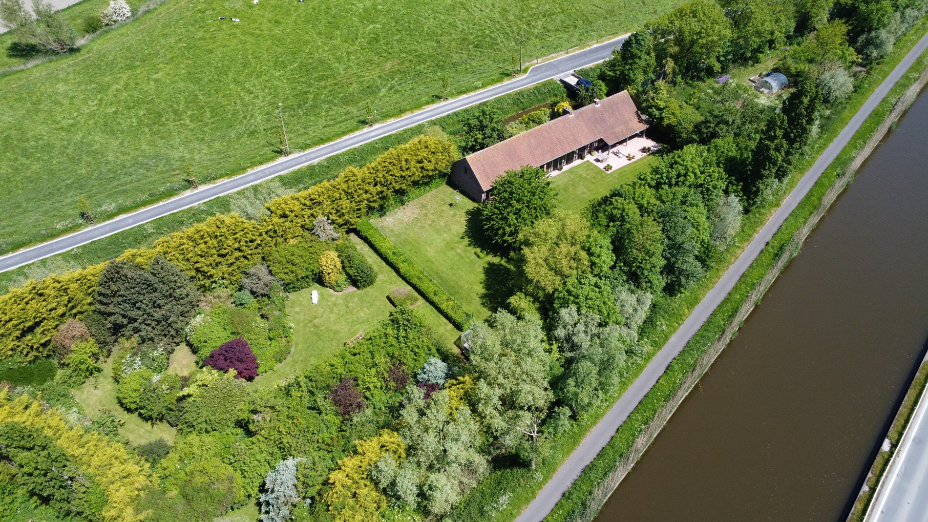 Zonnig georiënteerd landhuis (toegankelijk via een betonnen brug en smeedijzeren poort), gelegen in een ware “oase van rust en groen” in de Middenkustpolders, op een eilandje tussen de Plassendalevaart en het Kamerlings- en Doornhoekgeleed. Stevig en op traditionele wijze gebouwd in 1983 op een perceel grond van 1.865 m². Aan de westkant liggen nog 3 percelen weiland (3.090 m²) die nu één geheel vormen met de fermette en die omgevormd werd tot een weelderige park-tuin + serre (op betonnen vloerplaat, waar vroeger een paardenstal stond). Hierdoor heeft het eigendom een totale oppervlakte van 4.955 m², en een breedte a/d straatkant van 120 m. Palend achteraan aan een dijk-jaagpad langs de vaart (omheind met Bekaertdraad).