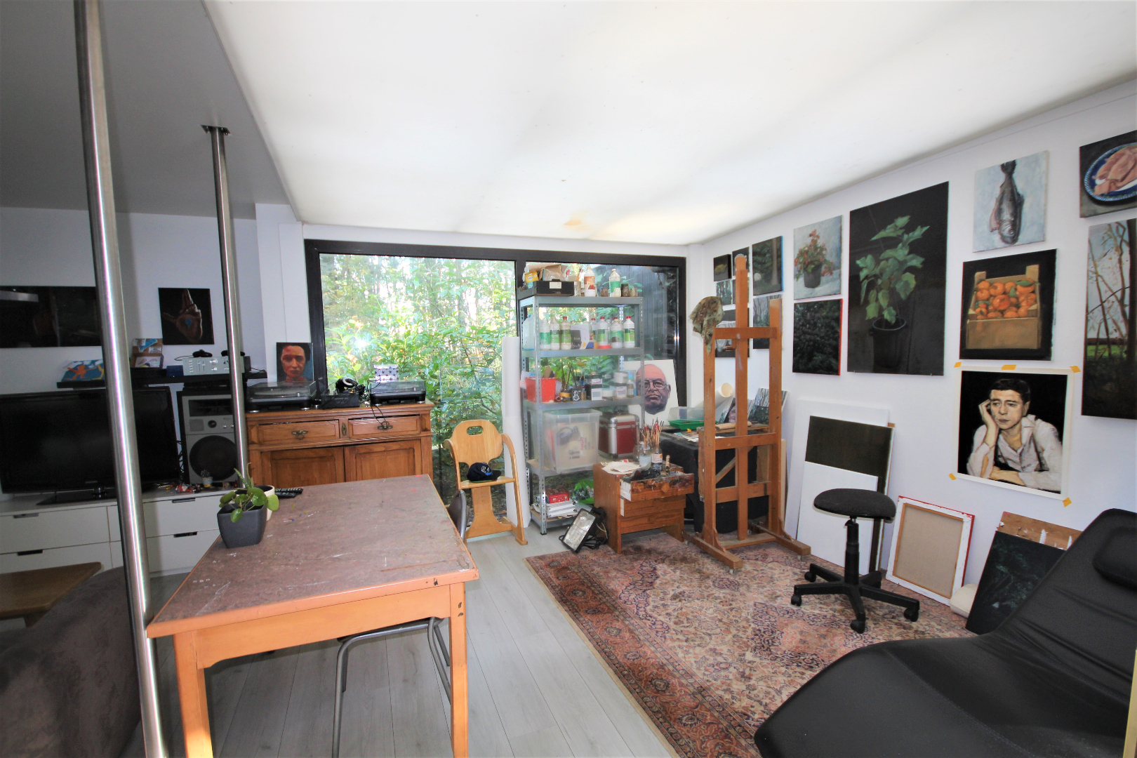 Alleenstaande bungalow, diep verscholen in het Stokerijbos, grenzend aan een dreef met eiken a/d beide kanten. De woning werd in 1967 opgetrokken in een houtconstructie op een perceel bosgrond van 2.000 m² (met een breedte van ca 42 m. en een diepte van ca 48 m.), en heeft een woonoppervlakte van 140 m². Gelegen in een zone voor residentieel, recreatief wonen. Voorheen was dit een verblijfsrecreatiegebied met weekendhuisjes. Dat wil zeggen dat men er kleinere woningen mocht bouwen, maar die enkel konden gebruikt worden als pure recreatie. Permanent wonen in een recreatiegebied is een godsgeschenk en wordt sinds 30/06/2011 toegestaan. Het is hier echt tof wonen, de rust kunnen opzoeken na een stresserende dag is gewoon fantastisch. Je snuift gezonde boslucht in, en je geniet van de natuur. Je ziet en hoort hier van alles. De Groene Specht heeft hier zijn thuishaven gevonden, er lopen hier egeltjes rond en eekhoorntjes tieren hier weelderig. Allemaal beestjes die je anders nog maar zelden ziet ! Hier leven en wonen ze vredig samen met de gelukkige bewoners van het bos. De inrichting van de woning werd grotendeels gerenoveerd en vernieuwd (w.o. keuken, badkamer, alle waterleidingen & afvoeren, elektrische installatie, e.d.m.). Spanplafonds + inbouwspotjes. Nieuwe laminaatvloeren. Voorzien van elektriciteit, stads-& putwater, en internet. Groot zonneterras (ca 176 m²) in gladde beton (zuid-westgericht).
