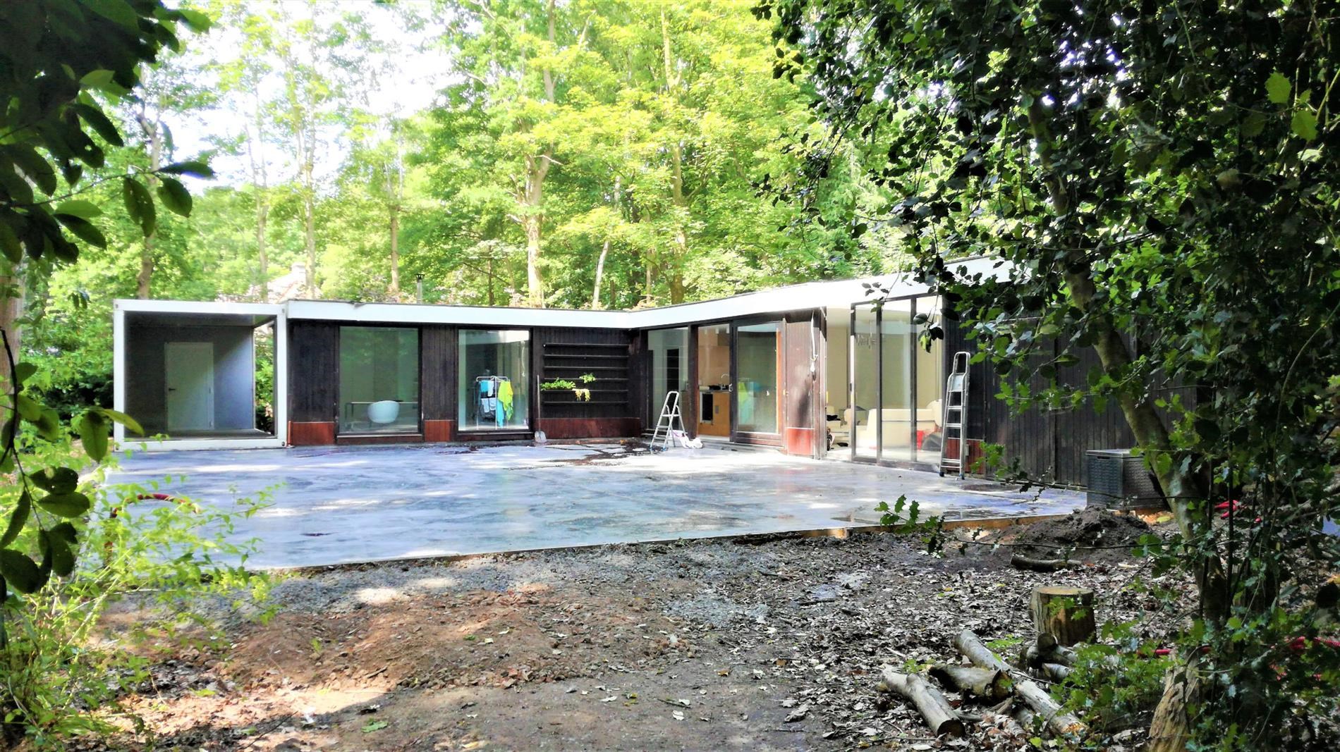 Alleenstaande bungalow, diep verscholen in het Stokerijbos, grenzend aan een dreef met eiken a/d beide kanten. De woning werd in 1967 opgetrokken in een houtconstructie op een perceel bosgrond van 2.000 m² (met een breedte van ca 42 m. en een diepte van ca 48 m.), en heeft een woonoppervlakte van 140 m². Gelegen in een zone voor residentieel, recreatief wonen. Voorheen was dit een verblijfsrecreatiegebied met weekendhuisjes. Dat wil zeggen dat men er kleinere woningen mocht bouwen, maar die enkel konden gebruikt worden als pure recreatie. Permanent wonen in een recreatiegebied is een godsgeschenk en wordt sinds 30/06/2011 toegestaan. Het is hier echt tof wonen, de rust kunnen opzoeken na een stresserende dag is gewoon fantastisch. Je snuift gezonde boslucht in, en je geniet van de natuur. Je ziet en hoort hier van alles. De Groene Specht heeft hier zijn thuishaven gevonden, er lopen hier egeltjes rond en eekhoorntjes tieren hier weelderig. Allemaal beestjes die je anders nog maar zelden ziet ! Hier leven en wonen ze vredig samen met de gelukkige bewoners van het bos. De inrichting van de woning werd grotendeels gerenoveerd en vernieuwd (w.o. keuken, badkamer, alle waterleidingen & afvoeren, elektrische installatie, e.d.m.). Spanplafonds + inbouwspotjes. Nieuwe laminaatvloeren. Voorzien van elektriciteit, stads-& putwater, en internet. Groot zonneterras (ca 176 m²) in gladde beton (zuid-westgericht).