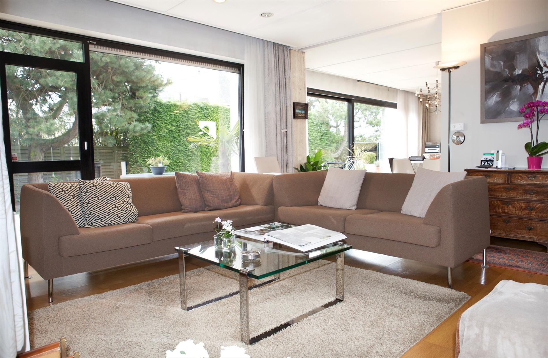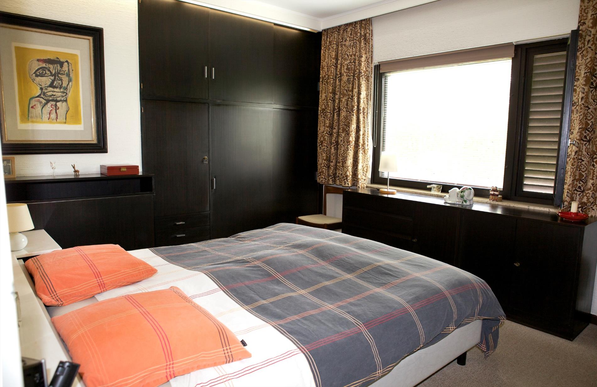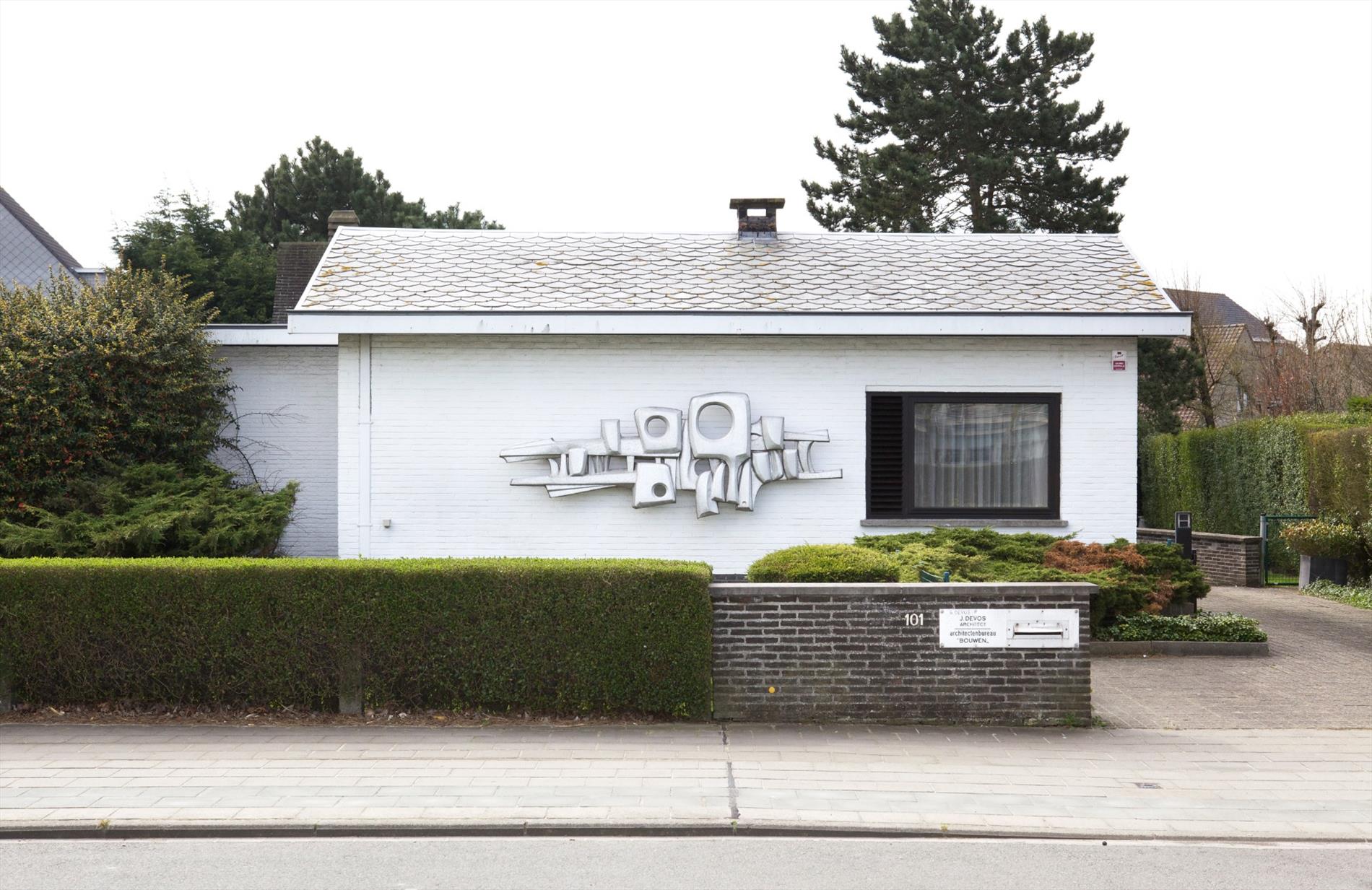 Riante en luchtige bungalowwoning (open bebouwing), waarvan alle leefvertrekken en praktijkruimtes op één niveau liggen, stevig en op traditionele wijze gebouwd in 1962, op een perceel bouwgrond van 902 m² met een breedte langs de Elisabethlaan van 19,85 m * 38 m langs de Eigen-Haardstraat en 25,30 m langs de Aalscholverstraat. Bebouwde oppervlakte : 234,24 m² * kelderruimte (met garage inbegrepen) : 111,54 m² * kruipkelders: 130,51 m² . Verzorgde buitengevels, uitgevoerd in wit geschilderde baksteen. De voorgevel is voorzien van een prachtig kunstwerk van Hubert Minnebo. Vloerplaat in gewapend beton en deels in Ploegsteert-gewelven. Licht hellend geasfalteerd dak (99,10 m²) en hellende zadel-daken (144 m²), belegd met zwarte kunstleien. Dakconstructie in oregon (+ onderdakplaten in menuiserith). Buitenschrijnwerk in Afzelia-hout (ramen voorzien van dubbele beglazing). Voleiken parket in de woonkamer. Marmeren tegenvloer in de inkomhal en badkamer. Vasttapijt in de slaapkamers en kantoorruimtes. Iedere slaapkamer is voorzien van een aanbouwkast met ingewerkte lavabo en van extra convectoren. De master-bedroom is voorzien van aanbouw-dressingskasten. Sierlijk aangelegde tuin, met verzorgd gazon + diverse struiken en boompjes (zonovergoten achtertuin). De bungalow (en in het bijzonder het privé-gedeelte) geniet van een zéér gunstige zonoriëntatie. Er is een aparte inkomhal voor het praktijkgedeelte. Voorzien van stads- en regenwater, elektriciteit (dag- en nachttarief), teledistributie, riolering en centrale verwarming (d.m.v. generator op aardgas).
