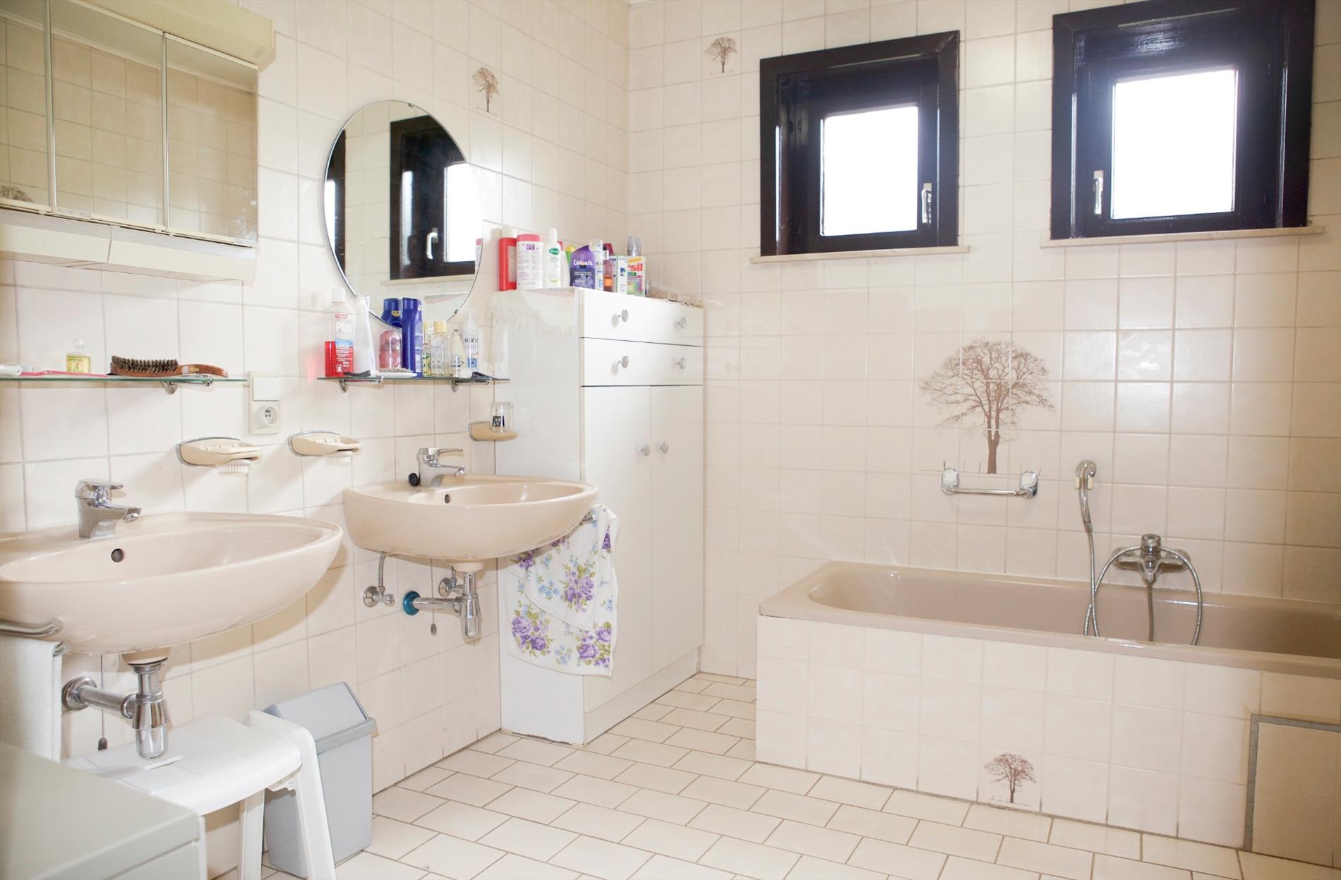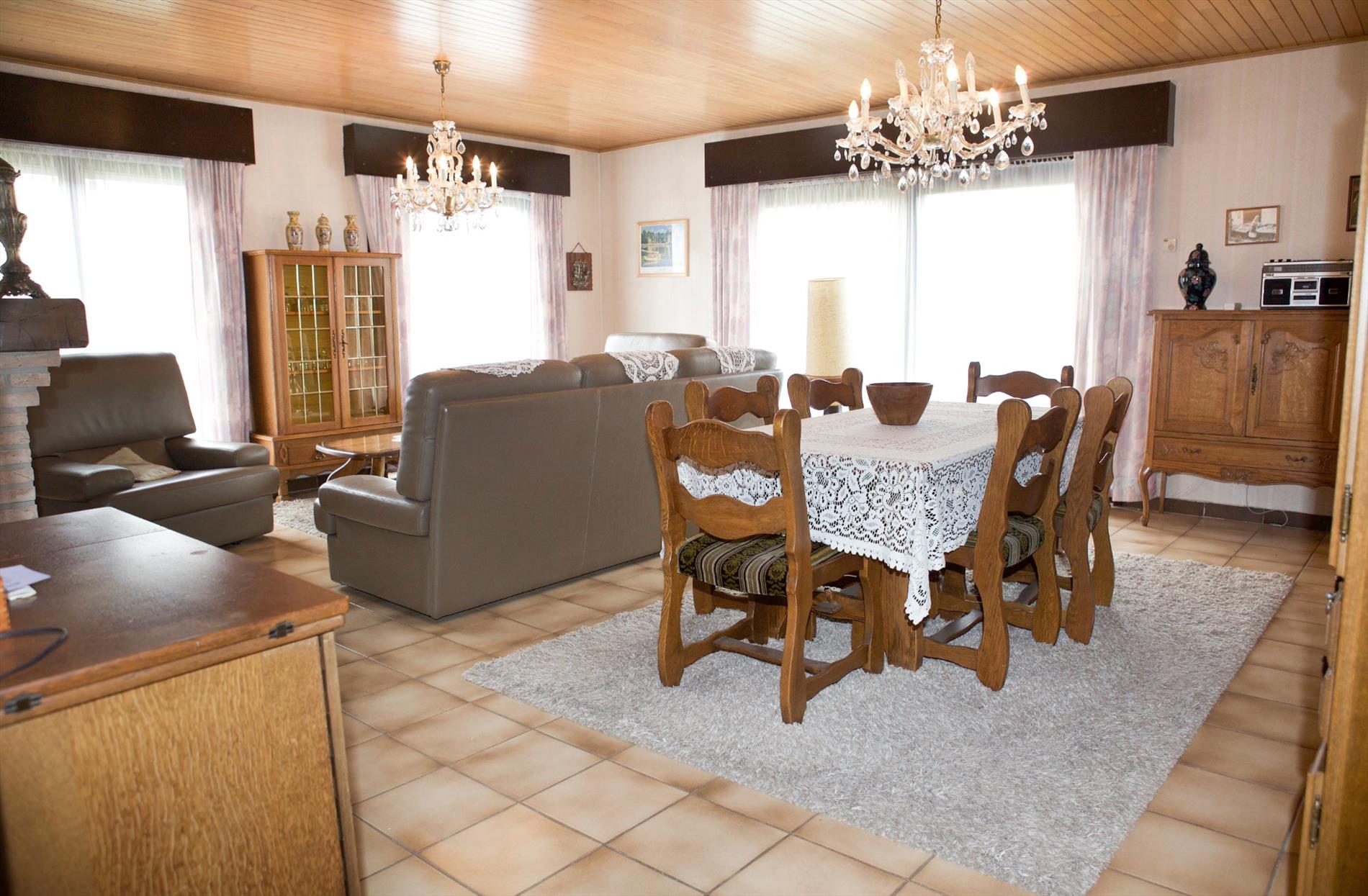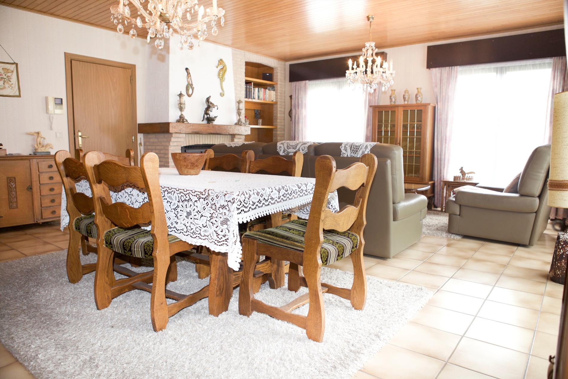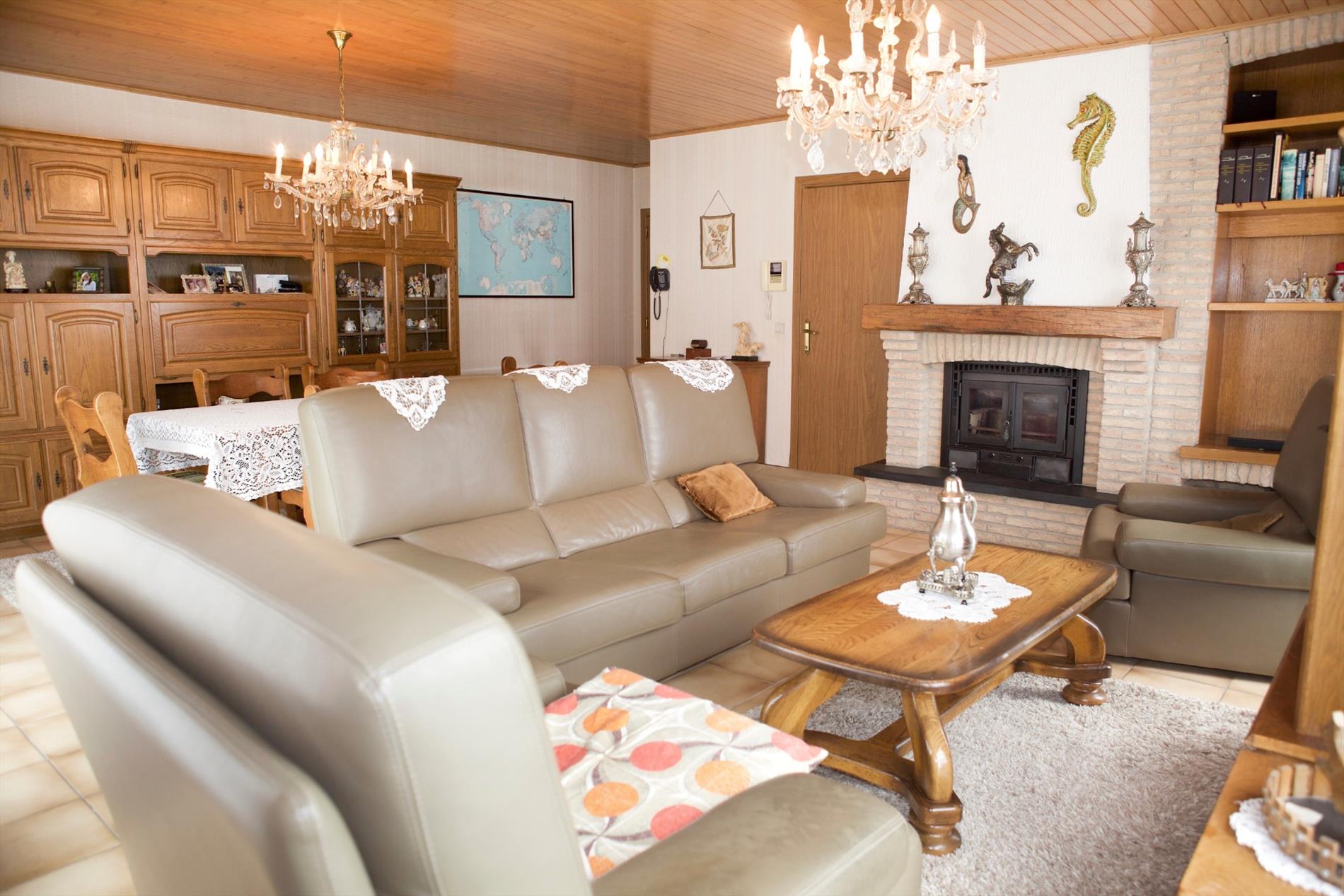 Verzorgde bungalowwoning, stevig en op traditionele wijze gebouwd, met een perceelbreedte van 20 m op diepte: 35 m en een gevelbreedte van 12 m op diepte: 17 m. De woning heeft een bebouwde oppervlakte van 170 m², een benutbare oppervlakte van 173 m² en een volume van 663 m³. Stevige funderingsbalken, gesteund op 14 palen. Vloerplaat in gewapend beton van 12 cm dik, en roostering op de verdieping voorzien van 12 cm rotswol isolatie. Vloerisolatie voorzien van 6 cm polystereen, spouwisolatie van 5 cm rotswol. Verzorgde buitengevels, in een paramentsmetselwerk van lichtbruin genuanceerde gevelsteen + isolatie. Deur- en vensterdorpels in harde blauwsteen. Verzorgd buitenschrijnwerk in hardhout, voorzien van dubbele beglazing met PVC rolluiken. Verzorgd zadeldak, met zwarte kunstleien dakpannen. Kroonlijsten in kunststof. Zinken dakgoten en dito afleidingen. Oprit, voetpad en terrassen in tegels. Zonnige tuin. Tegelvloeren in de meeste ruimtes. Laminaat in 2 slaapkamers. Vinyl op de zolderverdieping. De garage is afgeslagen met PVC wandbekleding en faience. De meeste plafonds zijn voorzien van houten of PVC plafondbekleding. Voorzien van stad -en regenwater (citerne 10.000 L. * wasmachine en toilet), beerput van 6 m³, elektriciteit (dag, nacht –en stilurentarief), distributie, digitale tv, internet, telefoon, videofoon, riolering, centrale verwarming met spaarkachels en directe verwarming), en bijverwarming met allesbrander. Warm water d.m.v. elektrische boiler.