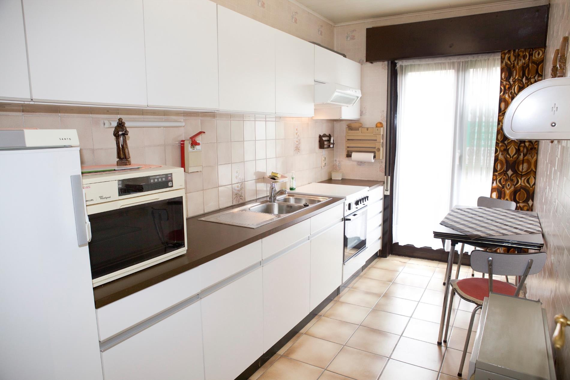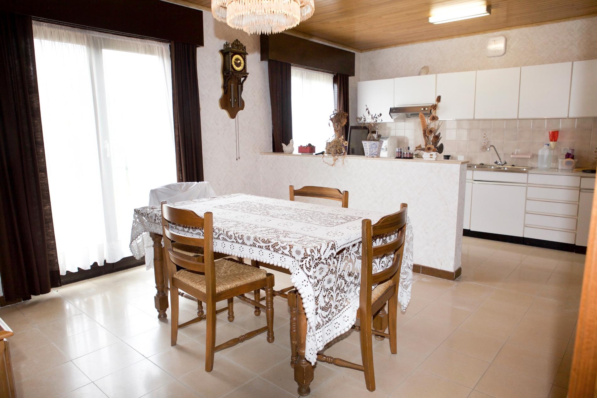 a) gelijkvloers : hall met vestiaire,- toilet met lavabo (faience)- berging,- woonkamer (37,23 m²) met schouw en inbouw cassette, videofoon en schuifraam,- keuken (4 x 2),voorzien van koelkast, elektrische kookplaat, dampkap, dubbele afwasbak en terrasdeur (faience),- berging,- nachthall,- badkamer (7,55 m²) met ligbad, toilet en 2 lavabo’s (faience),-garage (5,10 x 3,50) met automatische sectionaalpoort, 2 zekeringskasten en luifel,- wasplaats (2,80 x 2) met elektrische boiler, afgietbak en achterdeur (faience),- achter-slaapkamer (3,90 x 3,80),- studio (of slaapkamer * 4x 3,95) met schuifraam en keuken (4 x 2) voorzien van elektrische kookfornuis, dampkap, dubbele spoelbak (faience),- zij-slaapkamer (4 x 3,70);