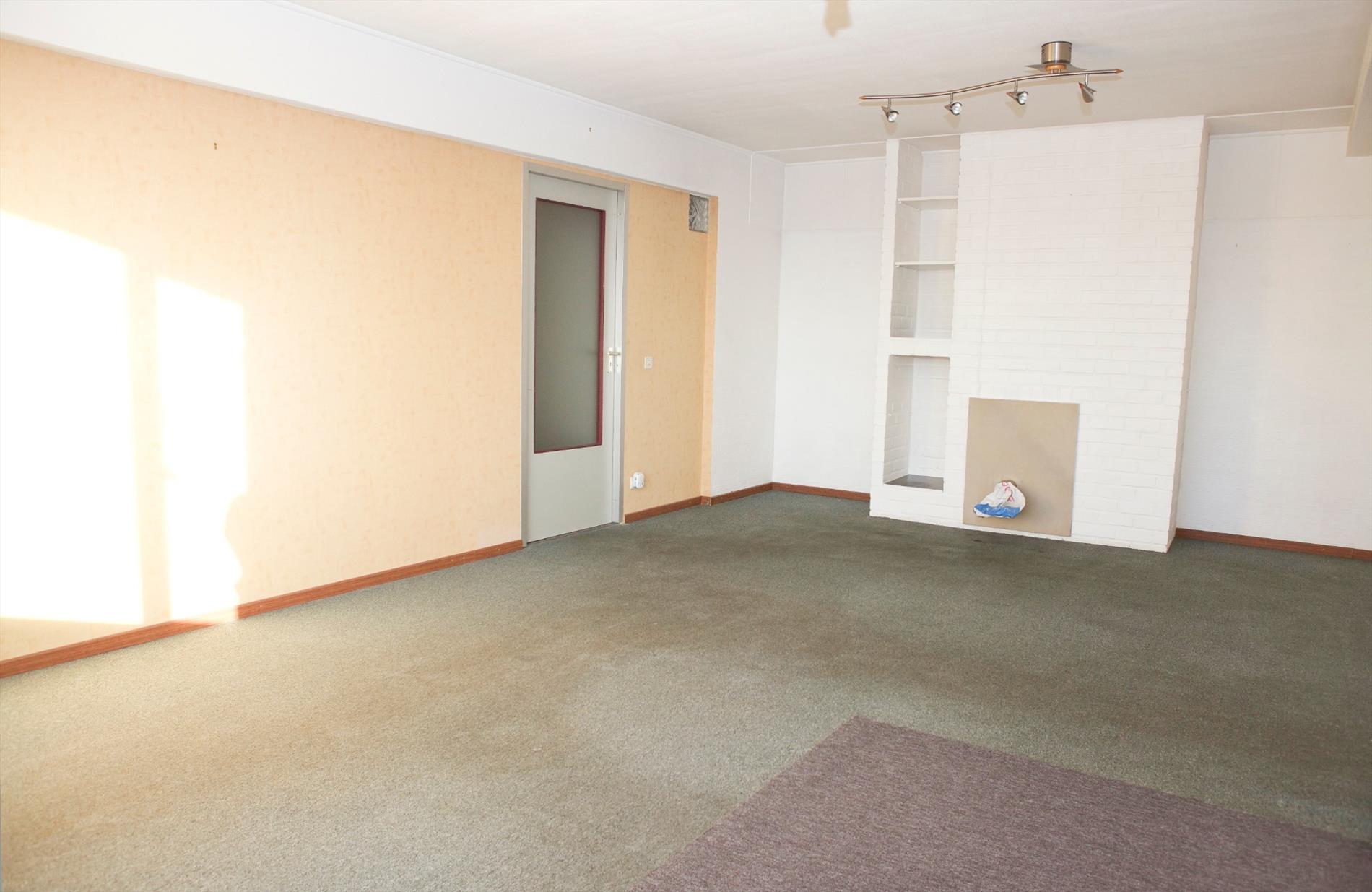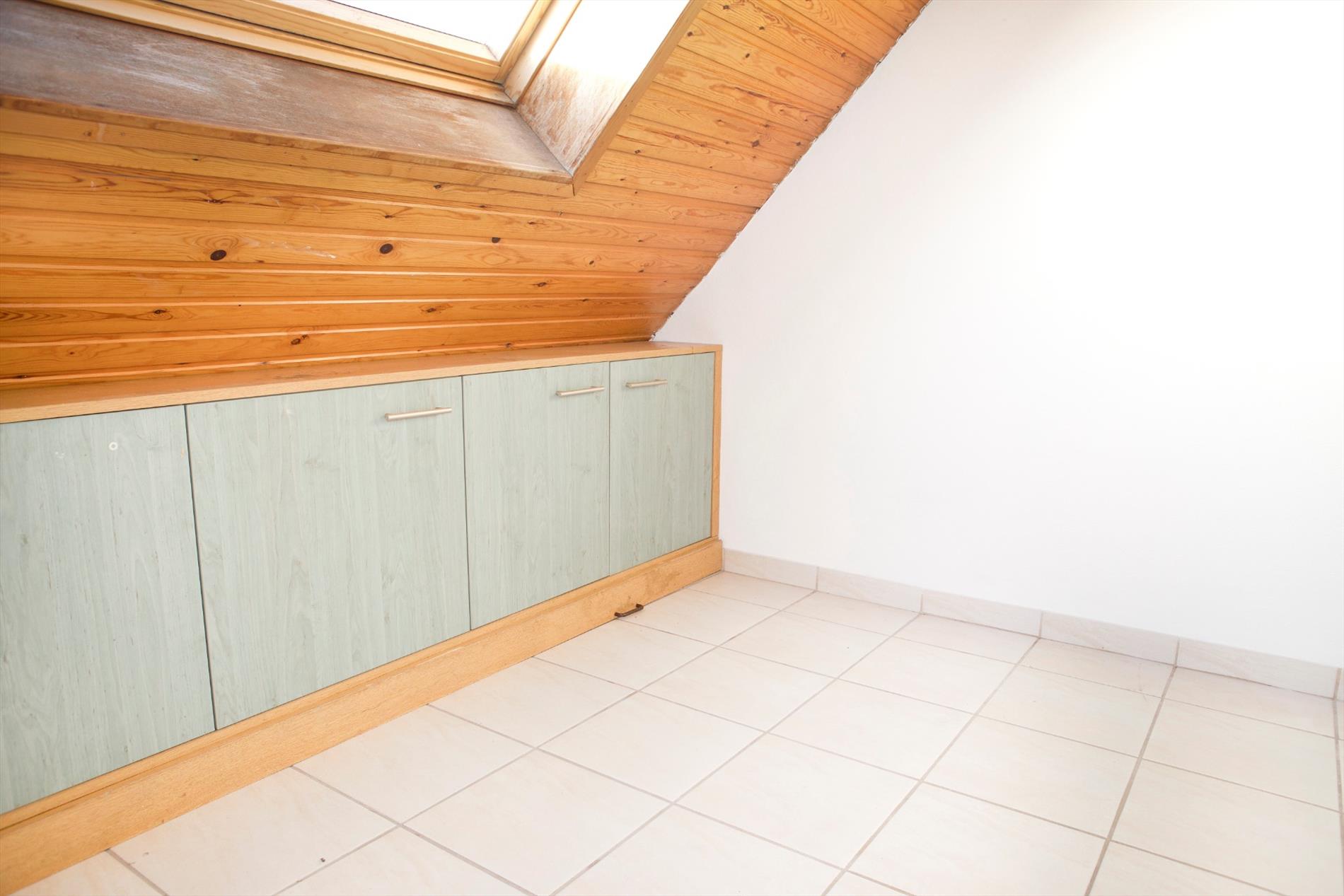 inkomhall + parlofoon,- living (26,50 m²) met schouw + aansluiting voor pelletkachel,- open -keuken (2,33 x 2,32) met keukenblok + ingebouwde koelkast, keramische kookplaat en dampkap ; * 2de keukenblok met onderkasten + inox afwasbak,- berging met lichtkoepel en vaatwasmachine,- kleine slaapkamer (2,30 x 1,86) + veluxraam,- badkamer met wasmeubel + lavabo, ligbad en wasmachine (marmerachtige faience),- 2de slaapkamer (3,73 x 3,17),- 3de slaapkamer (3,73 x 2,55),- en toilet met elektrische boiler (marmeren vloer).