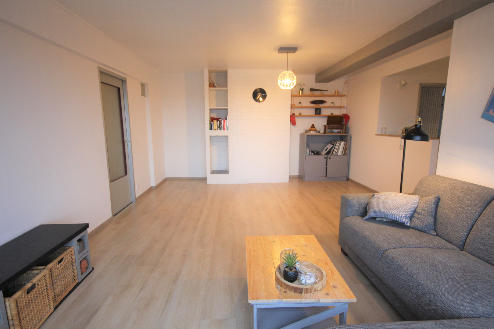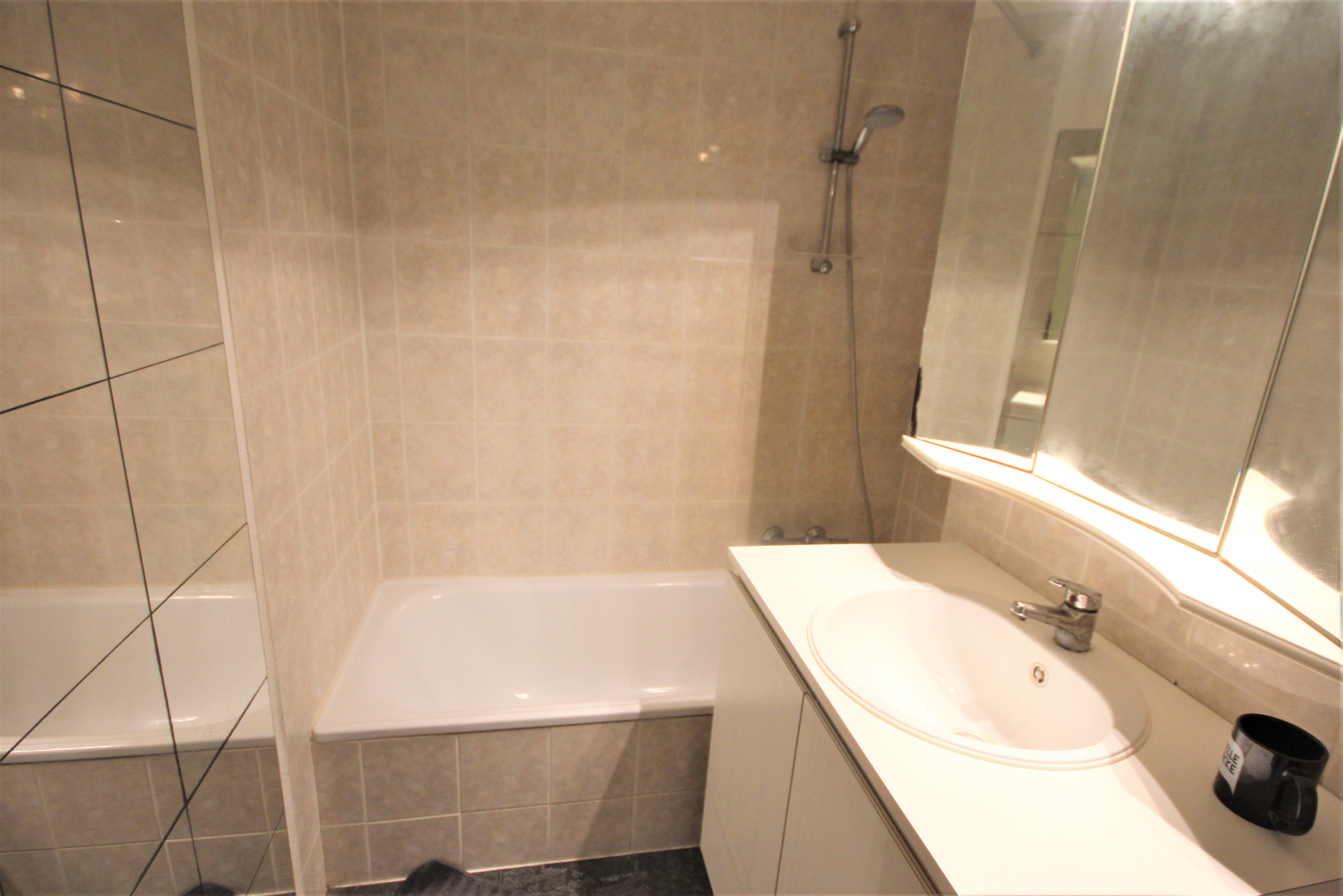 Het appartement heeft een bruikbare vloeroppervlakte van 83 m² met een beschermd volume van 239 m³, en is onmiddellijk vrij van gebruik. De elektrische installatie alsook de centrale verwarming werden vernieuwd. Marmeren vloeren in de hall-gang, toilet en badkamer. Ceramieke tegelvloeren in de keuken, berging, en kinderkamer. Laminaat parket in de living en slaapkamers. Marmeren venstertabletten. Mooi open en verzicht vanuit de living en slaapkamers. Voorzien van parlofoon, stadswater, elektriciteit (vernieuwd), teledistributie, telefoon, aardgas, en van een collectieve verwarmings- en warmwaterdistributie (vernieuwde generator op aardgas). Algemene onkosten met inbegrip van verwarmingskosten = € 125/m. (reservekapitaal = € 26.500).