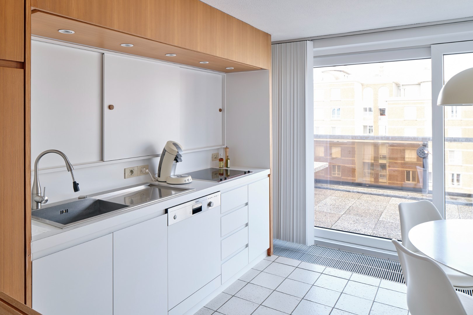 De exclusieve Obumex-keuken vormt het kloppende hart van de woning en staat garant voor maximale functionaliteit, verfijnd design en absolute topkwaliteit. De keuken sluit mooi aan op de eetruimte, die een intieme setting biedt met uitzicht op het grote terras — ideaal om te genieten van diners met zicht over de stad.
