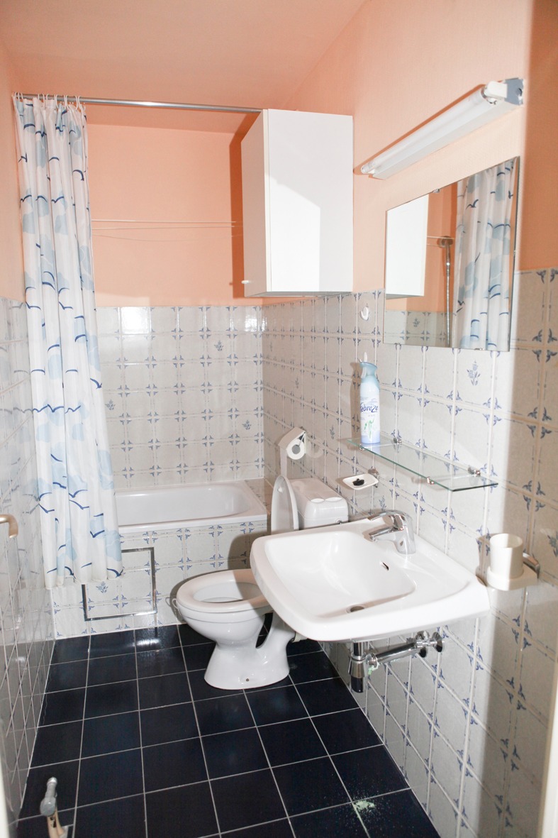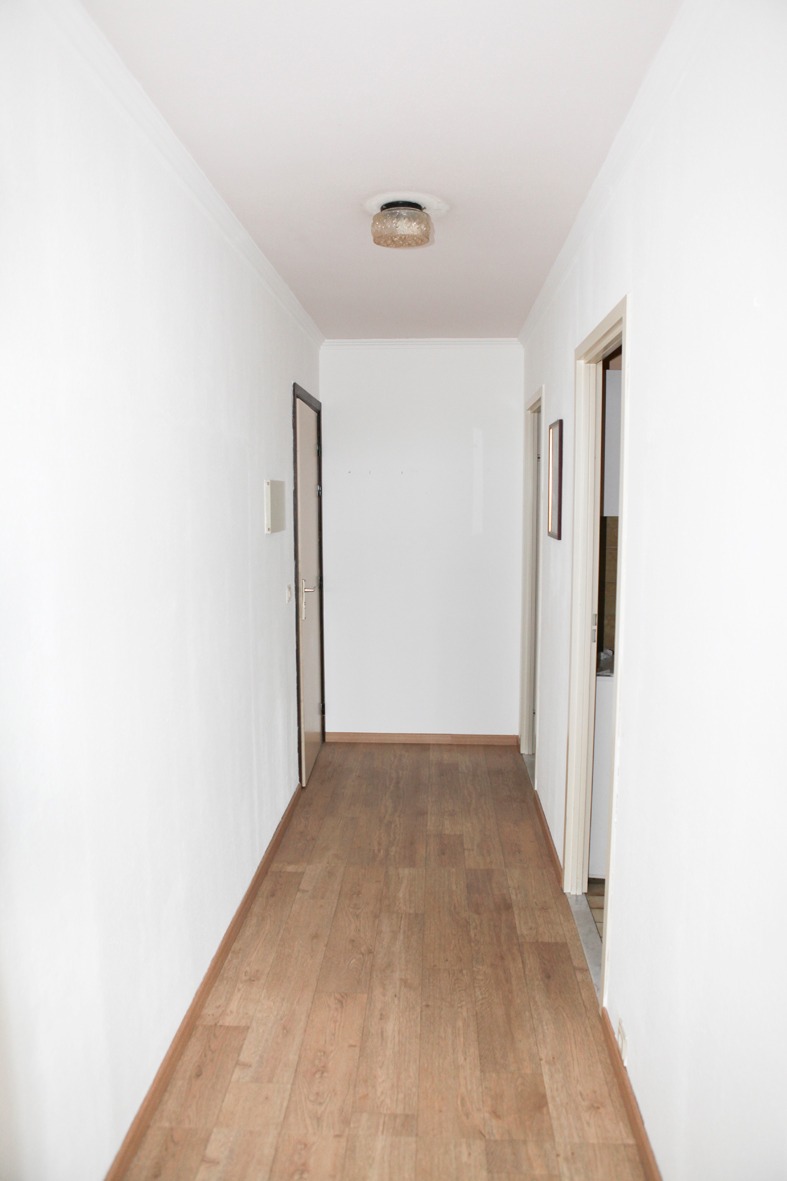 Inkomhal,- living (26 m²) met wandkast + uitklapbaar 2-persoonsbed,- zonneterras (4,17 x 1,66) in silexsteen,- keuken met ingemaakte kasten en keukenblok voorzien van onder- en bovenkasten (in witte meubelplaat) + ingebouwde inox afwasbak, koelkast, elektrisch kookfornuis, en inox dampkap (licht bruine tegelvloer en faience),- badkamer met zitbad, lavabo en wc (tegelvloer & faience) ;