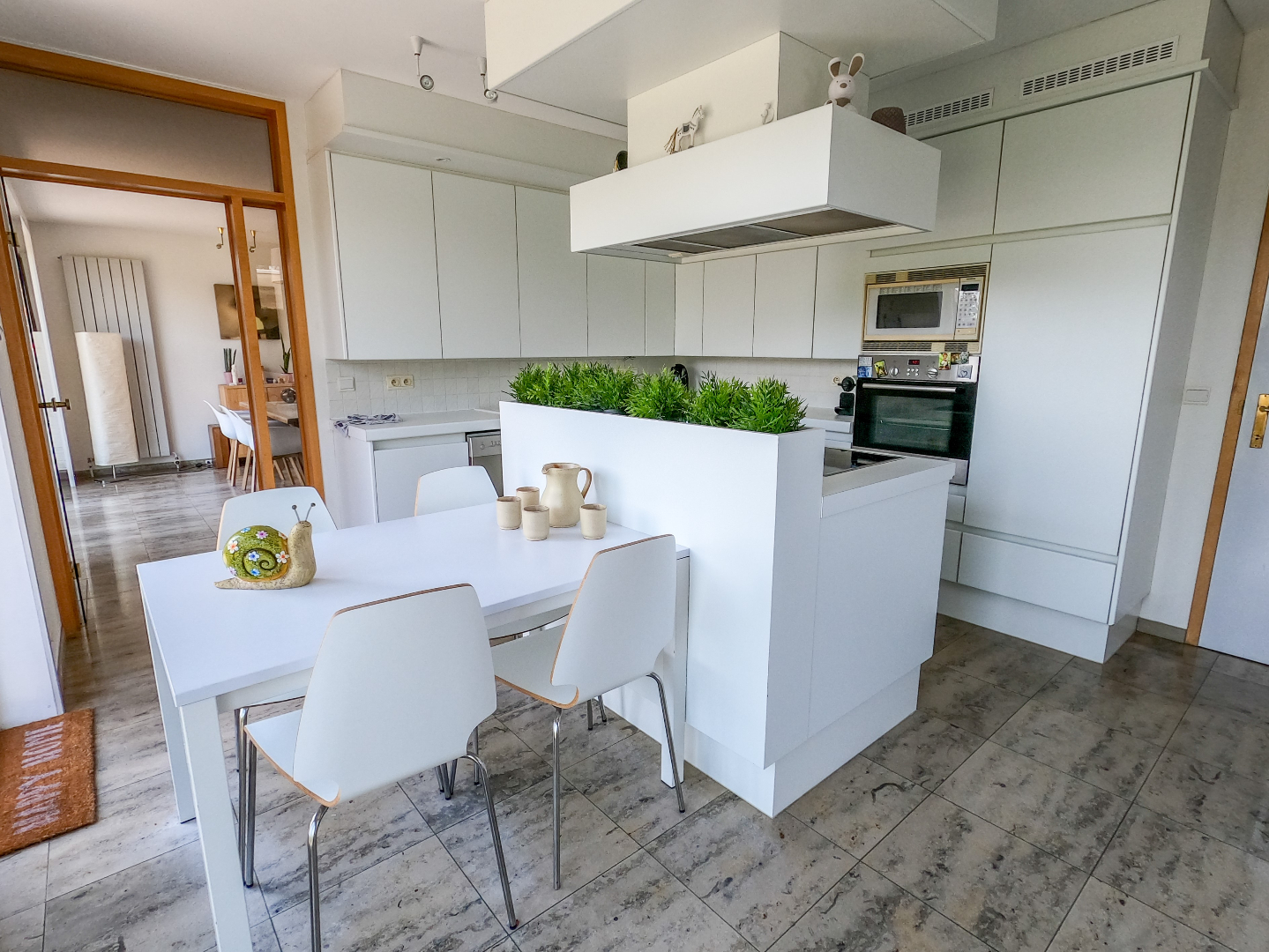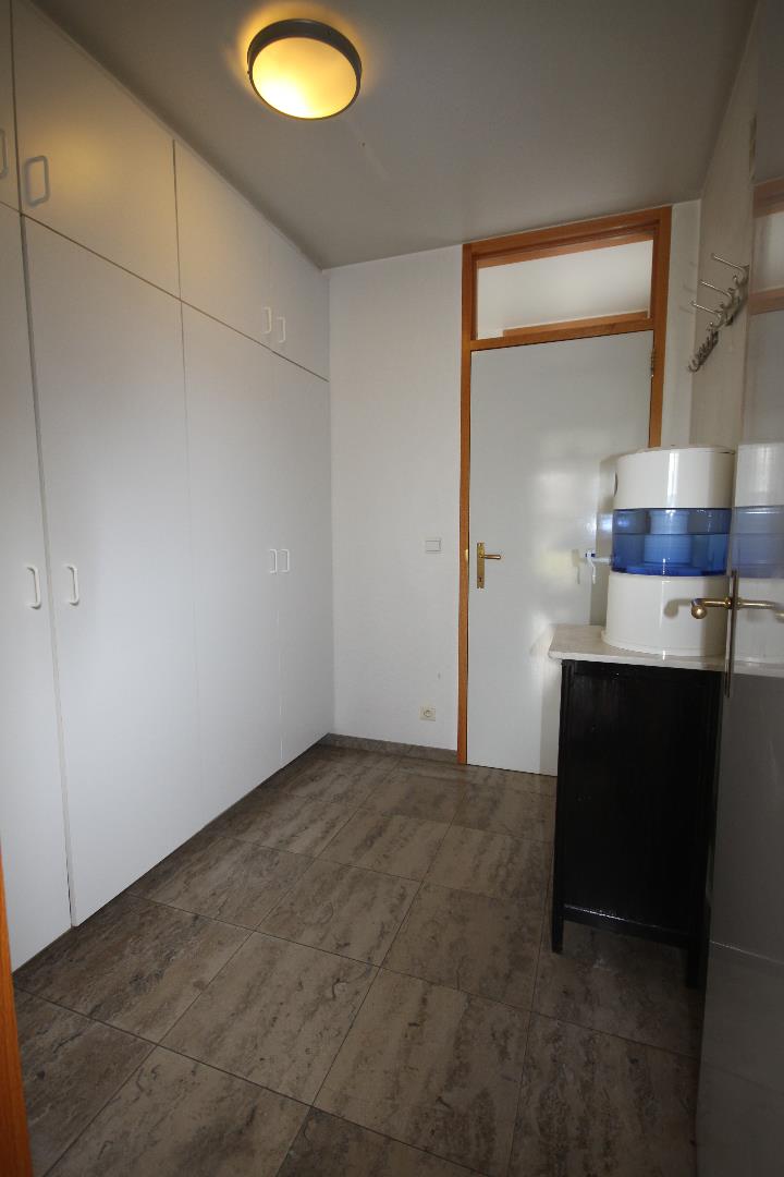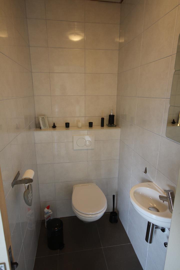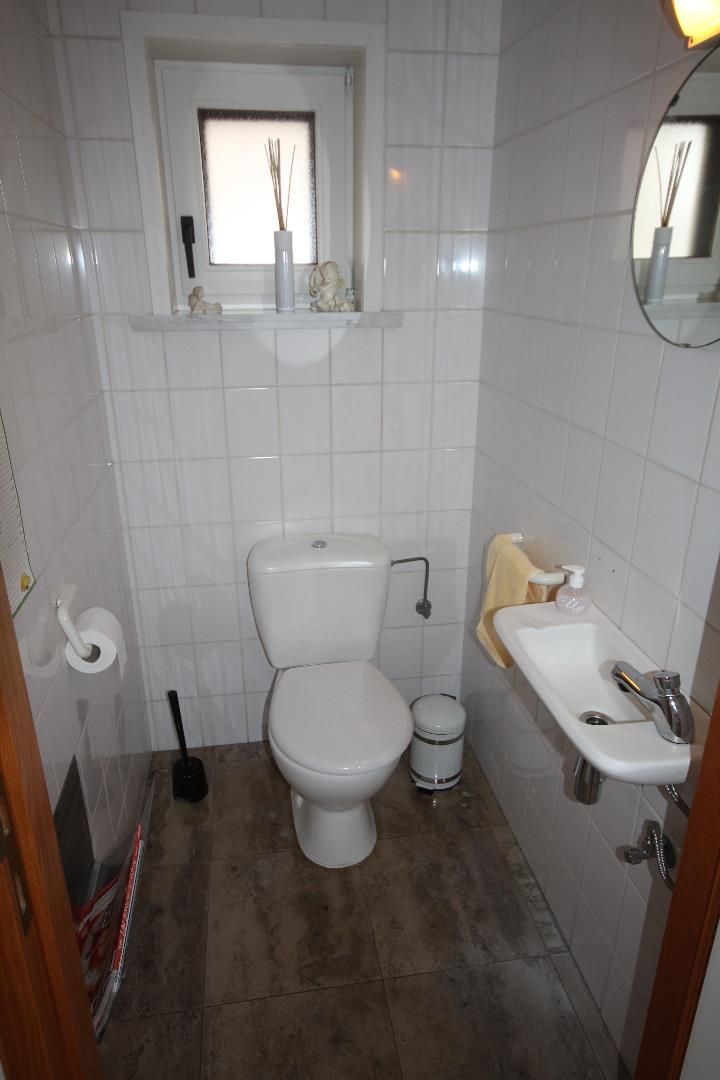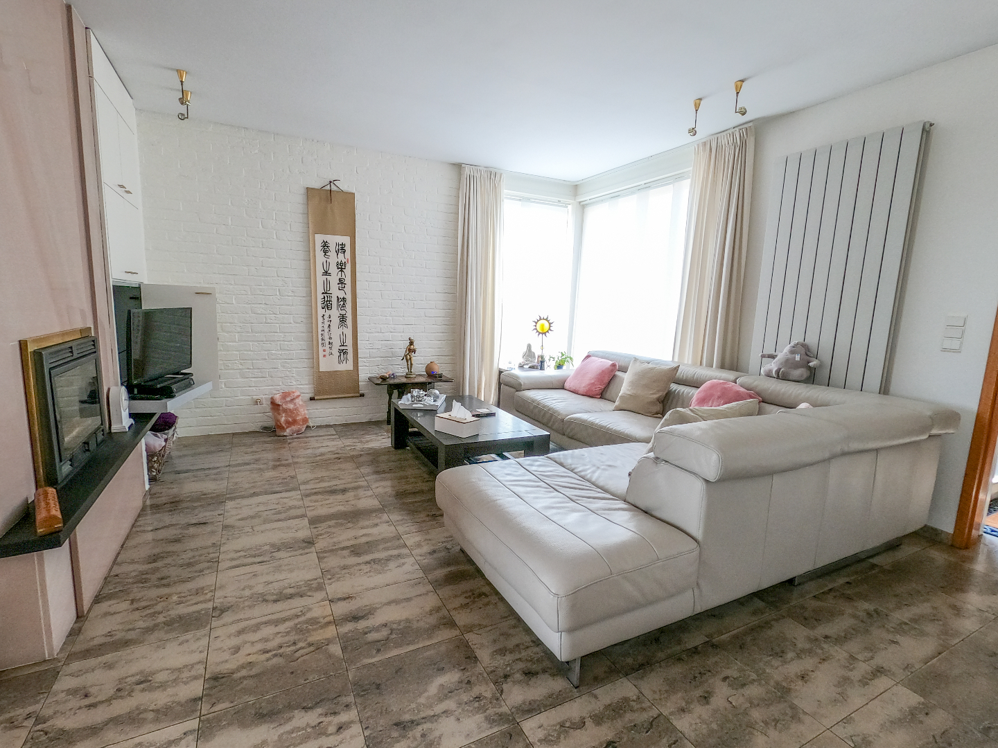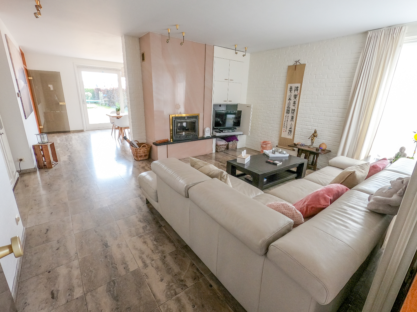 Gelijkvloers: inkom- & traphal + beukentrap,- toilet + lavabo,- salon (23,35 m²) + glazen deur, en marmeren sierschouw & ingebouwde openhaard,- aansluitende living (4,80 x 3,90),- keuken (4,35 x 3,90) + glazen deur, en L-vormige keukenblok + ingebouwde vaatwas, oven, microgolf, en frigo * en kookeiland + ingebouwde vitrokeramische kookplaat en dampkap,- was- & bergplaats (3,75 x 2,10) met douche, c.v.-brander Buderus (H.R.) & boiler, en aansluiting was- & droogautomaat,- en bergplaats (2,40 x 2,35) + ingemaakte kasten ;