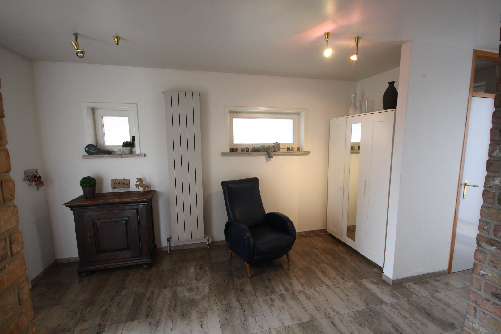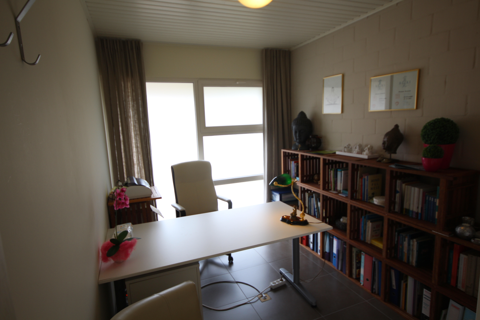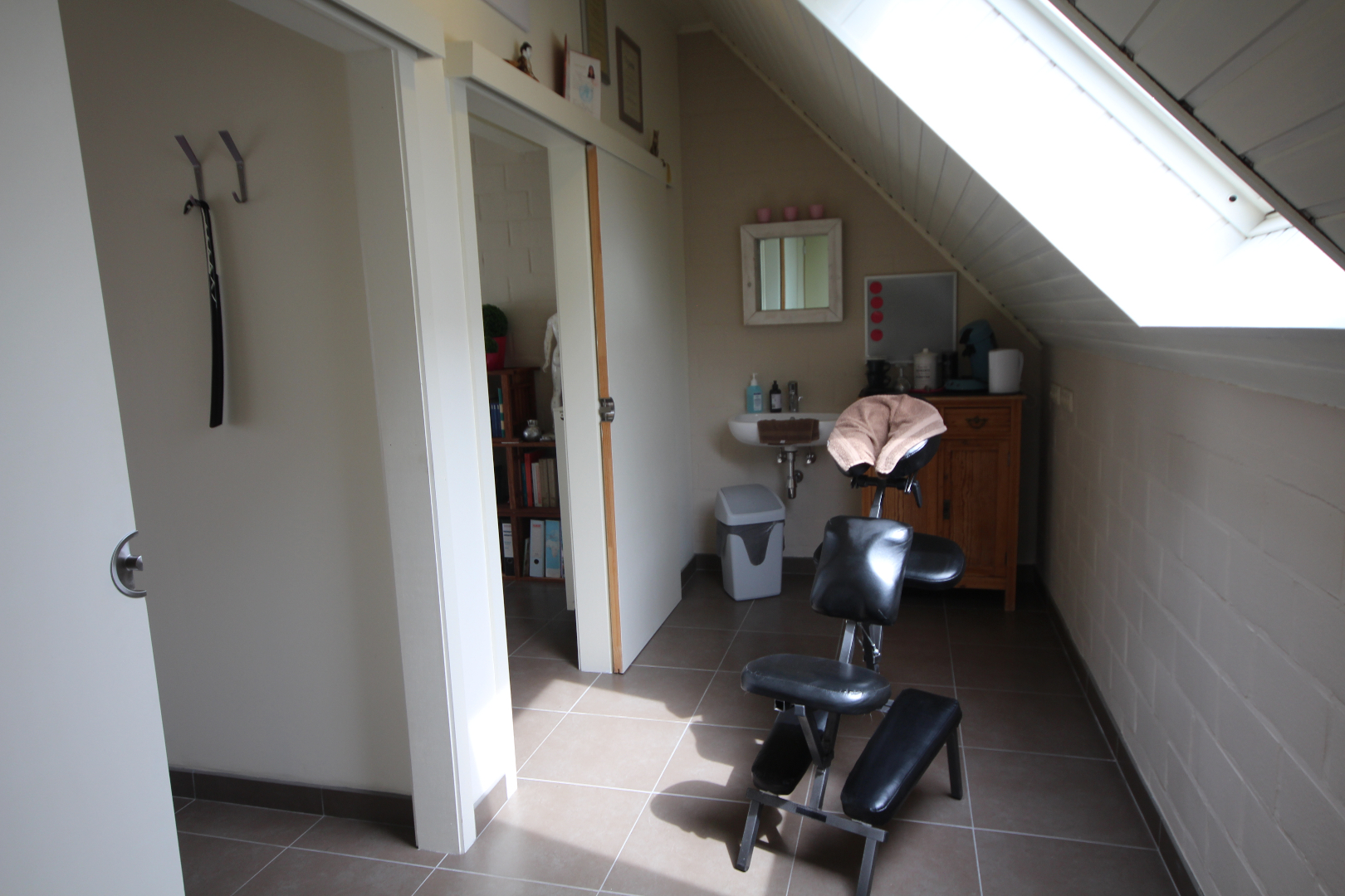 Aanhorigheden: kinepraktijk (42 m²) met wachtkamer, berging, toilet met hang-w.c. + lavabo,- 2 aparte kabinetten,- en brede overloop,- * parking en voetpad (in betonklinkers),- zonneterrassen,- zonnige tuin + gemetst tuinhuis + overdekte berging.