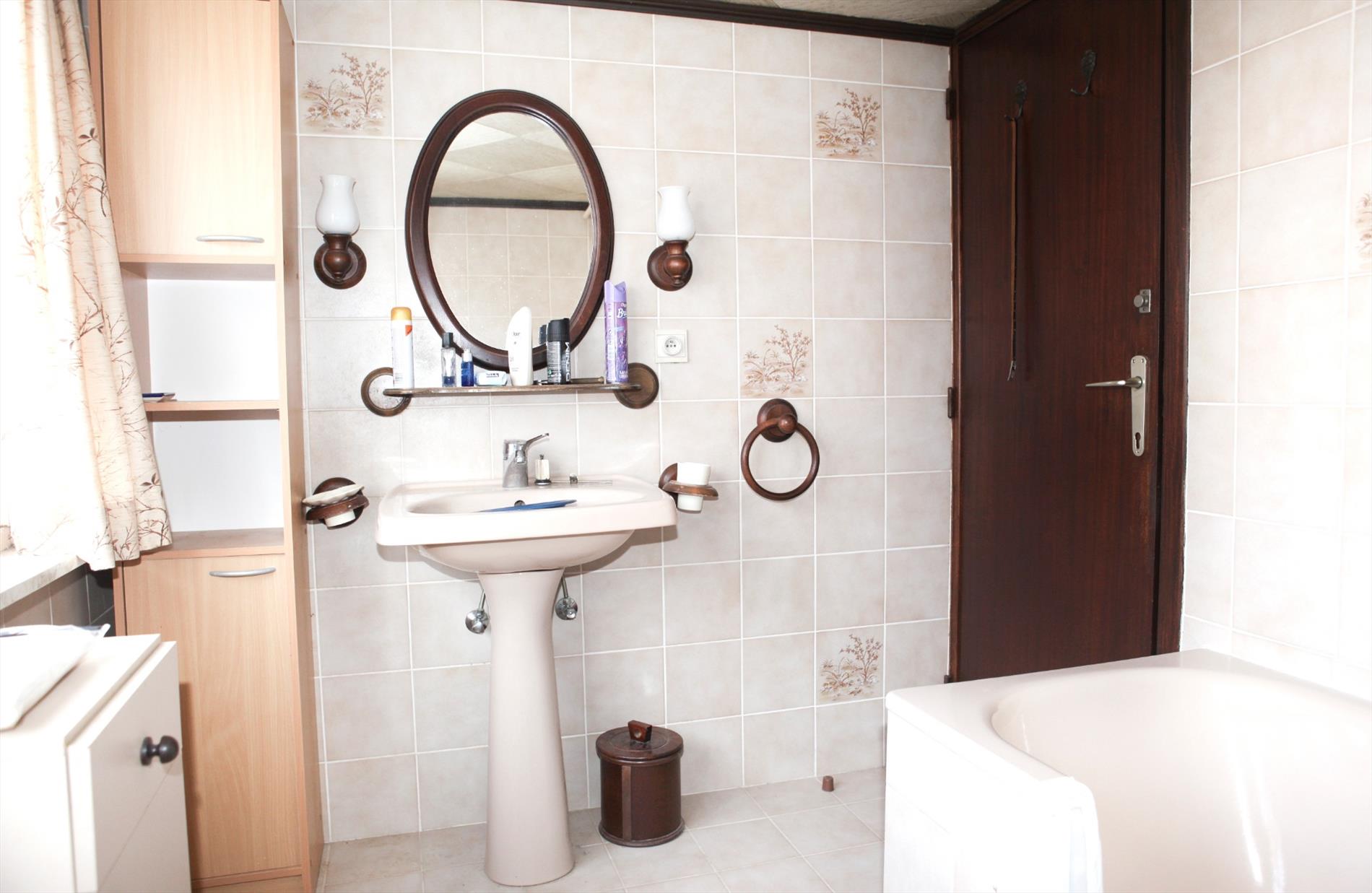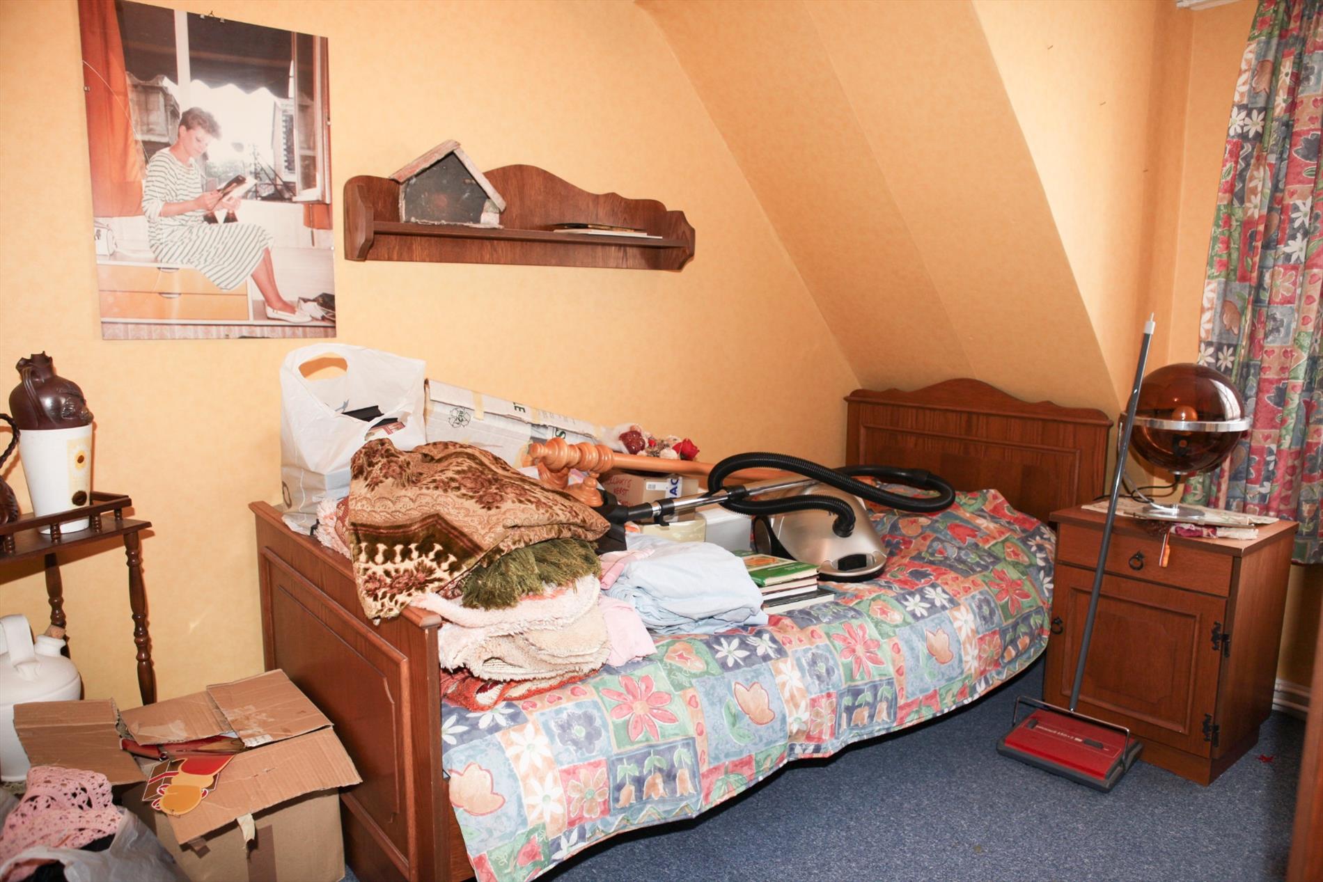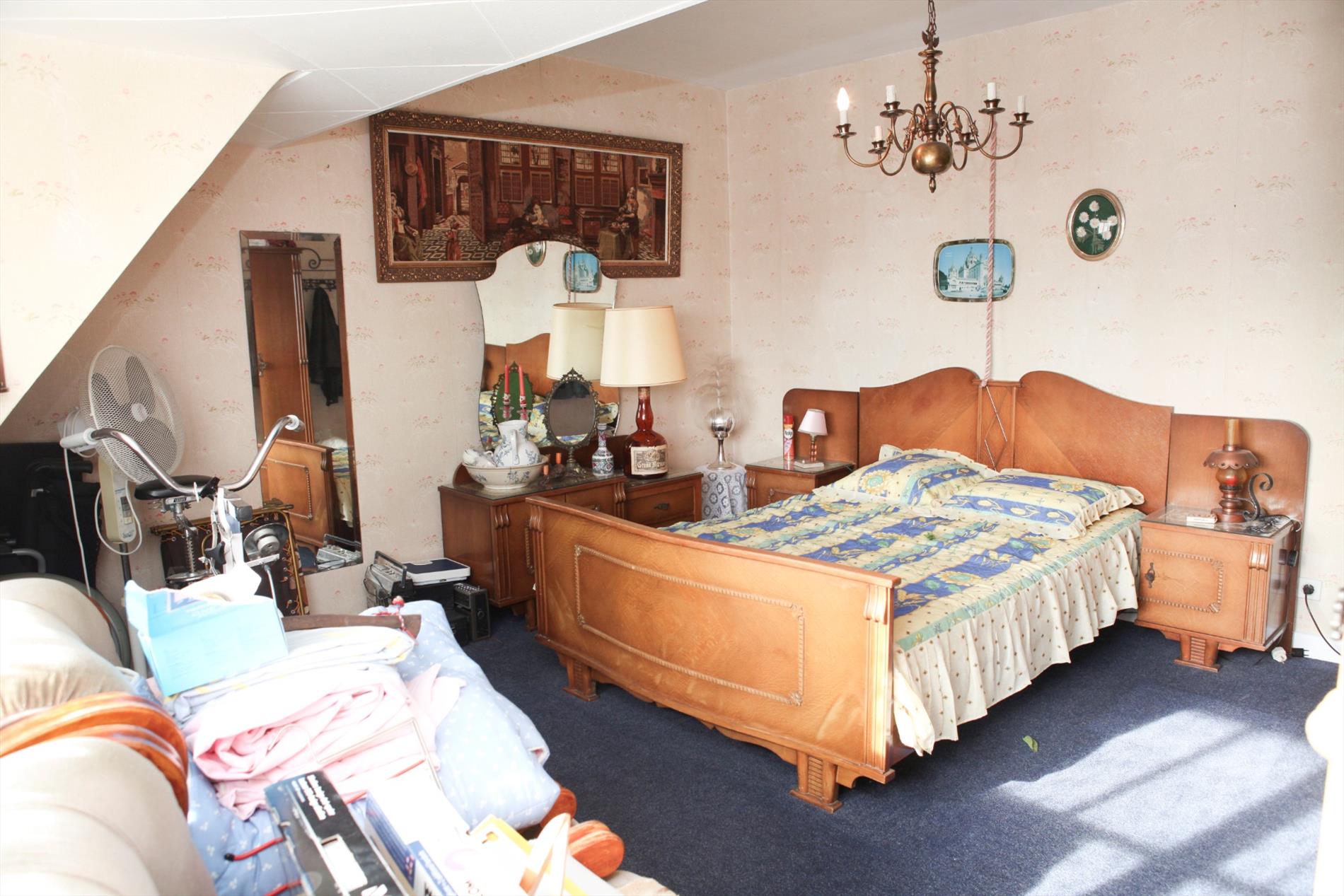 b) eerste + zolderverdieping: overloop,- kinderkamer (2,10 x 1,84 * zolderluik+ metalen schuifladder),- mooie hoek-slaapkamer (4,08 x 4,15 * met terrasdeur),- terras (2,82 x 1,05 * met zicht op zee),- badkamer (2,60 x 2,05 * met ligbad, lavabo, en Junkers-warmwatergeiser),- slaapkamer2 (4,15 x 4,08 * met groot standvenster),- achter-slaapkamer (2,57 x 3,08 * met standvenster),- en geïsoleerde zolder