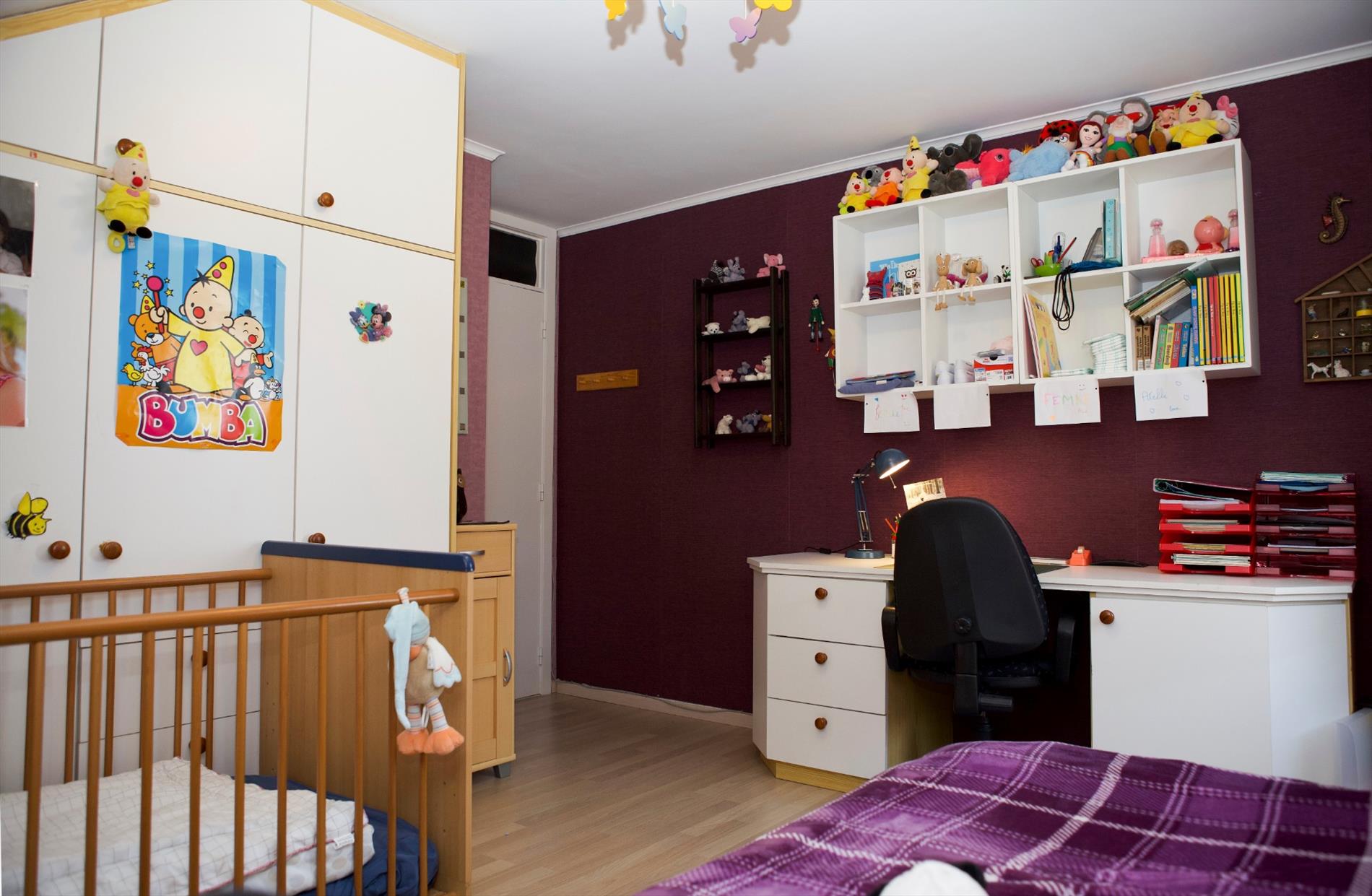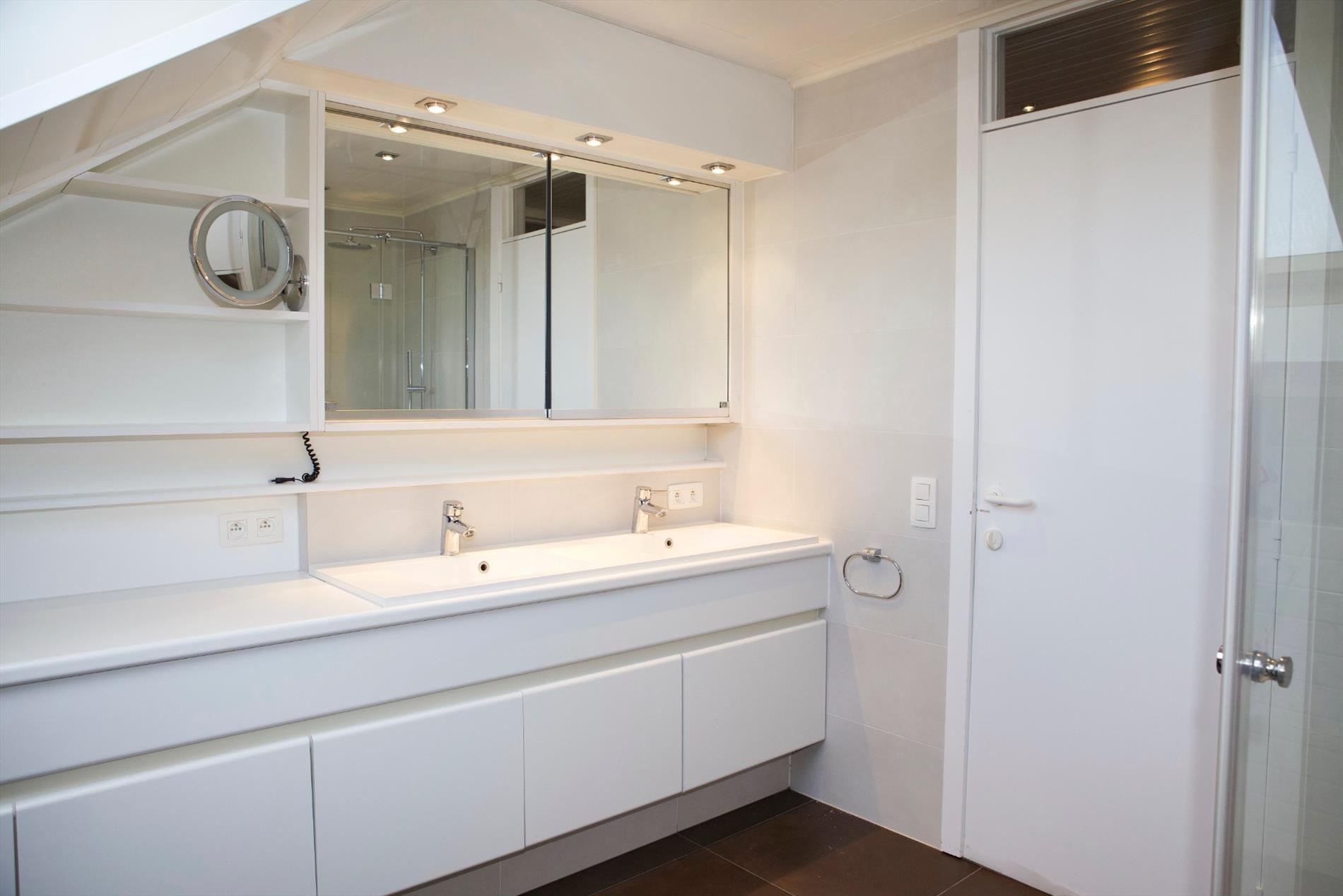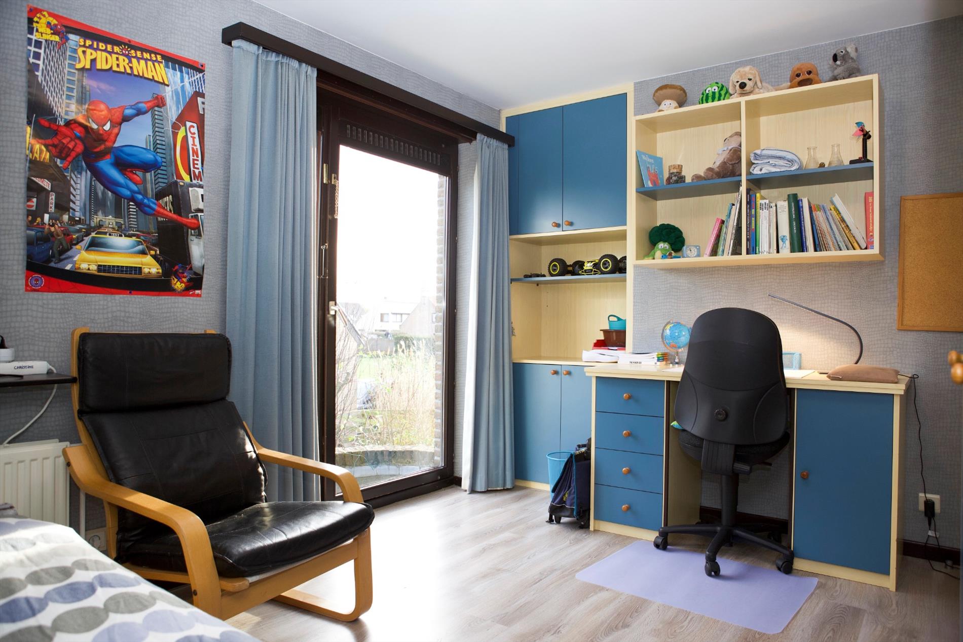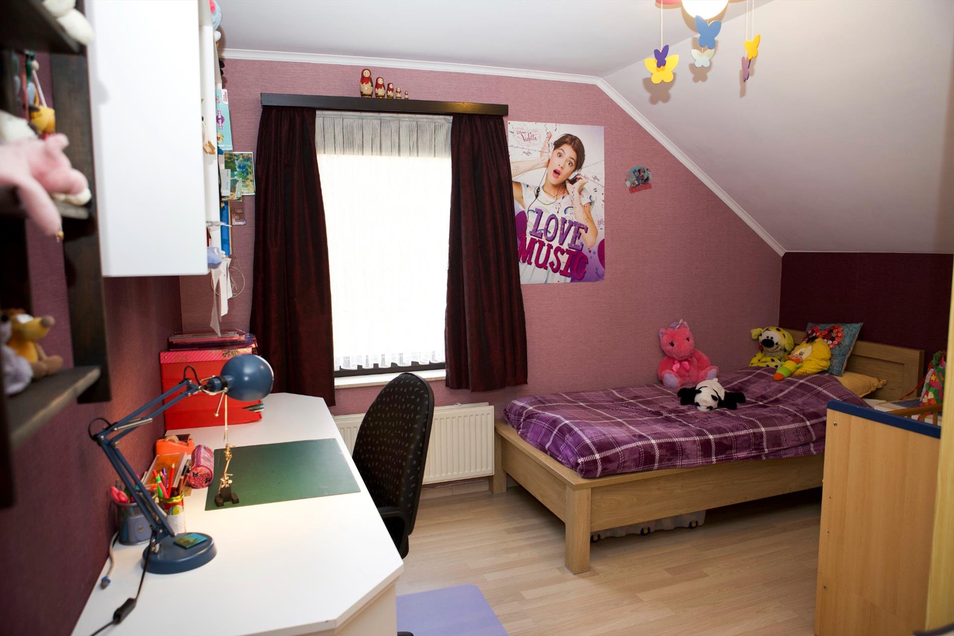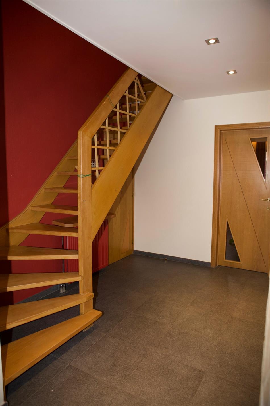 b) 1ste & zolderverdieping: nachthall (3,45 x 3,40) + zolderluik & houten trap,- slaapkamer 1 (4,10 x 3,85) + aanbouwkasten,- master-bedroom (5,40 x 2,96) + dressings- TV- en bureaukast,- badkamer (3,86 x 2,45) met douche, hang-w.c., en toiletmeubel + 2 inbouwde lavabo’s (velux-raam * laminaat-plafond + inbouwspotjes),- 2 kinderkamers (resp.: 3,50 x 2,75 en 3,50 x 2,50) + aanbouwkasten,- en zolderberging.