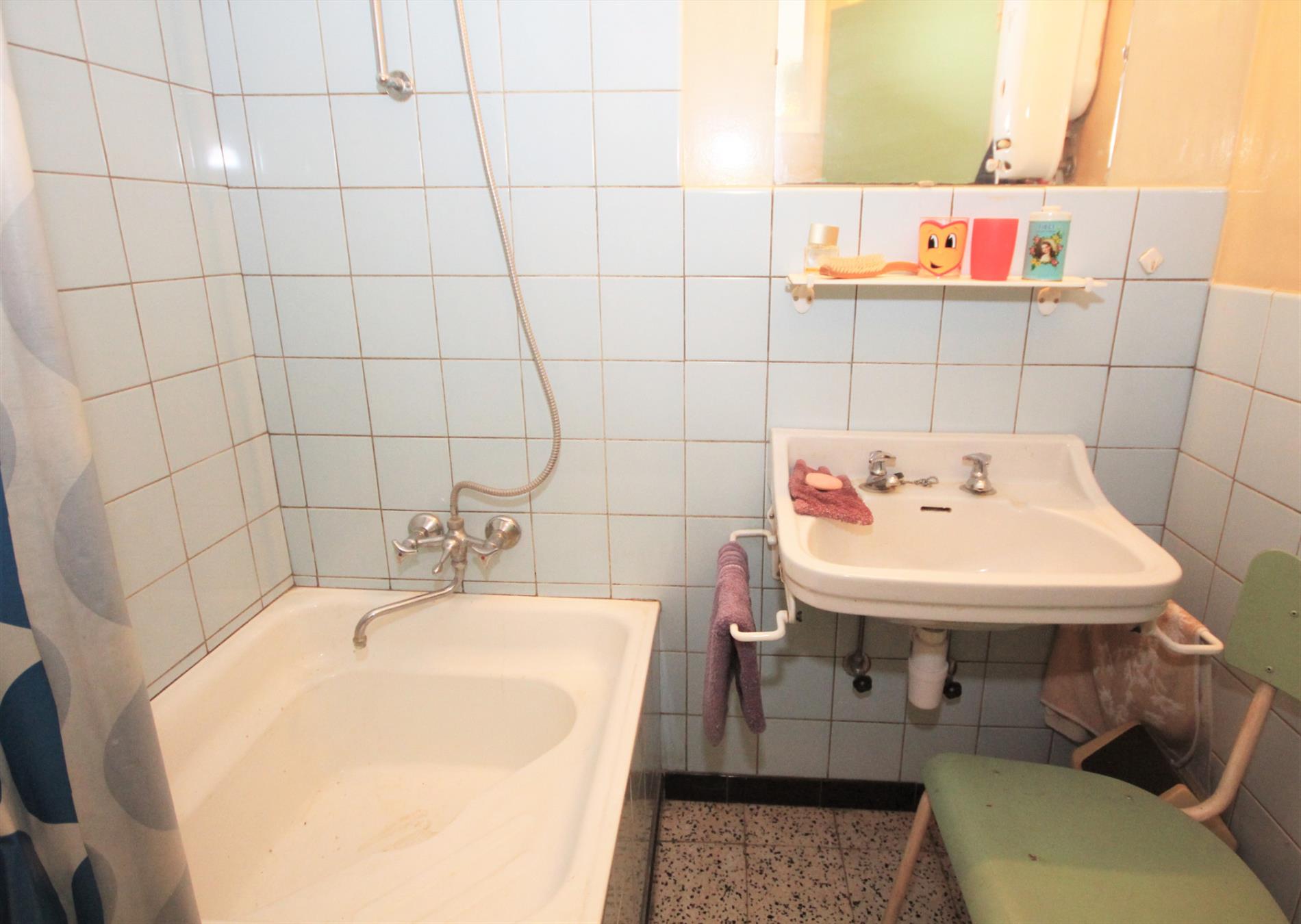 -Eerste verdieping : overloop met trap,- berging (1 x 1,45),- voor-slaapkamer (19 m²) met dressing (0,25 x 1),- achter-slaapkamer 2 (16 m²),- badkamer (2,15 x 1,80) met zitbad, wc, lavabo en geiser ;