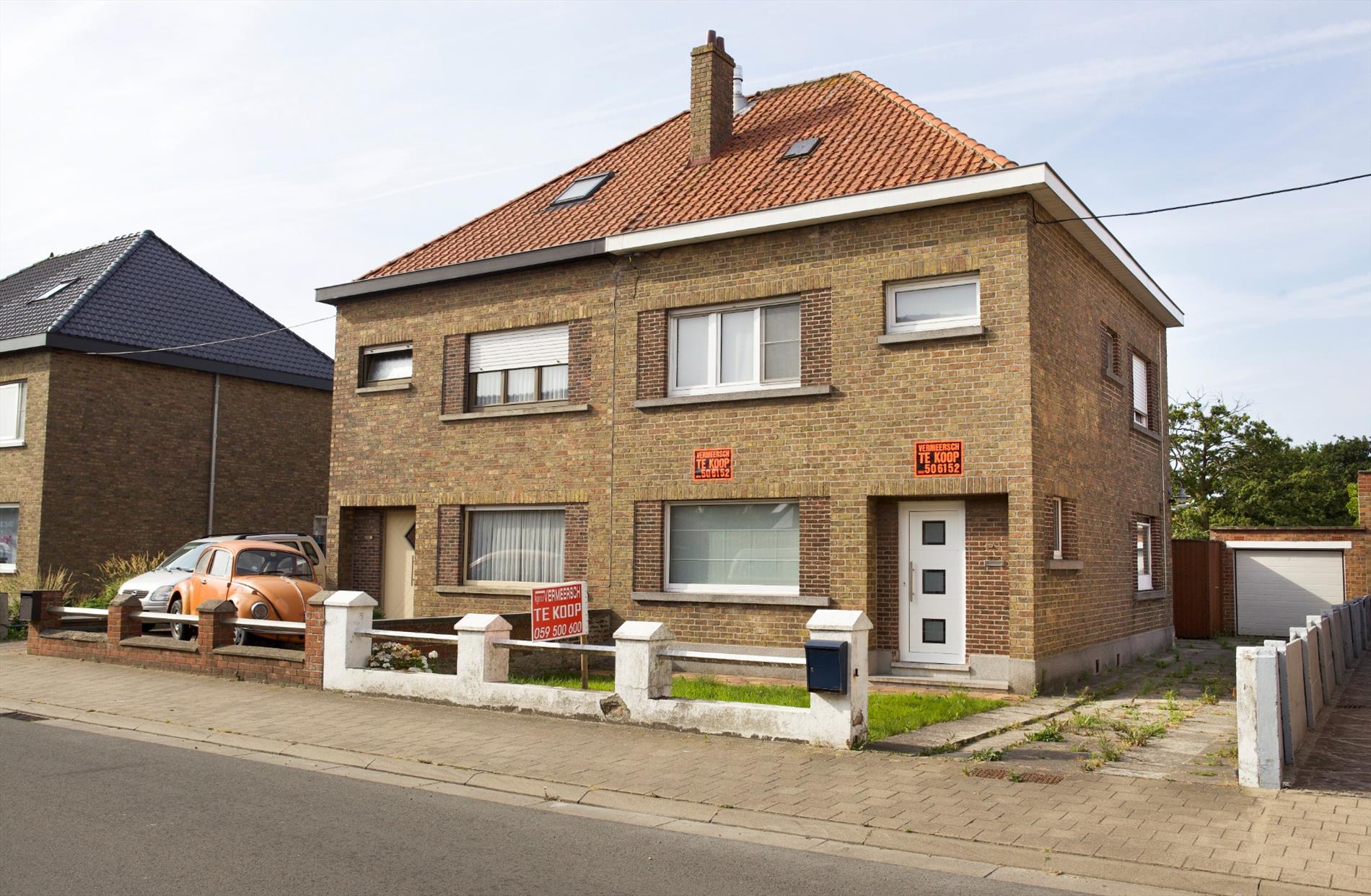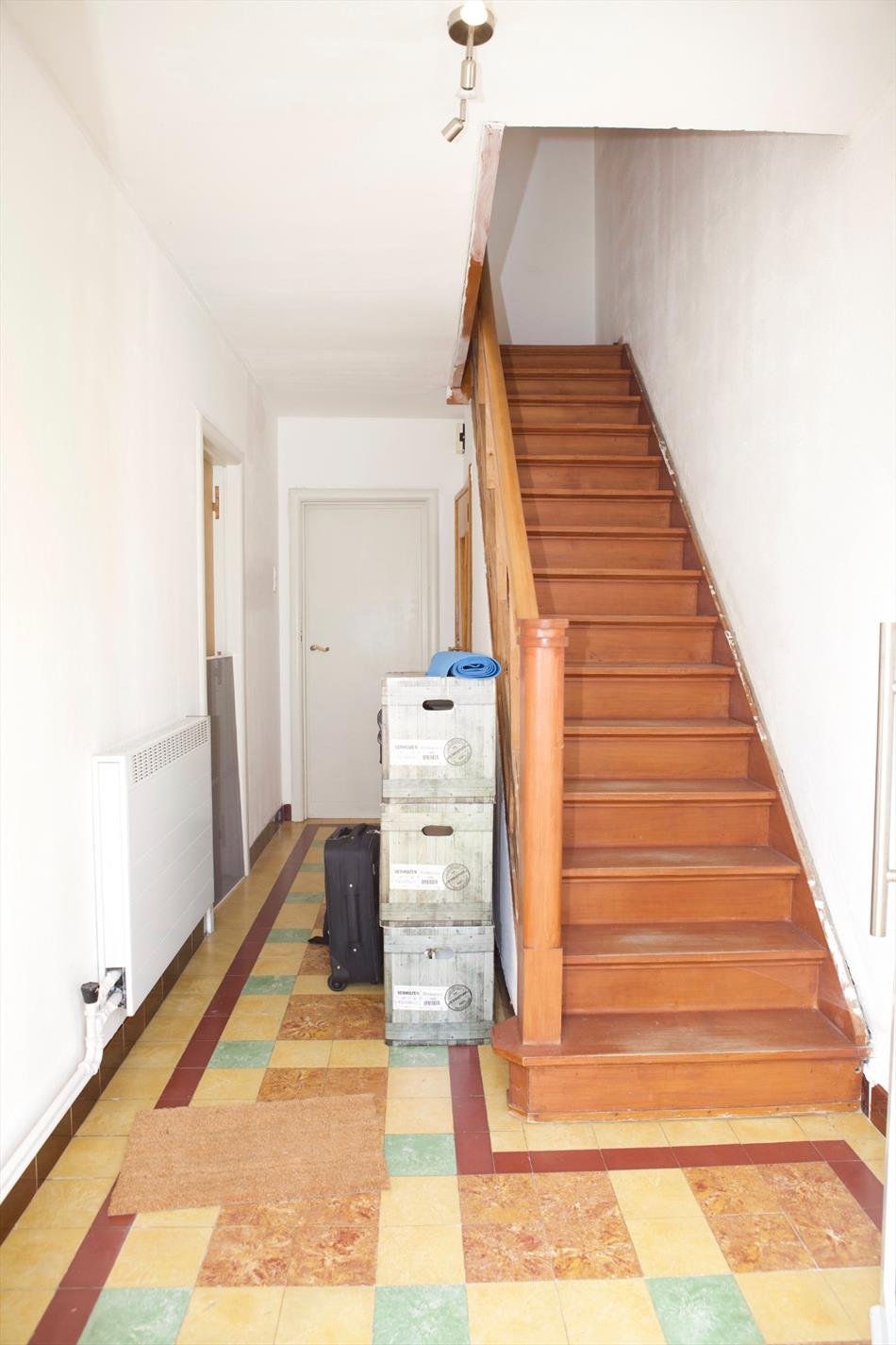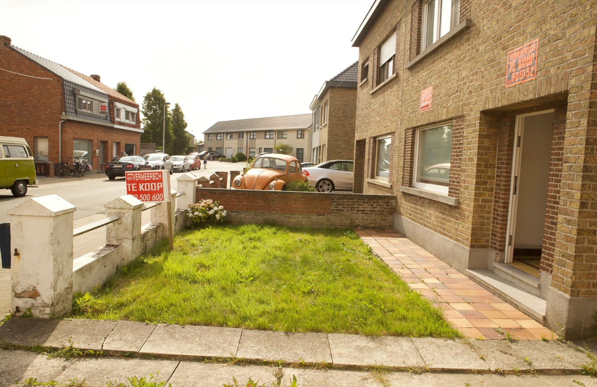 Welgelegen “half-open-bebouwing-woning”, stevig en op traditionele wijze gebouwd (baksteenmetselwerk) in 1951, op een perceel bouwgrond van 1.030 m², met een breedte van 9 m. op een diepte van maar liefst 114,45 m. Het huis heeft een bebouwde oppervlakte van 109 m², een bruikbare vloeroppervlakte van 116,08 m², en een beschermd volume van 342 m³. Uitbouwen is mogelijk (mits het verkrijgen van een stedenbouwkundige vergunning. Het huis is voorzien van stevige funderingen, een vloerplaat in gewapend beton (beneden), en houten roosteringen + plankenvloer op de beide verdiepingen. Deur- en vensterdorpels in harde blauwsteen. Nieuw buitenschrijnwerk in kunststof (PVC wit), voorzien van super-isolerende beglazing. Alle ramen zijn voorzien van rolluiken (PVC wit). Nog-te-renoveren 3-vlakken harddak, belegd met rode platte pannen (in gebakken aarde * kaphout in goede staat). Nieuwe zinken dakgoten, bekleed met witte PVC. De woning werd recentelijk deeltelijk vernieuwd. De elektrische en sanitaire installaties werden gans vernieuwd. Ceramieke tegelvloeren op het gelijkvloers. Laminaat-parket op de verdieping. Voorzien van stadswater, elektriciteit, teledistributie, telefoon, riolering, centrale verwarming & warmwaterdistributie (d.m.v. warmtepomp Daikin).