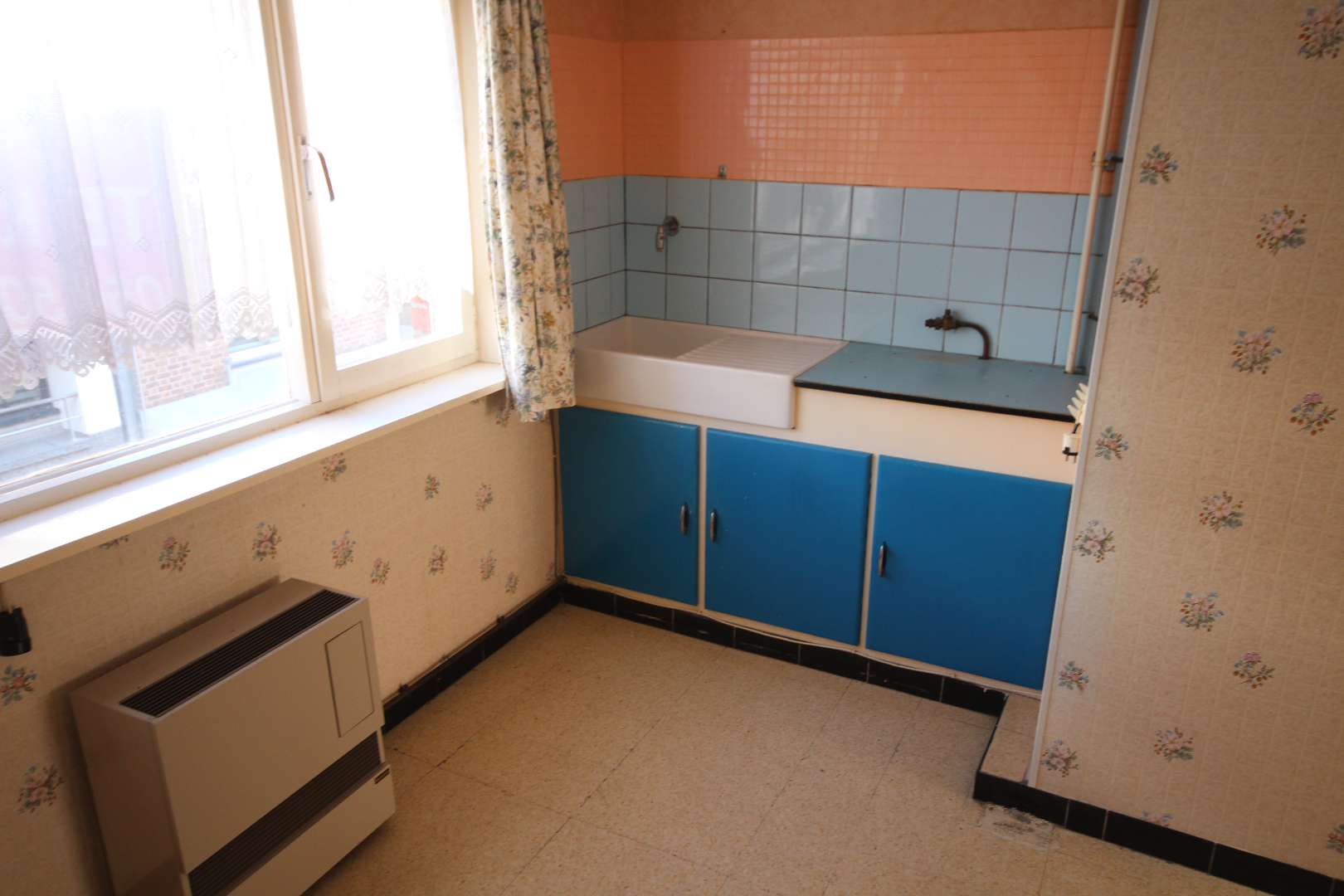 - gelijkvloers met garage (5,10 x 2,50),- inkom- & traphal,- toilet,- woonkamer (30,53 m²) met zitplaats + sierschouw in natuursteen (+ gaskachel) en salon,- keuken (4 x 2) met douche + lavabo, gasgeiser, en keukenblok + gaskookplaat, dampkap, en dubbel inox afwasbak,- veranda,- slaapkamer (5 x 3),- waskot (5,40 x 3),- zonnige koer (35 m²), en wasplaats (5,30 x 2,90) met hydrofoor ;