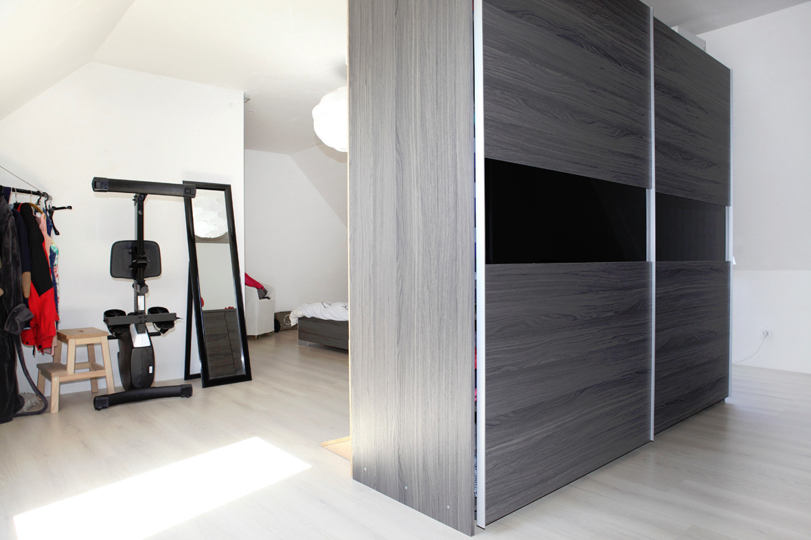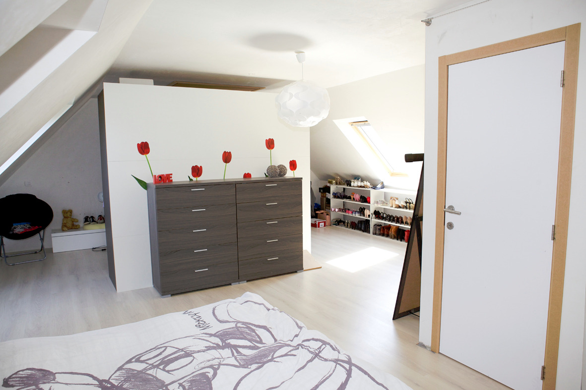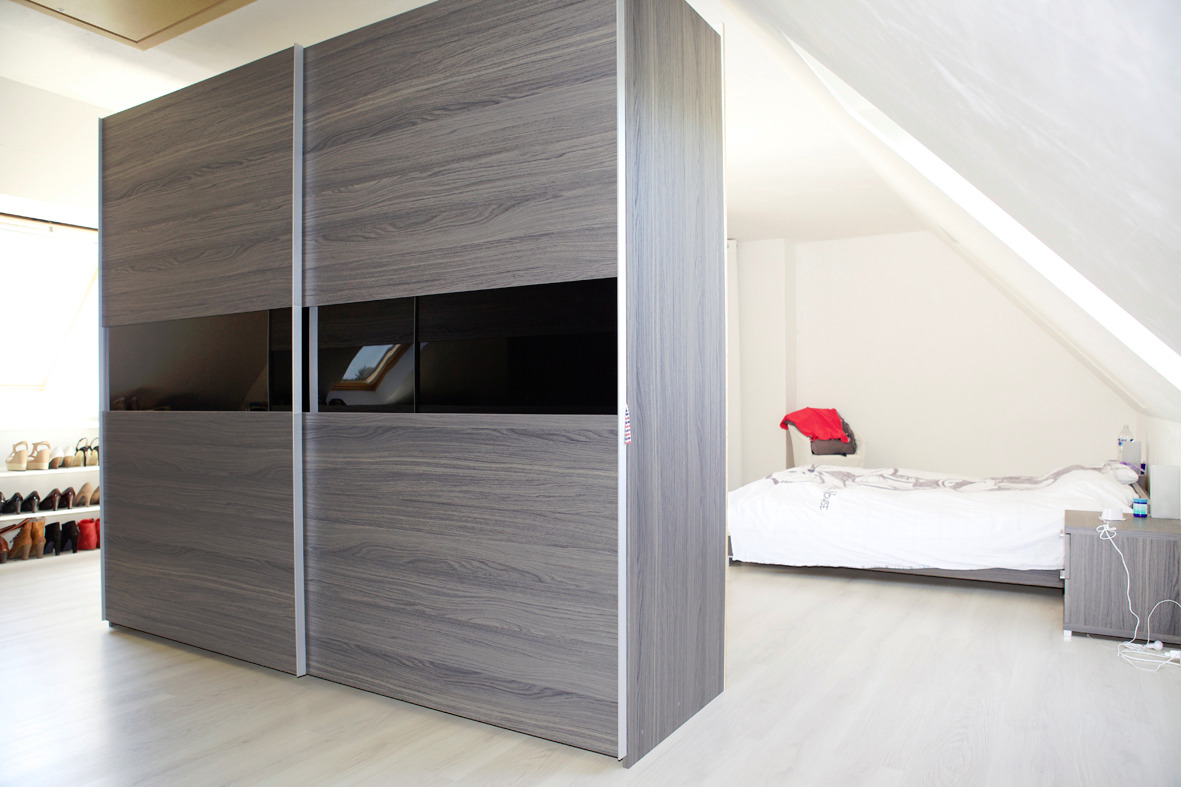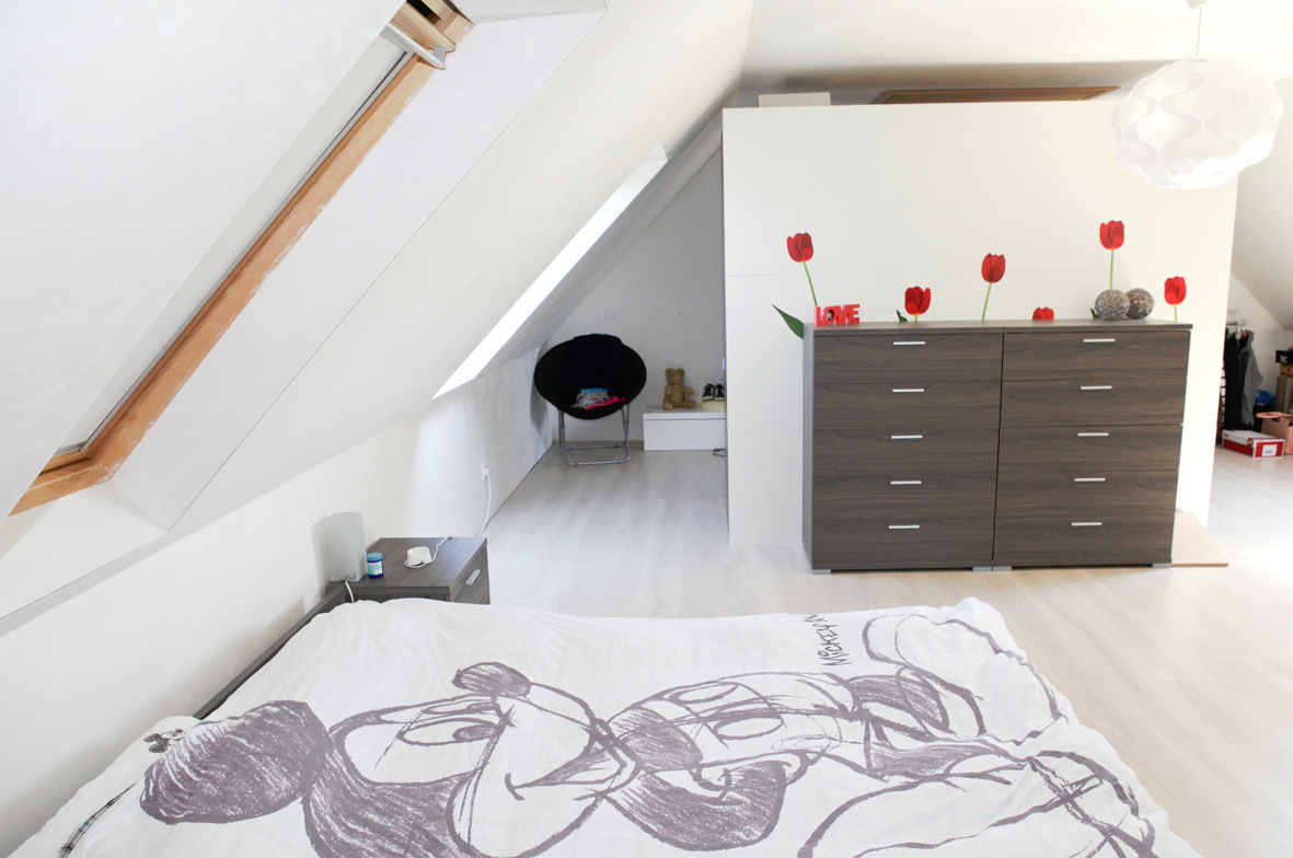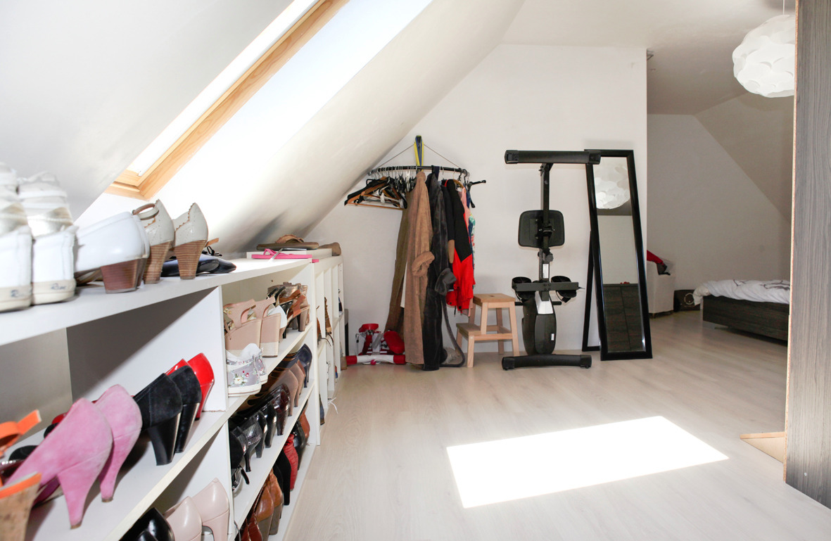 c) zolder: vaste zoldertrap,- master-bedroom/loft (48 m²) en dressing,- bergzolder.