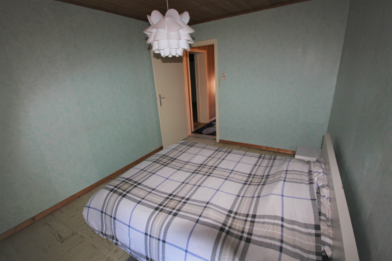 b) verdieping: hobbykamer (4,26 x 3,09),- voor-slaapkamer (3,85 x 2,90),- grote slaapkamer (8,33 x 2,94),- en opperzolder ;
