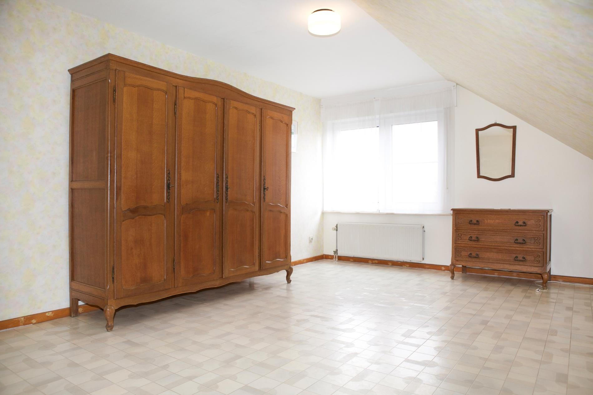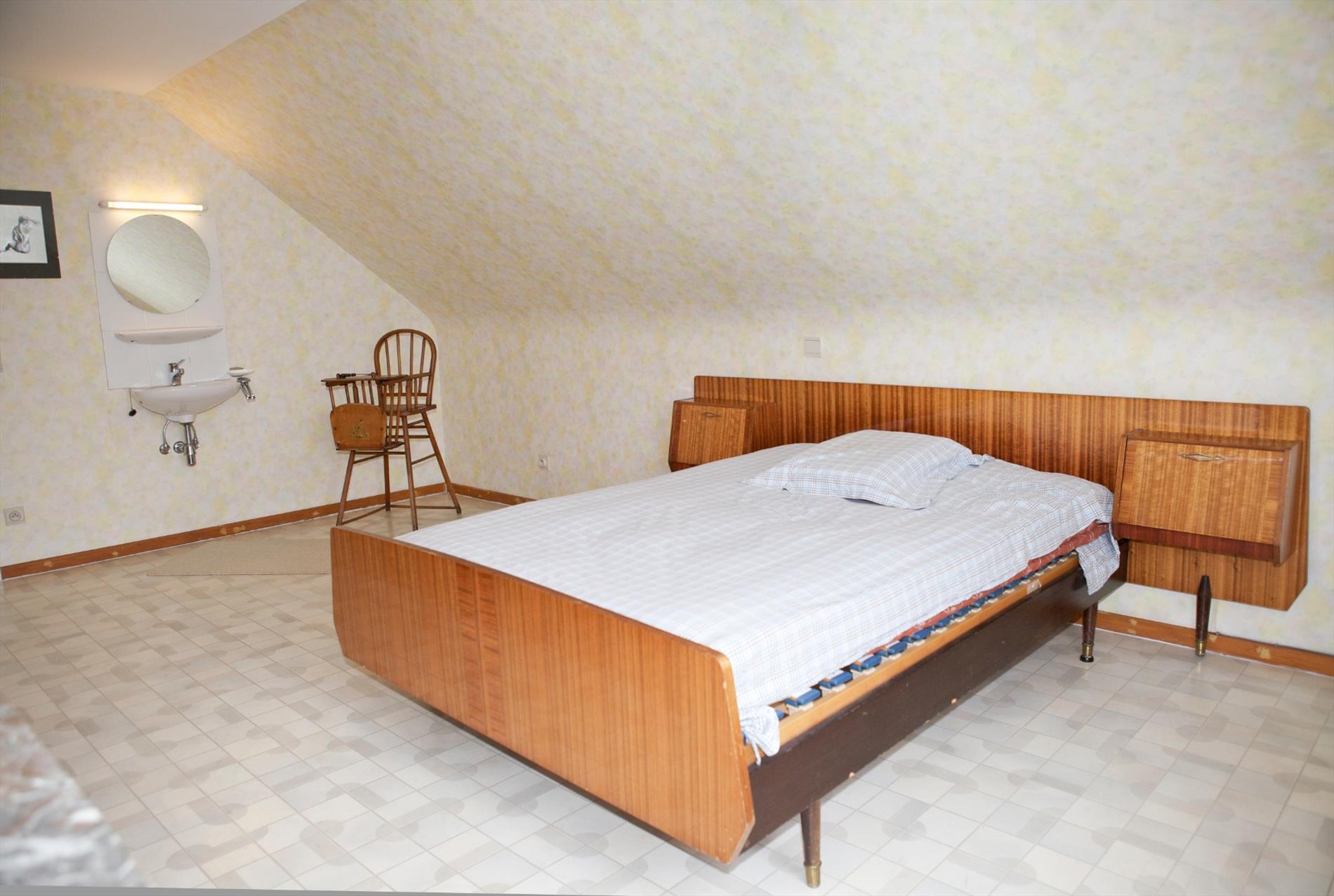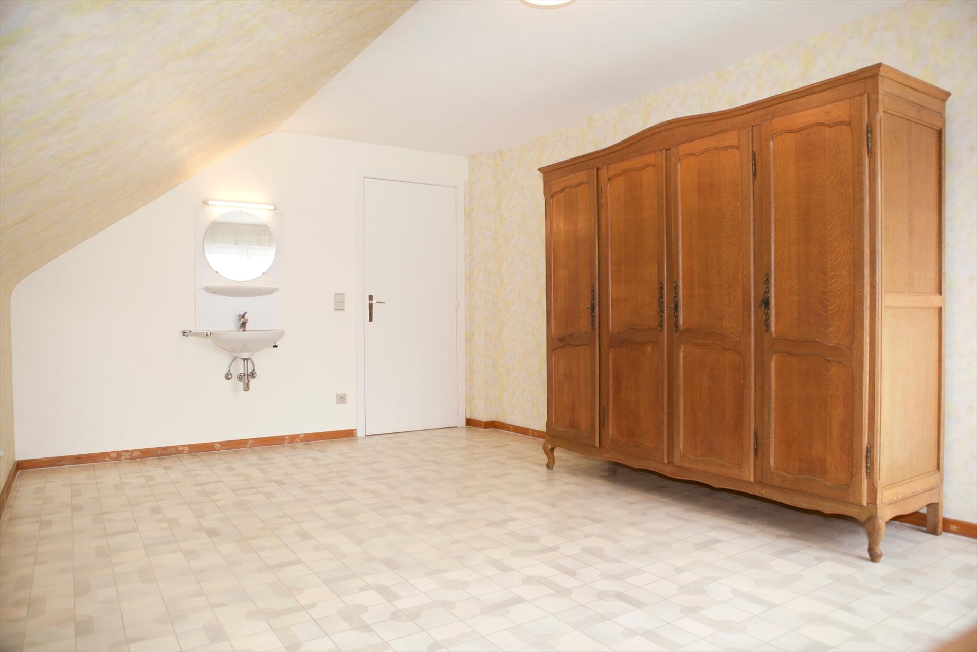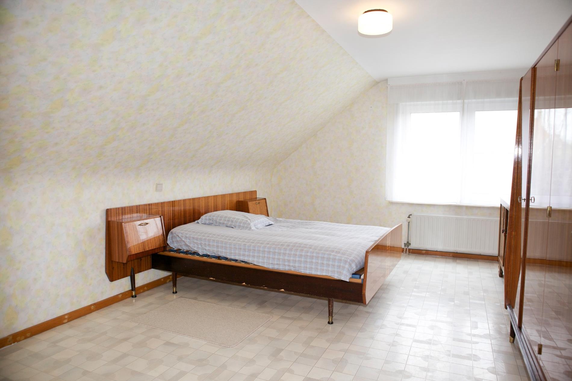 b) 1ste verdiep: overloop met groot velux- en vastraam (plafond + inbouwspotjes * ideaal plaatsje voor bureau),- voor-slaapkamer (5,30 x 3,40) + lavabo,- achter-slaapkamer (5,30 x 3,50) + lavabo,- badkamer (2,70 x 2,30) met ligbad, en toiletmeubel + ingebouwde lavabo (wit-grijze faience),- w.c. (wit-grijze faience),- stookplaats met elektrische boiler en aardgasgenerator,- dubbele slaapkamer (36 m²) met voorkamer (5,60 x 2,80) en achterkamer (20 m²) en zolder.