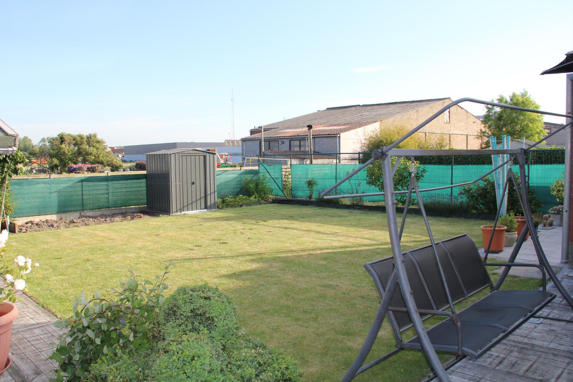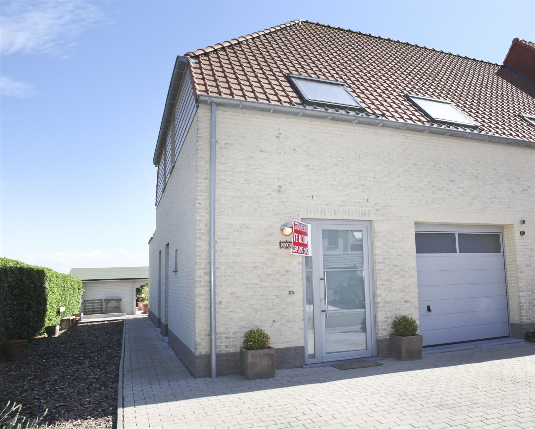 Zonnig georiënteerd woonhuis (drie vrije gevels), met een hedendaagse architectuur, stevig en op traditionele wijze gebouwd in 2008, op een perceel bouwgrond met een breedte van 10,43 m. (langs de straat) en een diepte van 36,19 m. Het betreft een standaardwoning, maar waaraan heel veel opties & supplementen gedaan werden (zoals de beste bouwmaterialen, prachtige keuken, tegelvloeren & faience van 1ste kwaliteit, het betere sanitair, enz.). De woning heeft een bruikbare vloeroppervlakte van 139 m², en een beschermd volume van 429 m³. Zuidgerichte achtertuin (zon van ‘s morgens tot ‘s avonds), met 2 zonneterrassen en tuinhuis. Er is al een vergunning om een veranda aan te bouwen. Voetpad en oprit & parking (voor 2 wagens), belegd met betonklinkers. Geïsoleerde vloerplaat in gewapend beton (5 cm polystyreen hoge densiteit) en betonnen gewelven op de verdiepingen. Geluidswerende gemene muur. Verzorgde buitengevels, in een paramentsmetselwerk van zandkleurig genuanceerde gevelsteen (binnenspouwblad in superisolerende tralieblokken van 14 cm + isolerende luchtspouw van 5 cm breed * binnenmuren is snelbouwsteen). Verzorgd en goed geïsoleerd hard drie-vlakkendak, belegd met rode betonpannen (rustiek), voorzien van onderdakplaten. Stevige kapconstructie in oregon. Zinken hangdakgoten en dito afleidingen. Verzorgd buitenschrijnwerk in PVC (wit binnen - donkergrijs buiten), + dubbele beglazing van superisolerend glas (de meeste ramen zijn kippend & draaiend en voorzien van hor + verluchtingsroosters). Gebetonneerde vloerplaat (beneden) en betonnen gewelven op de verdieping. Marmerachtige ceramische tegelvloeren in de hall, toilet, living, keuken, wasplaats en badkamer. Laminaat-parket op de overloop en slaapkamers (de grote slaapkamers zijn voorzien van Internet & T.V.-aansluiting). Het gemiddeld maandelijks verbruik van water, gas, en elektriciteit bedraagt slechts € 105. Mooi open landelijk zicht vanuit de tuin, living en keuken. Vrij van gebruik bij akte.